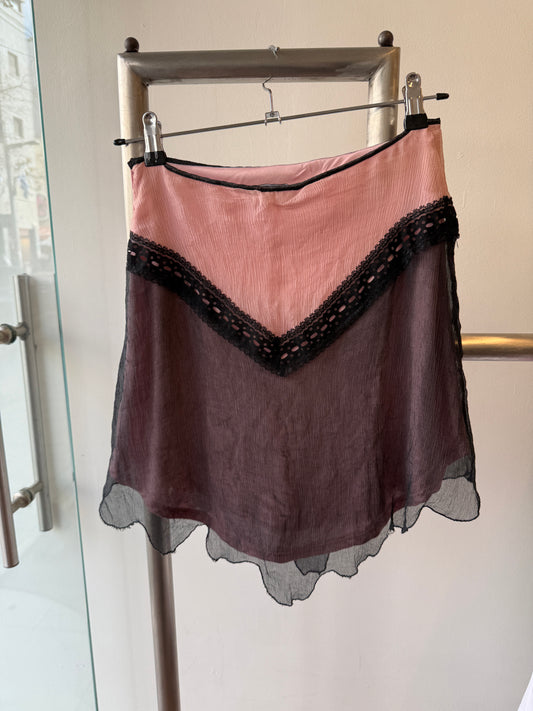 Sold outBetsey Johnson Sheer Lace Trim Skirt