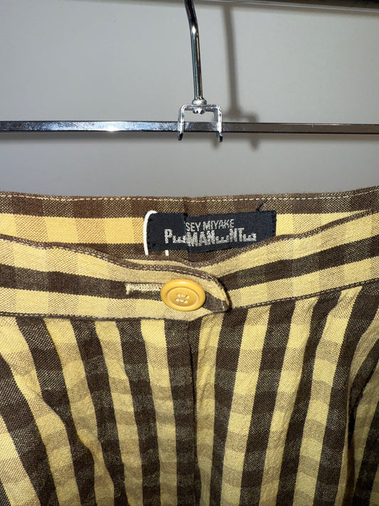 Issey Miyake Yellow & Black Plaid Wool Trousers