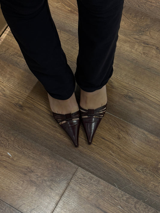 Yves Saint Laurent Oxblood Strappy Pointed Heels 38.5 EU