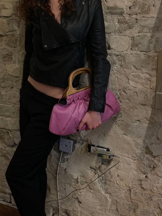 Comme des Garçons Pink Eco-Leather Wooden Handle Bag 2007