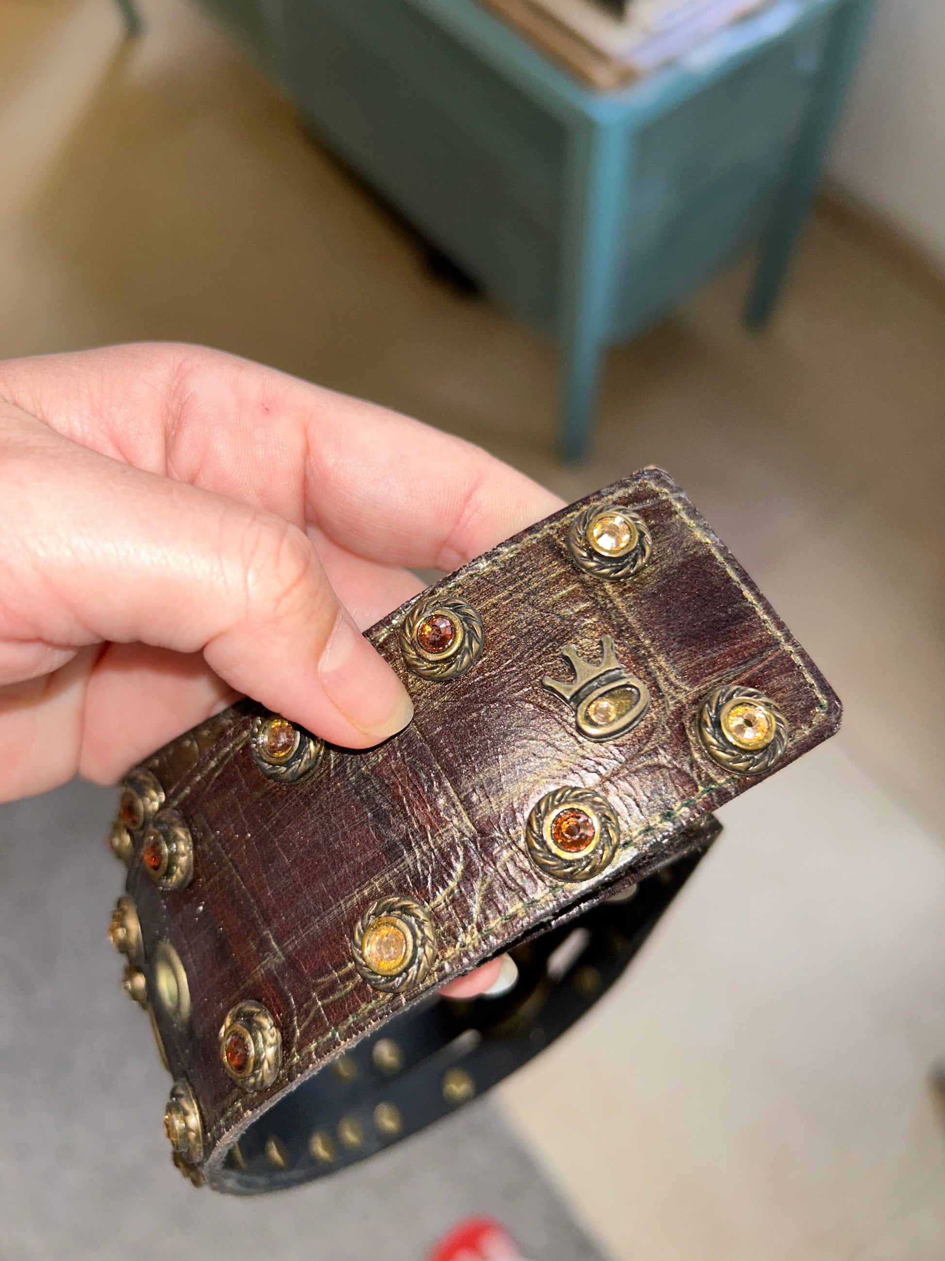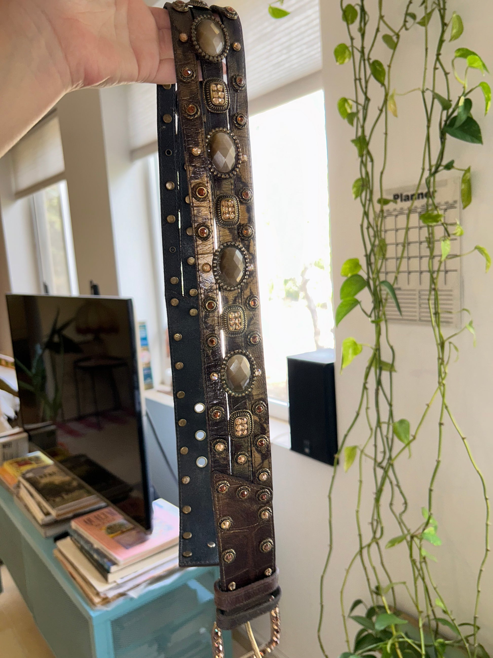 שלושה סטריפים של עור משובץ אבנים מיוחדות