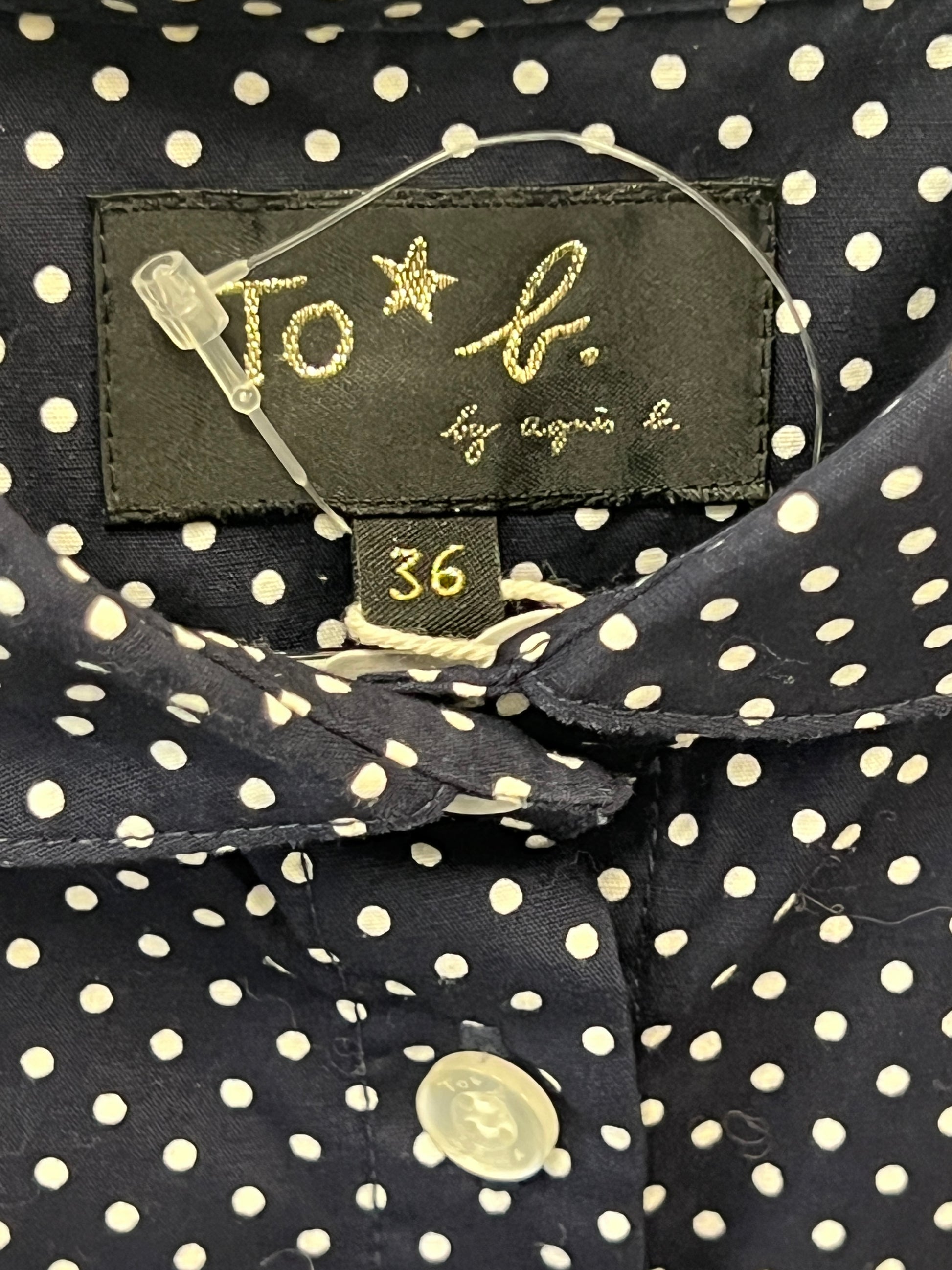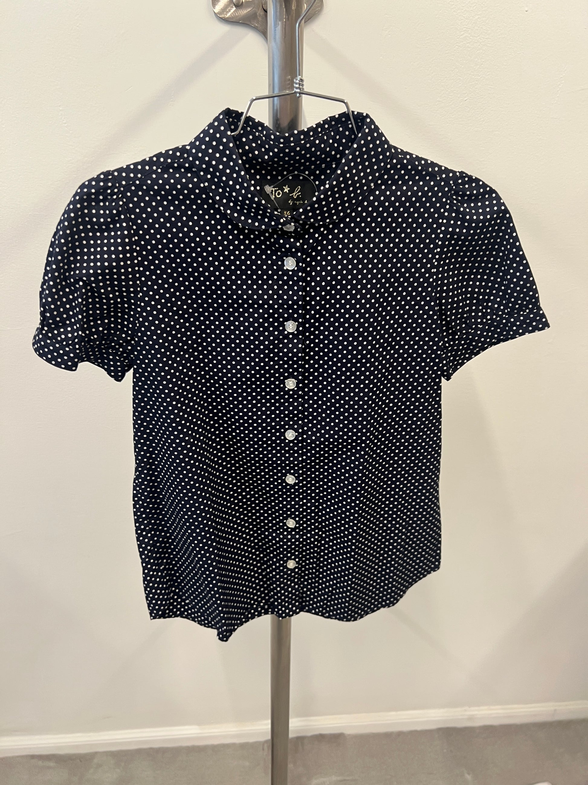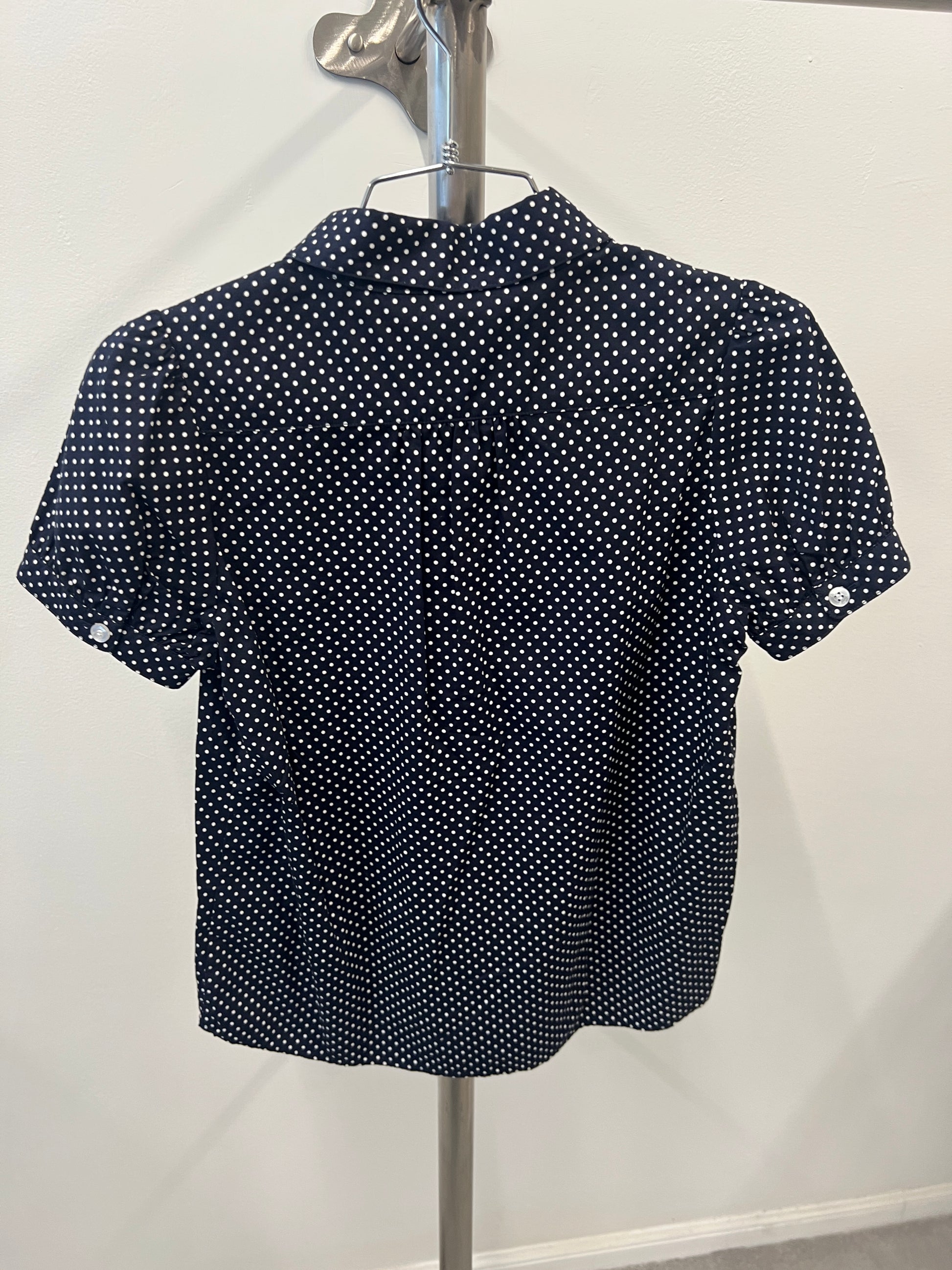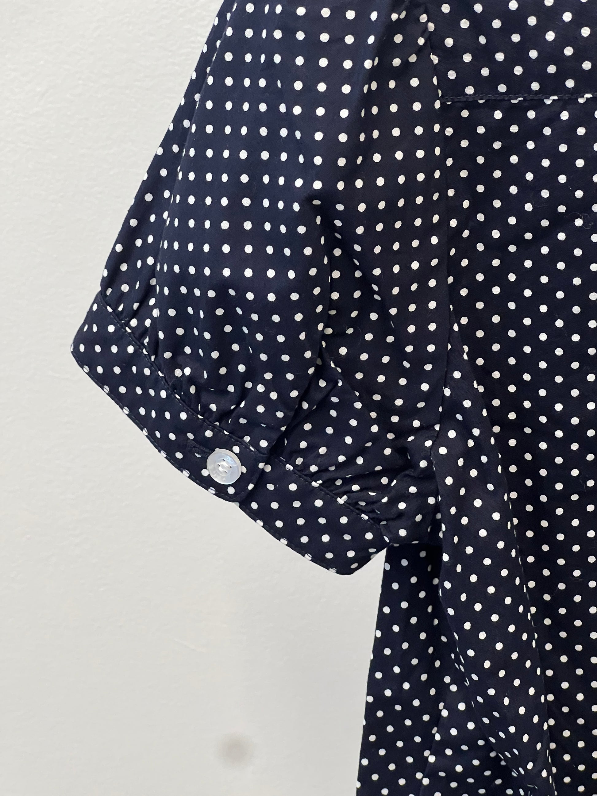 dark navy polka dot puff sleeve blouse