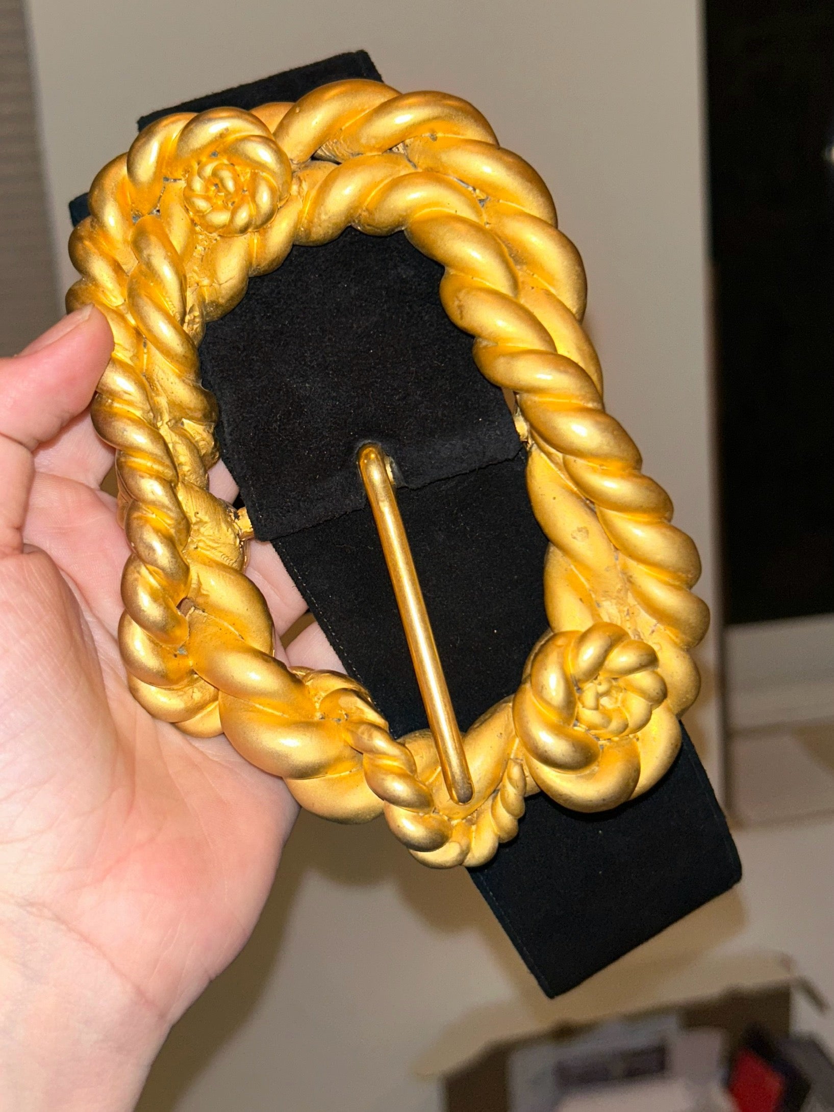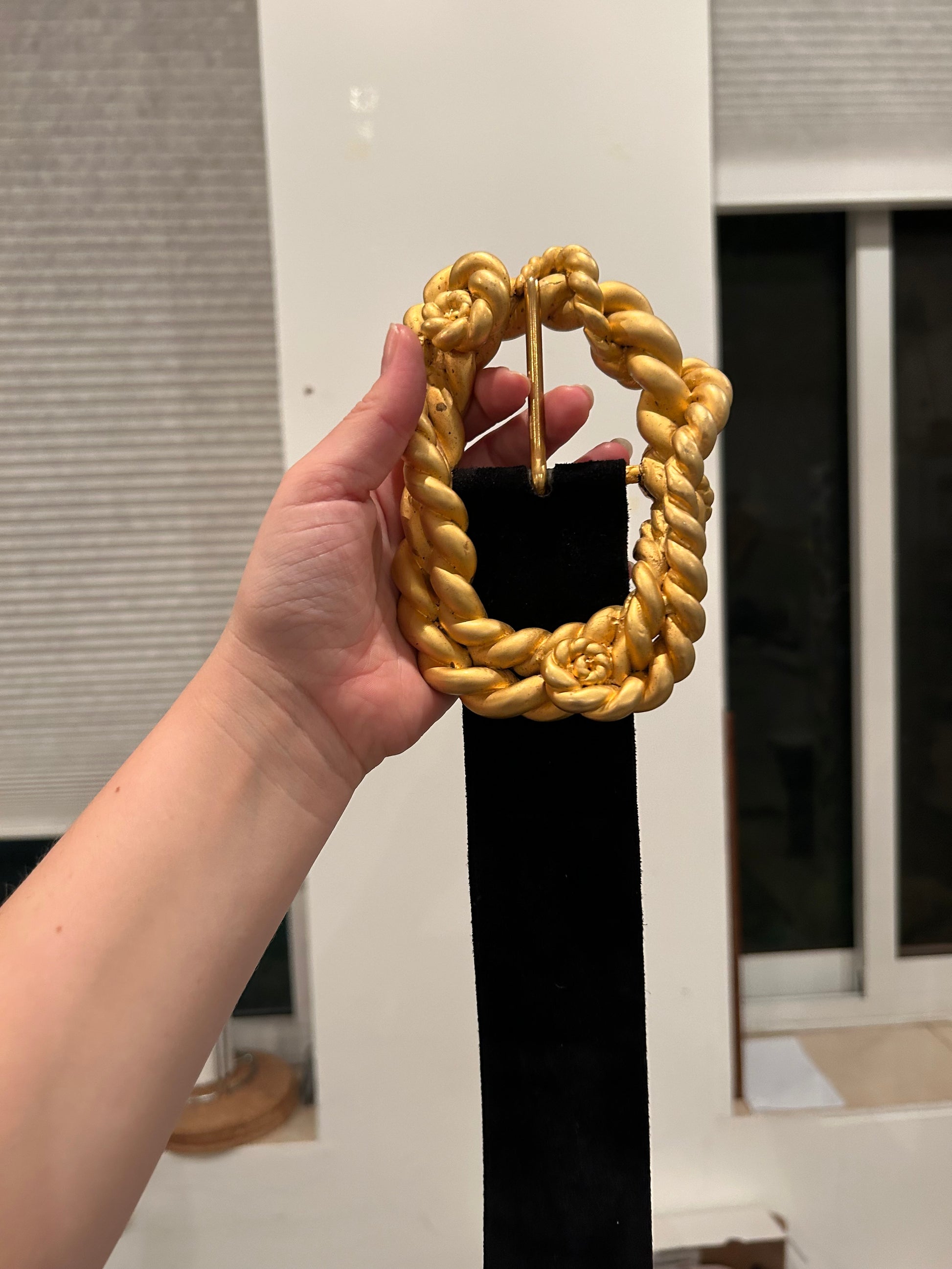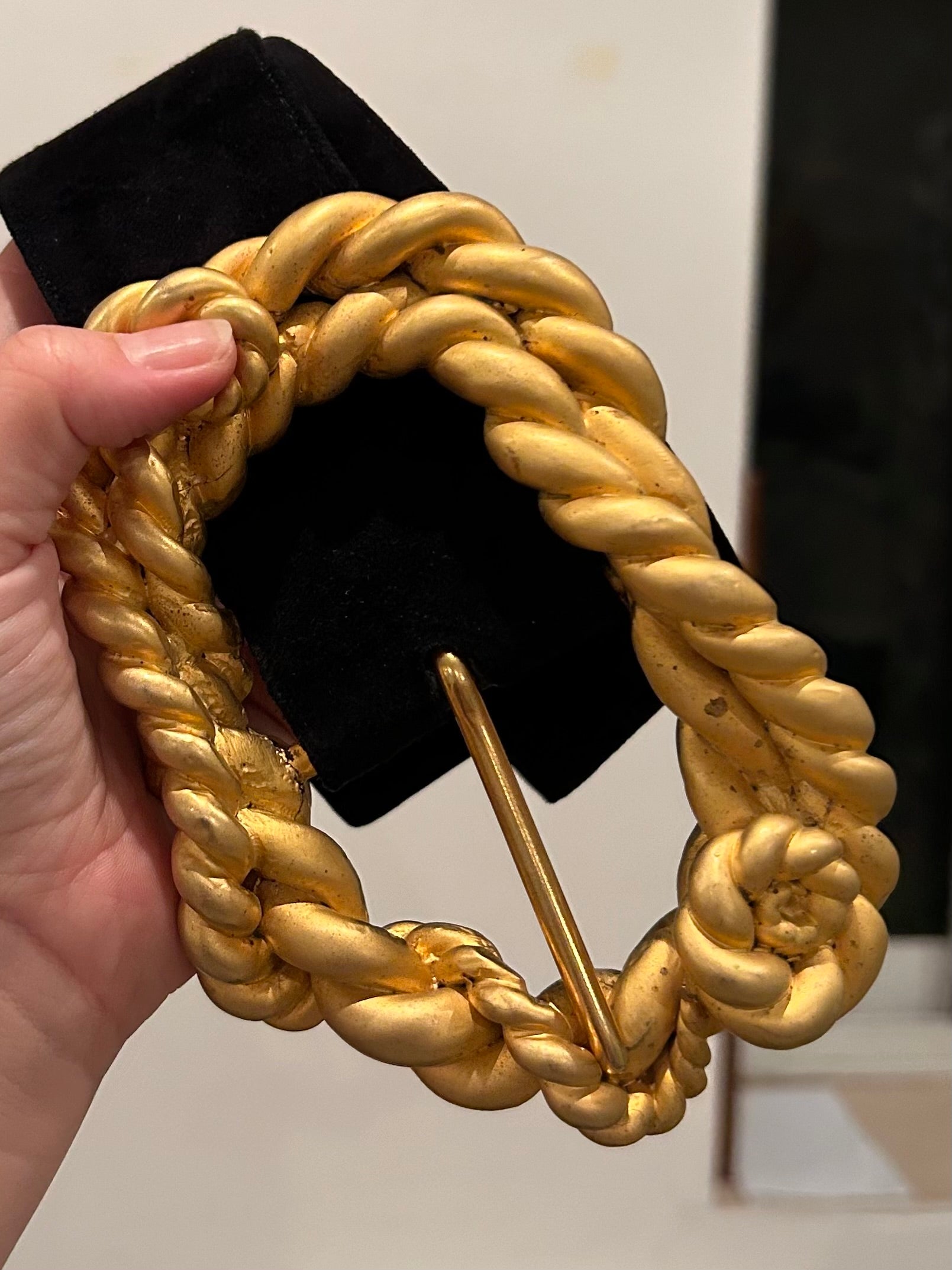 Chanel SS 1990 jumbo XL twisted rope black suede belt
