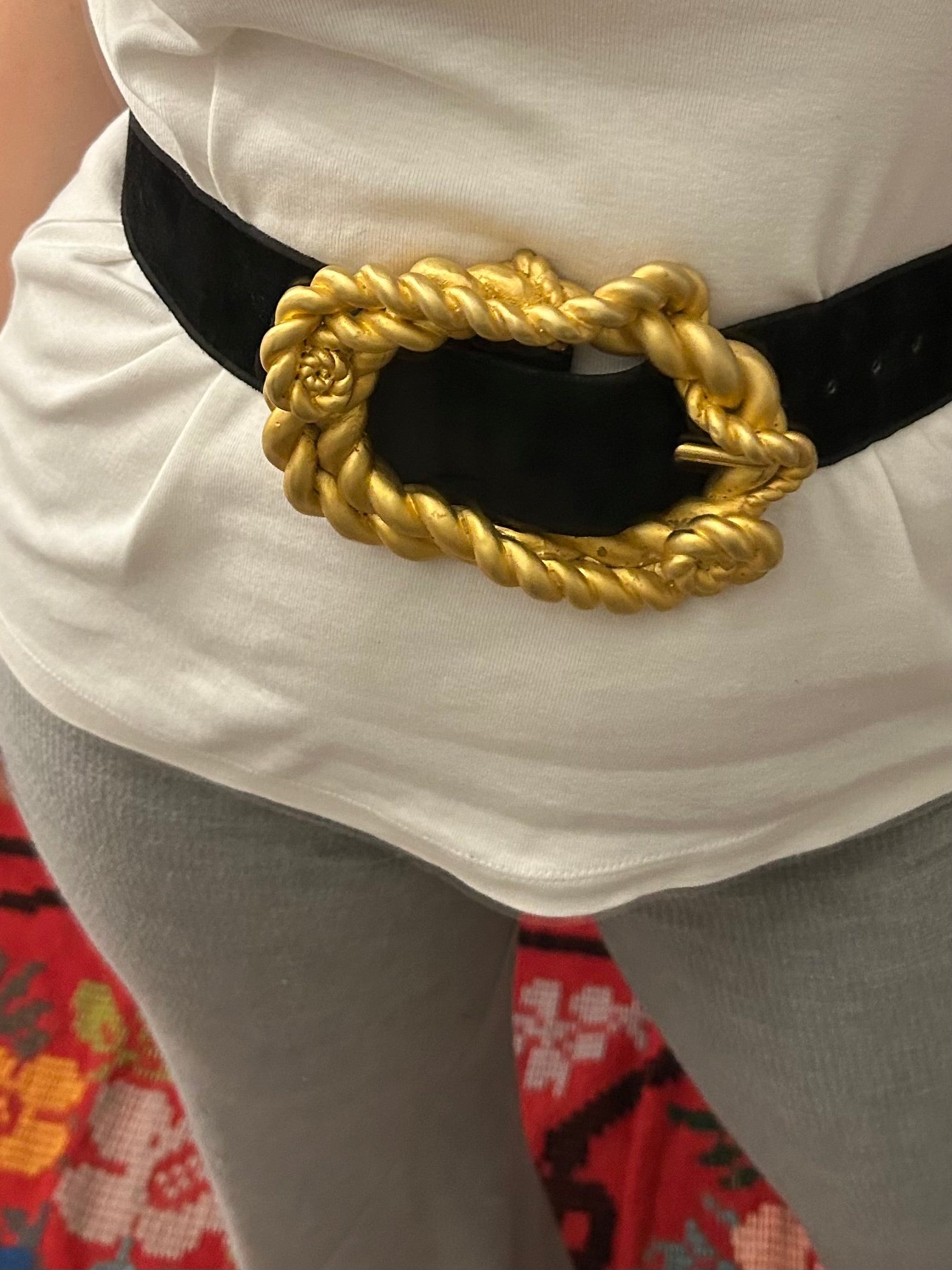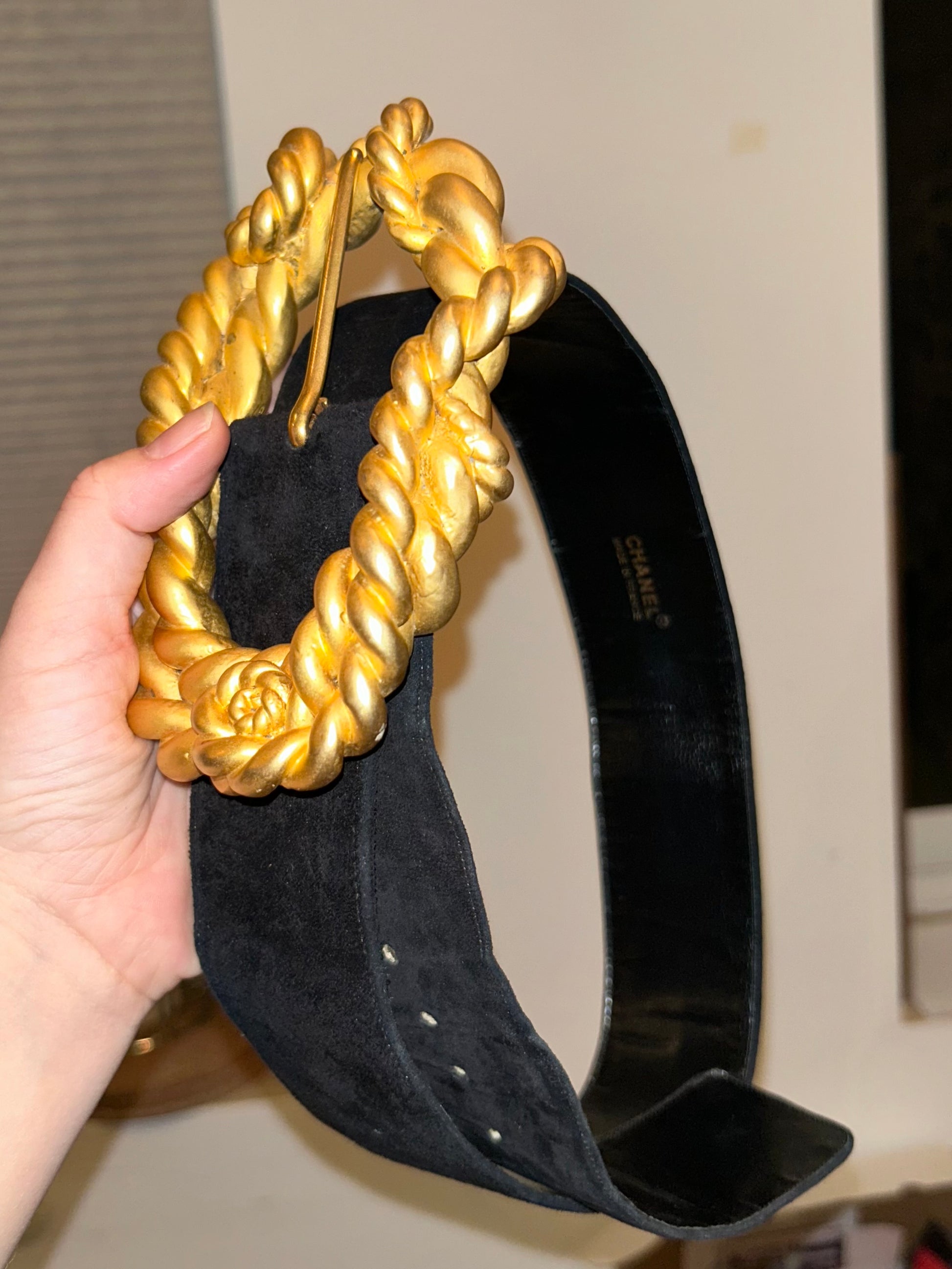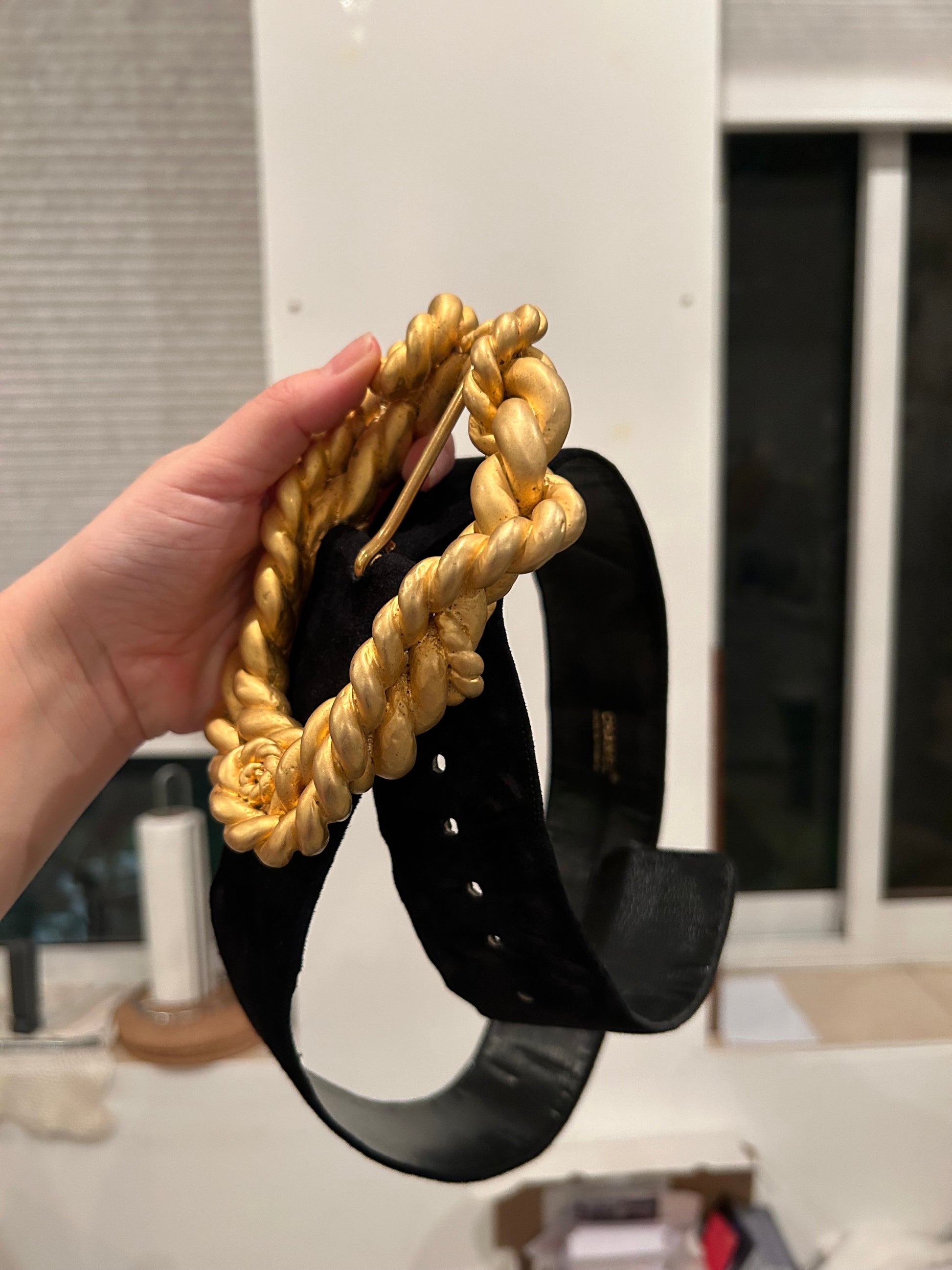 Chanel SS 1990 jumbo XL twisted rope black suede belt