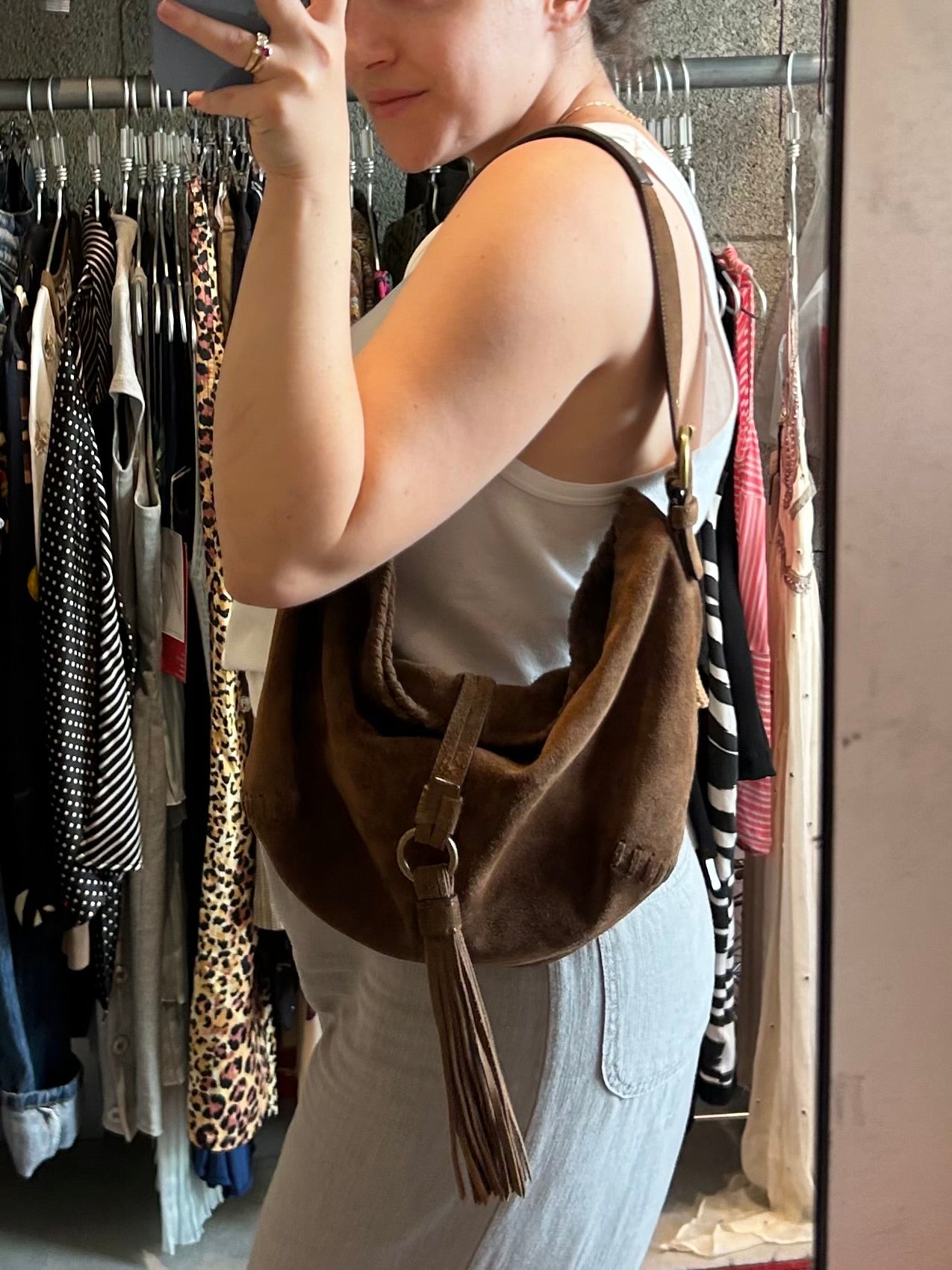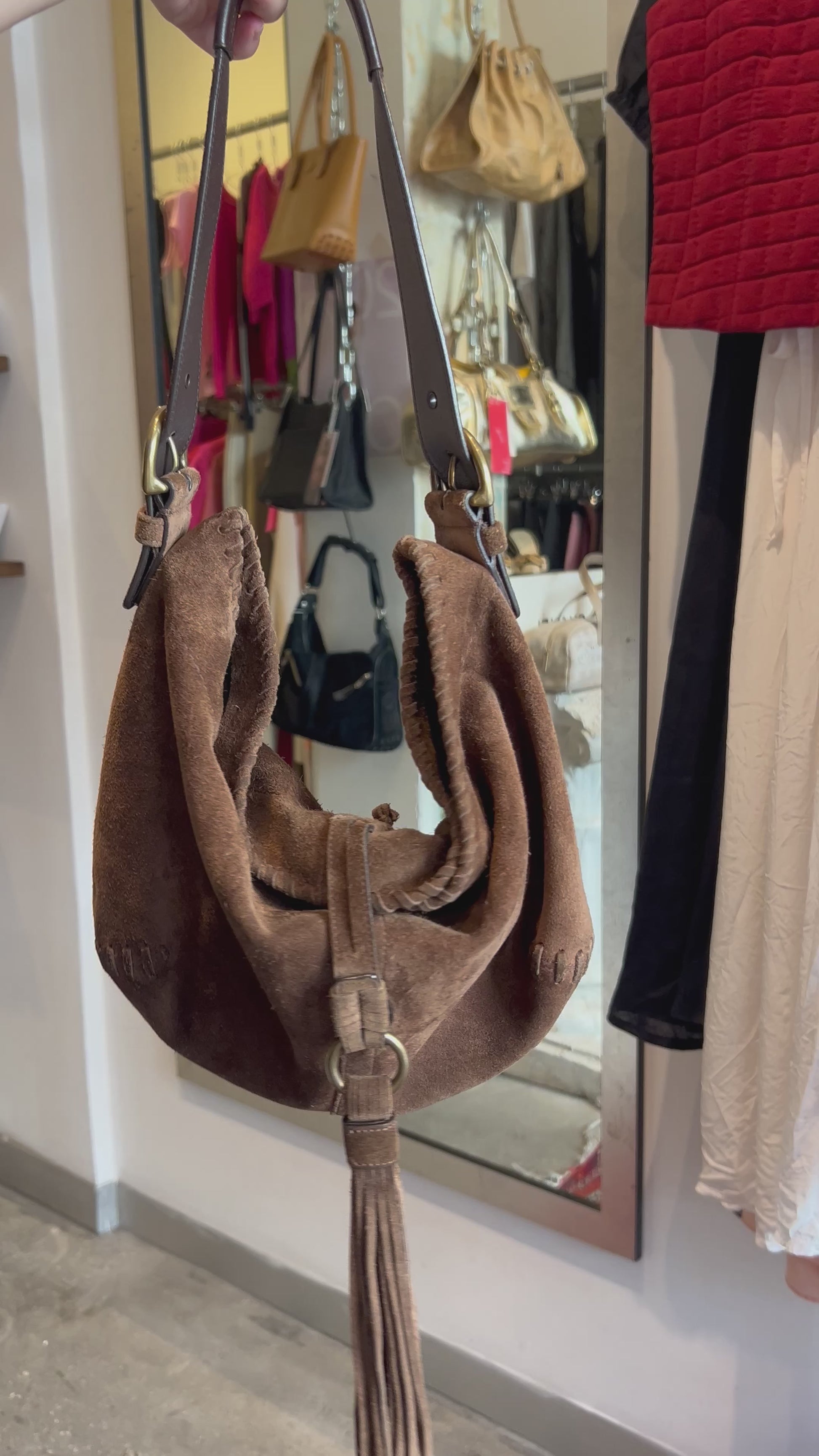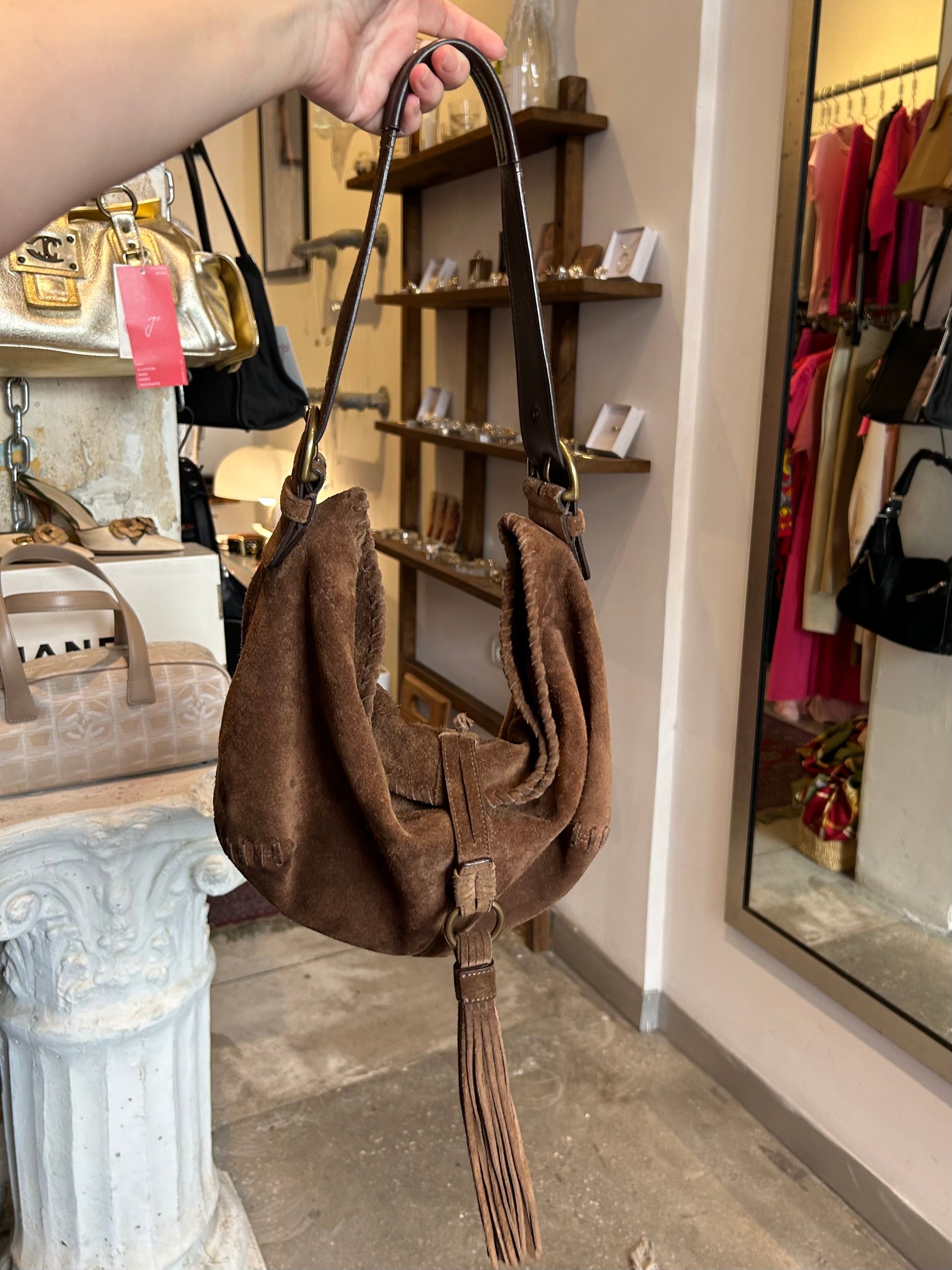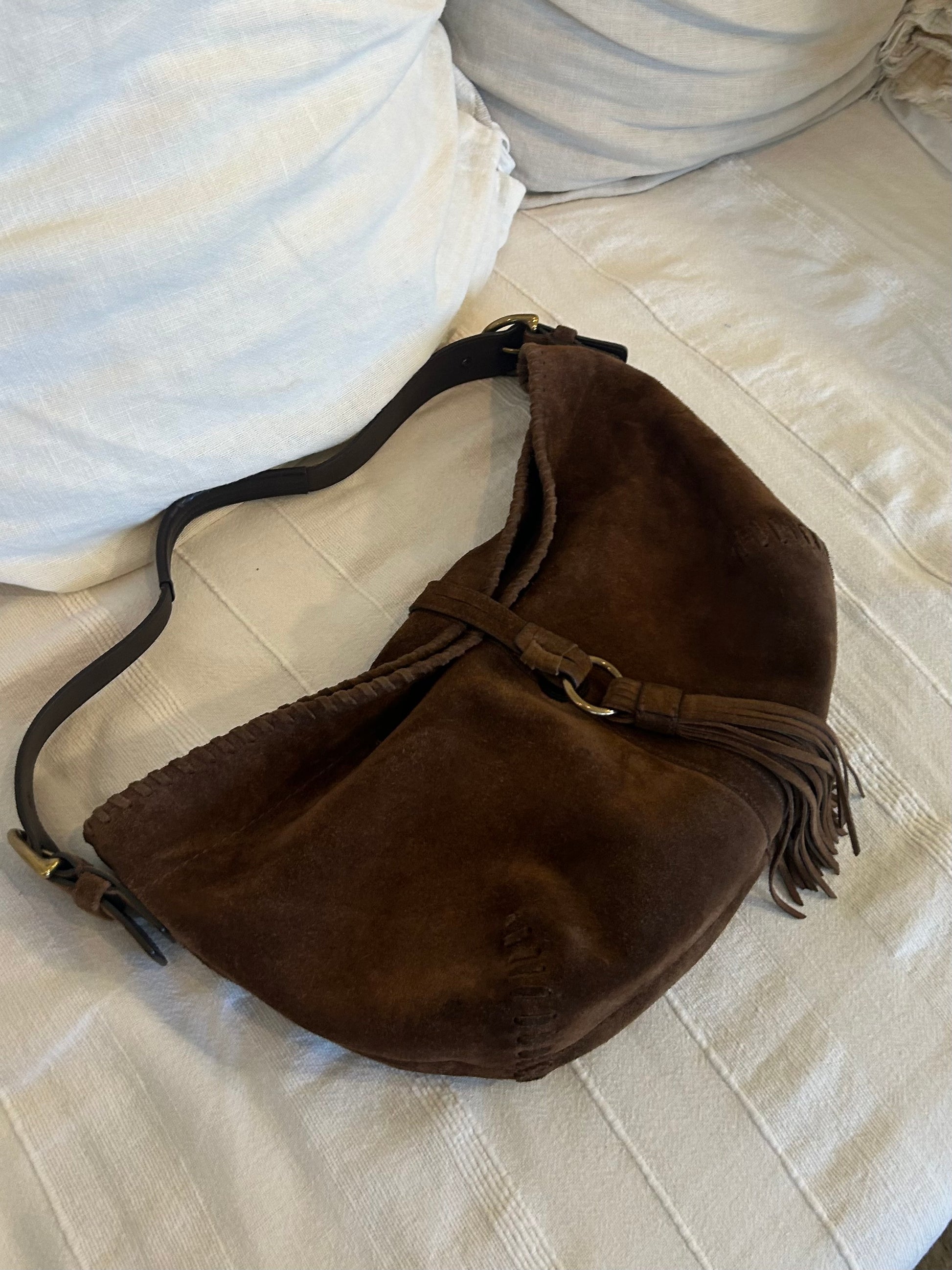 COACH brown suede fringes bag