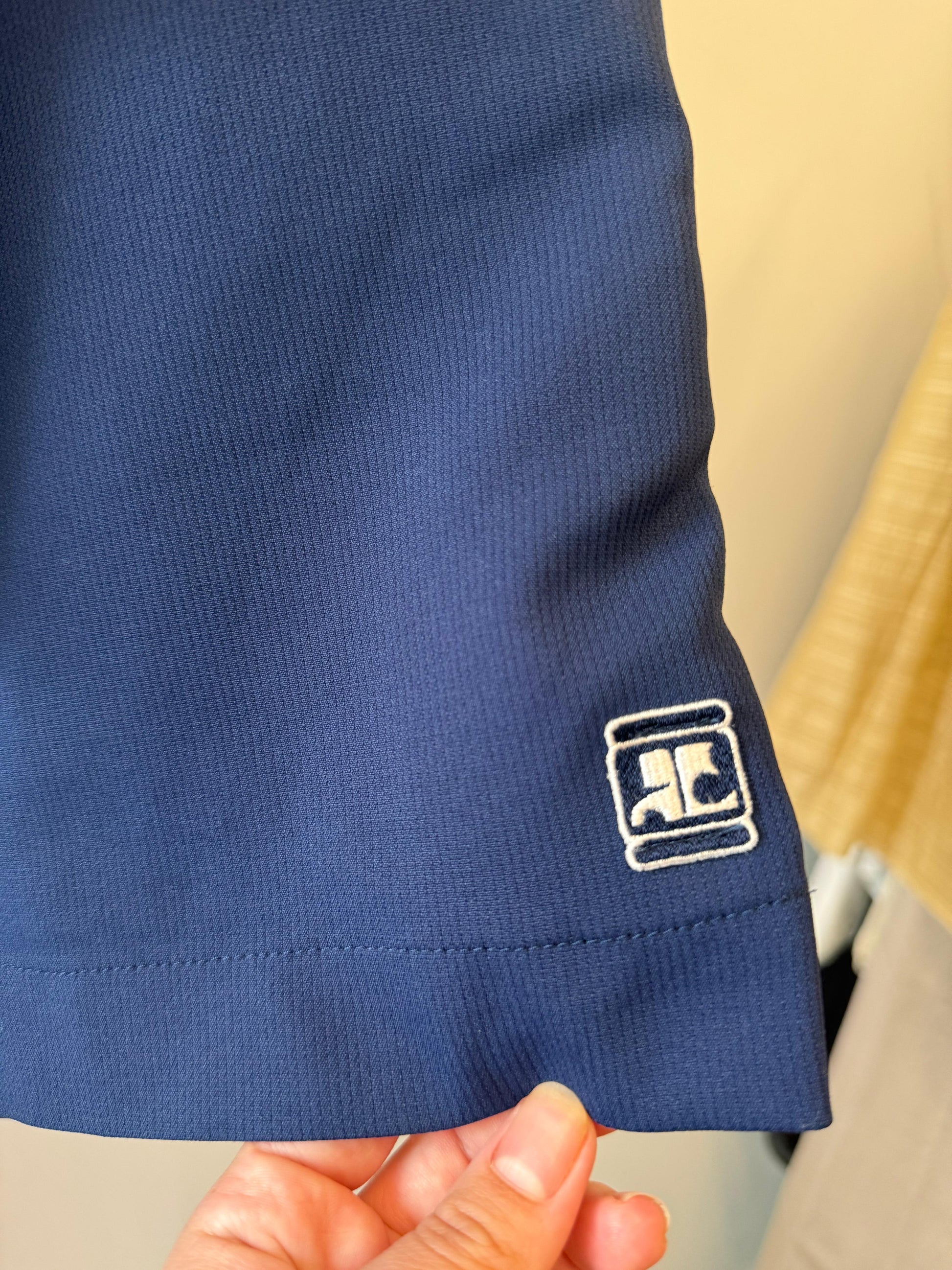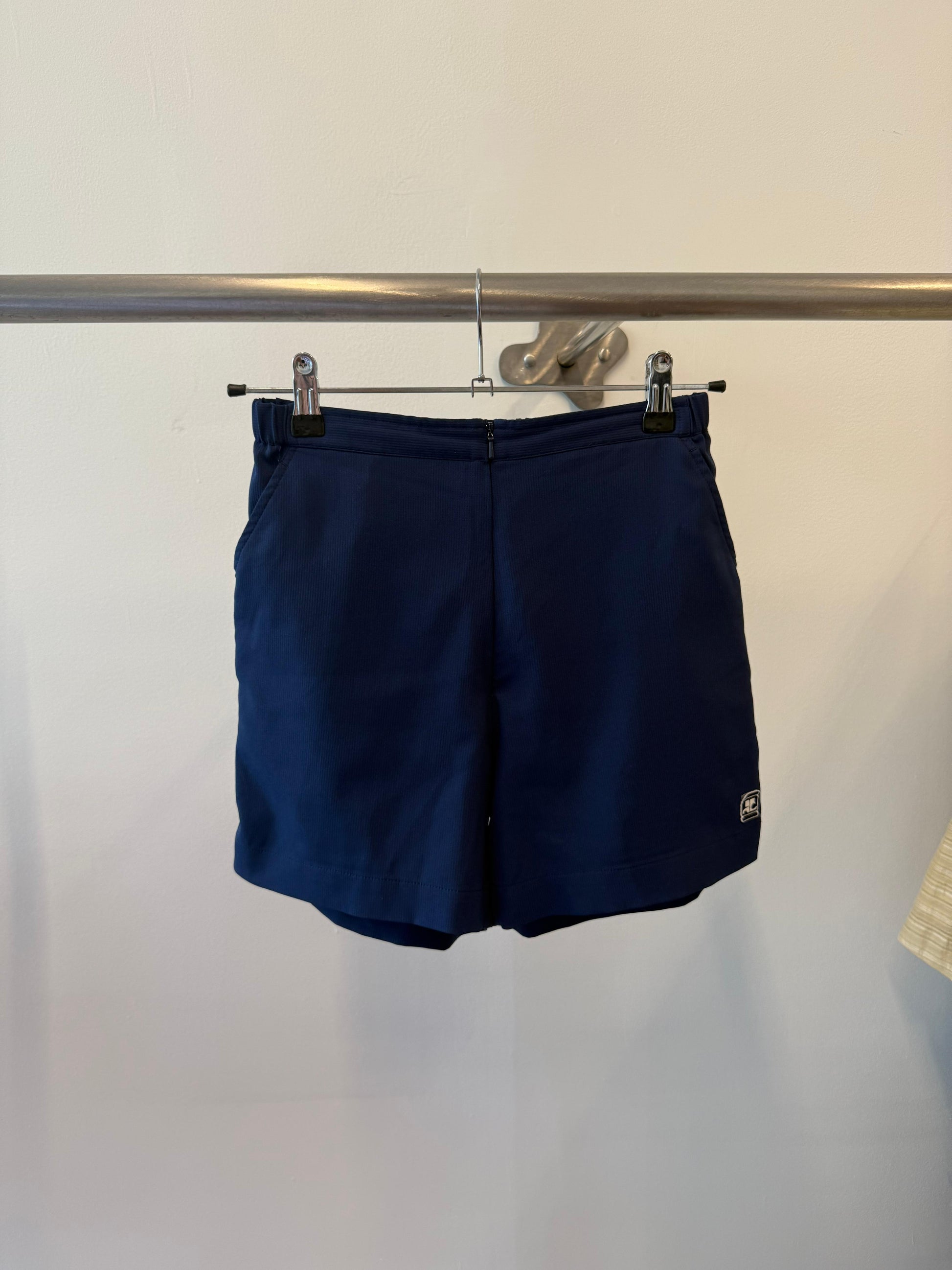 blue navy sporty shorts with a front zipper and a stretchy waist