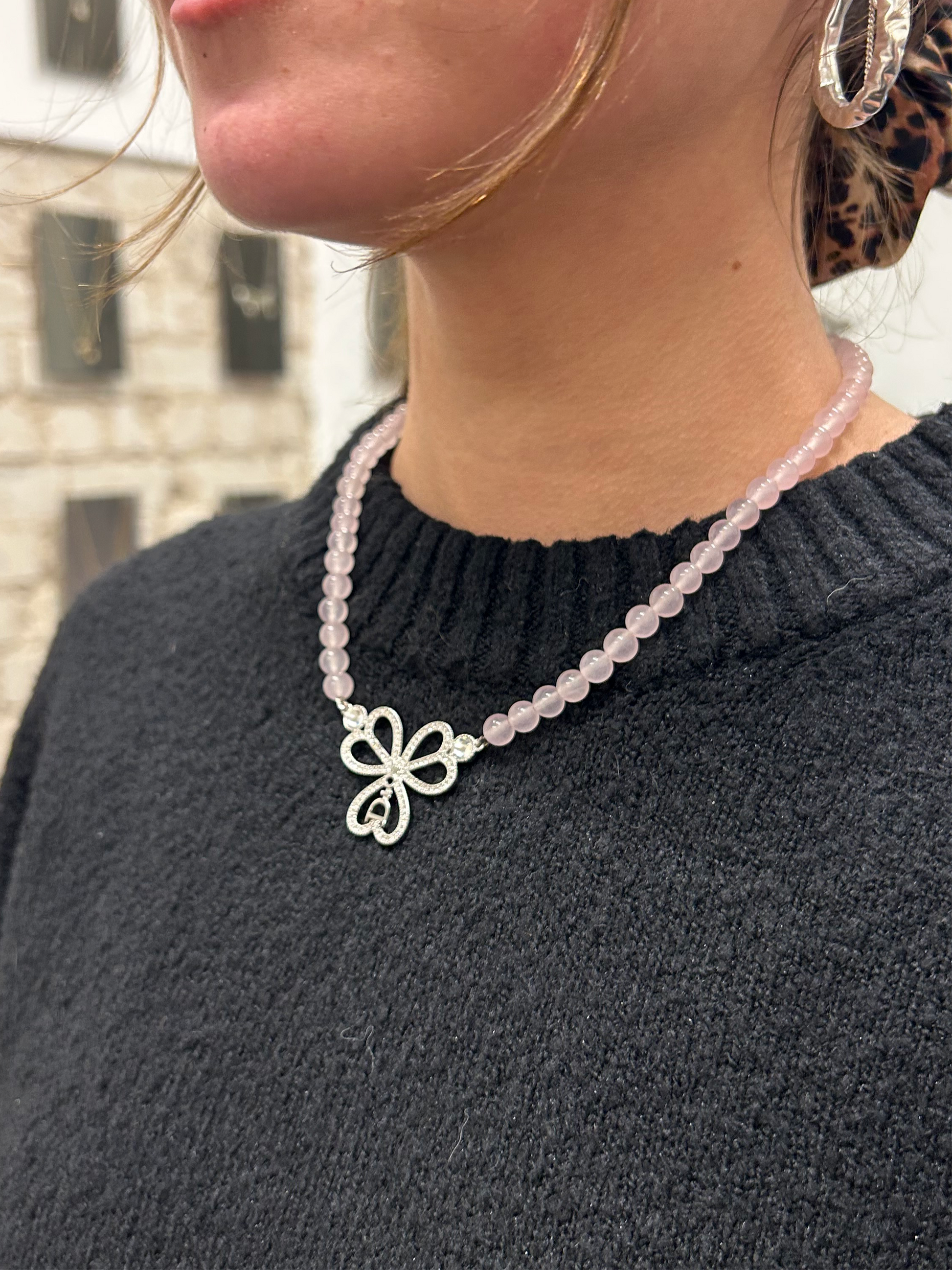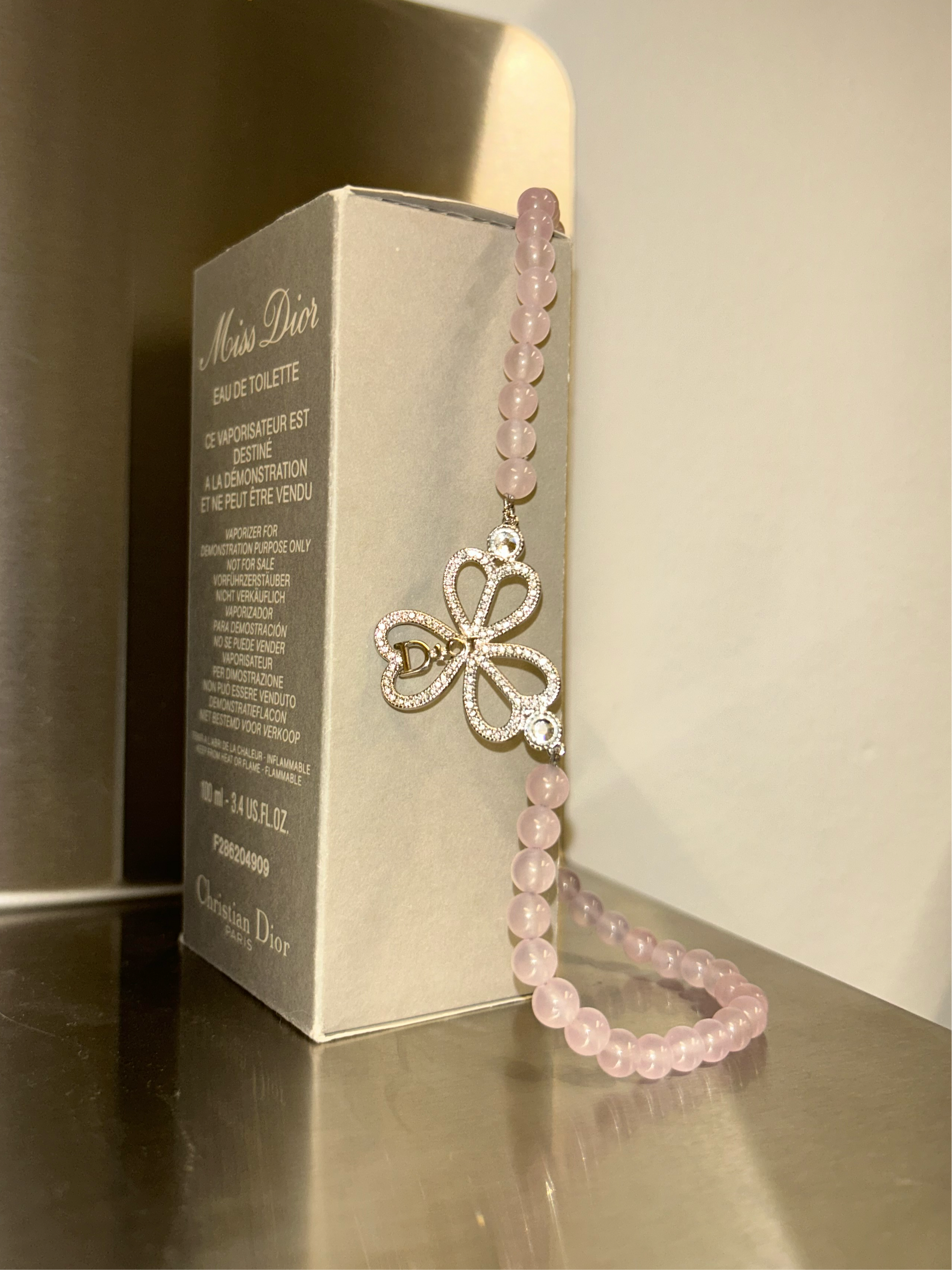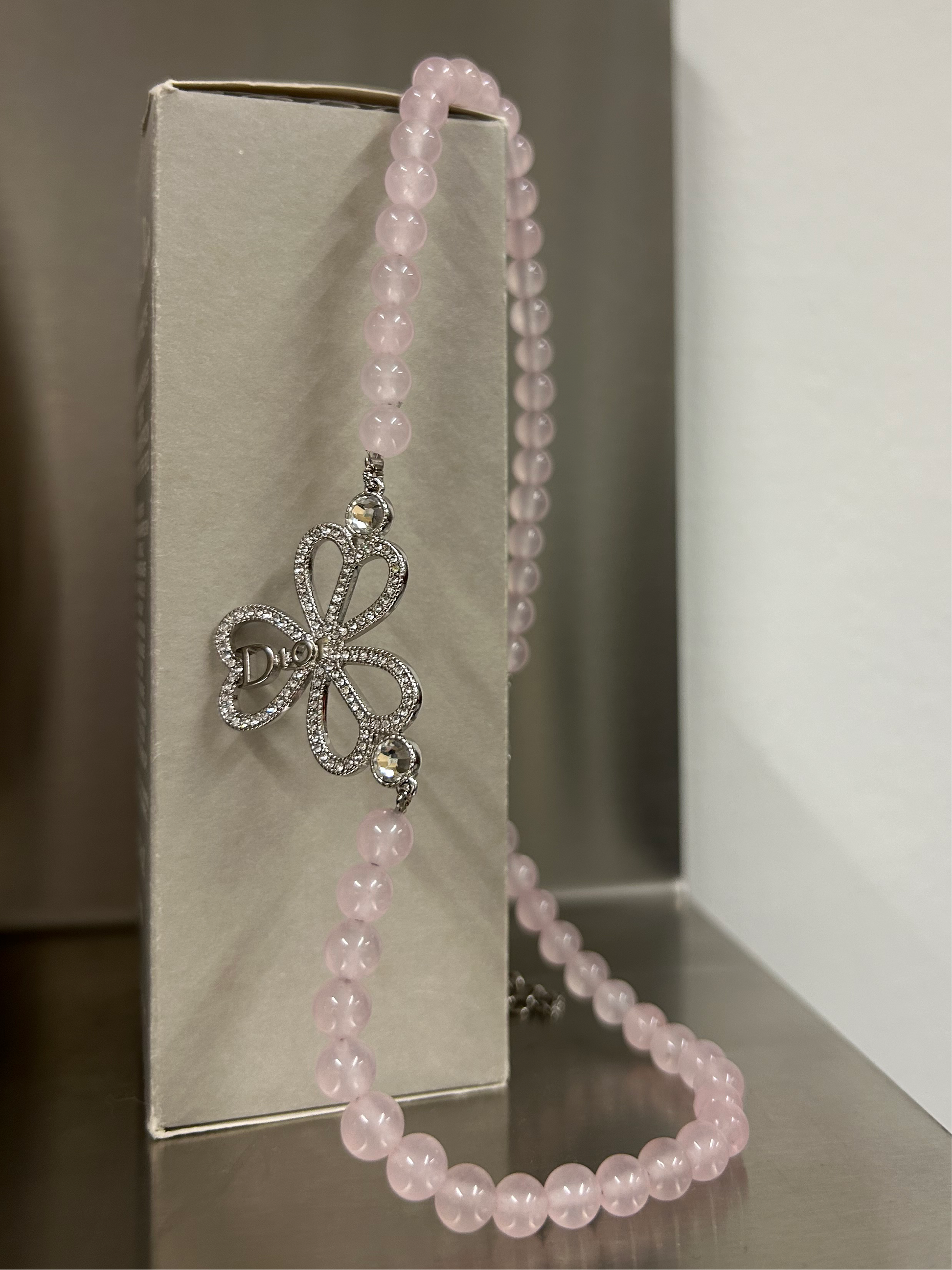 DIOR pink rose quartz necklace