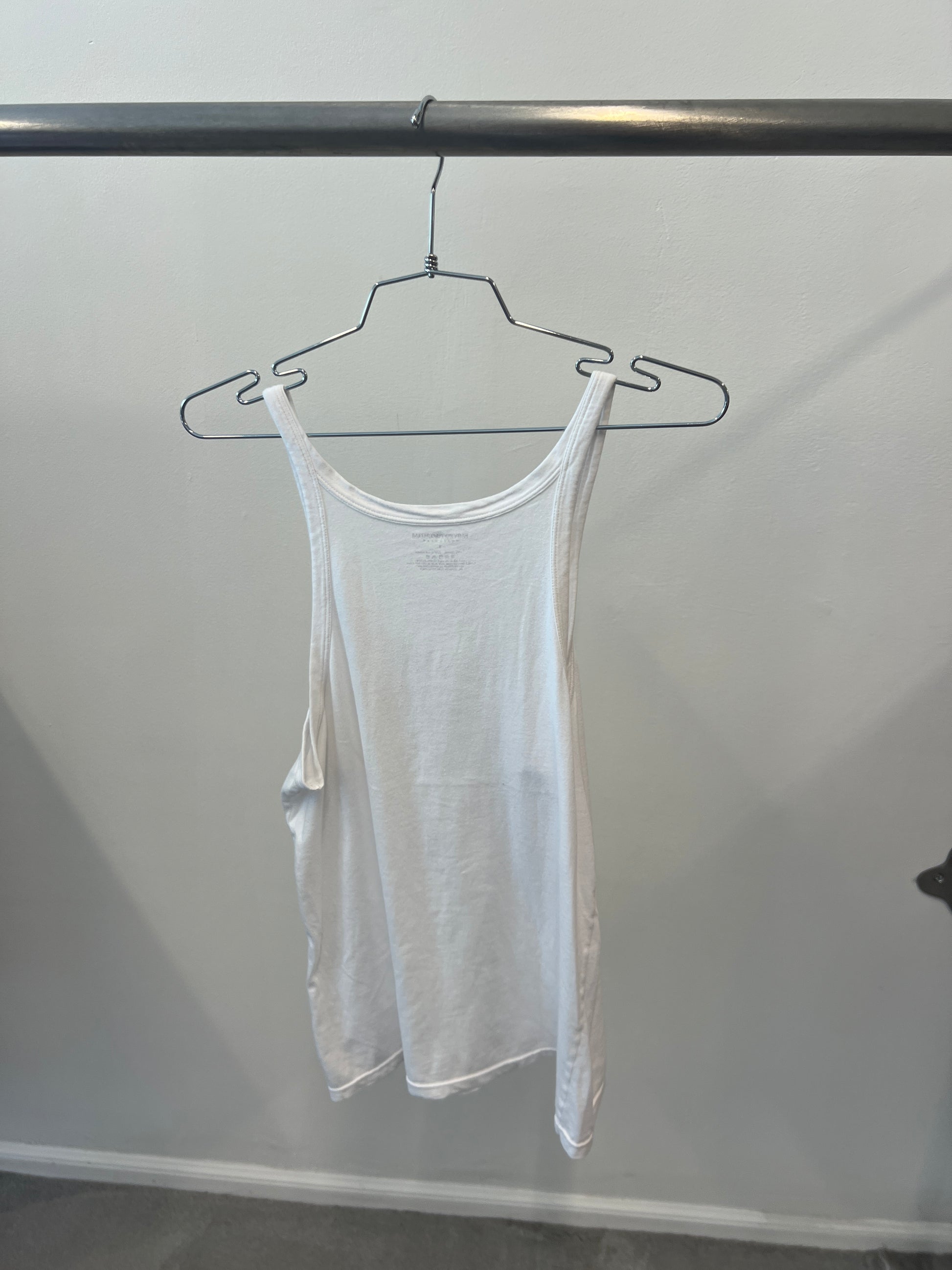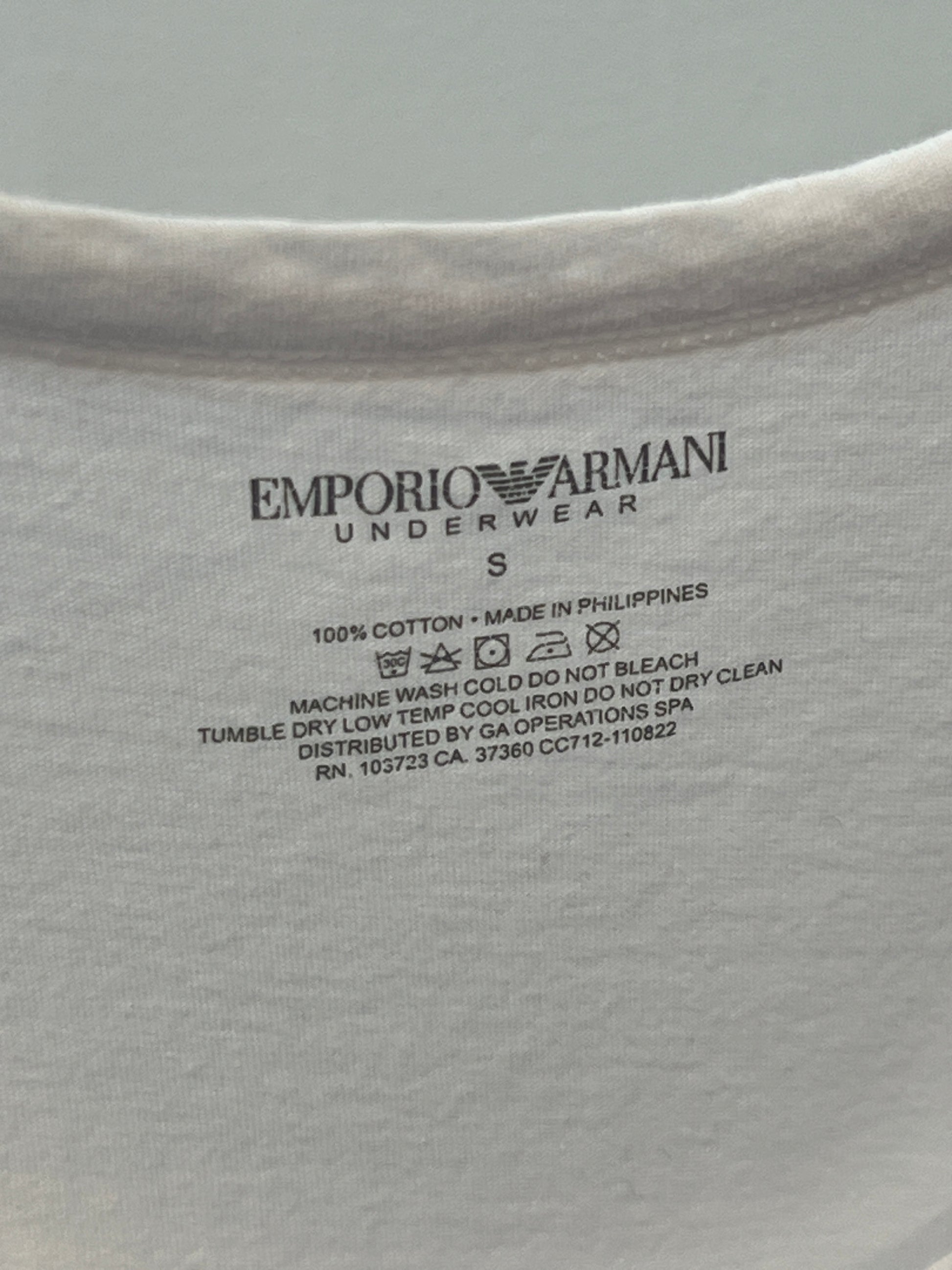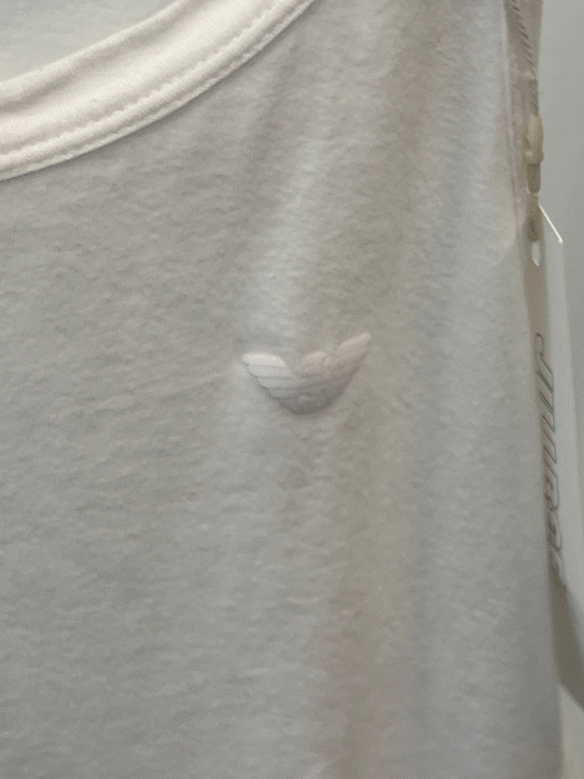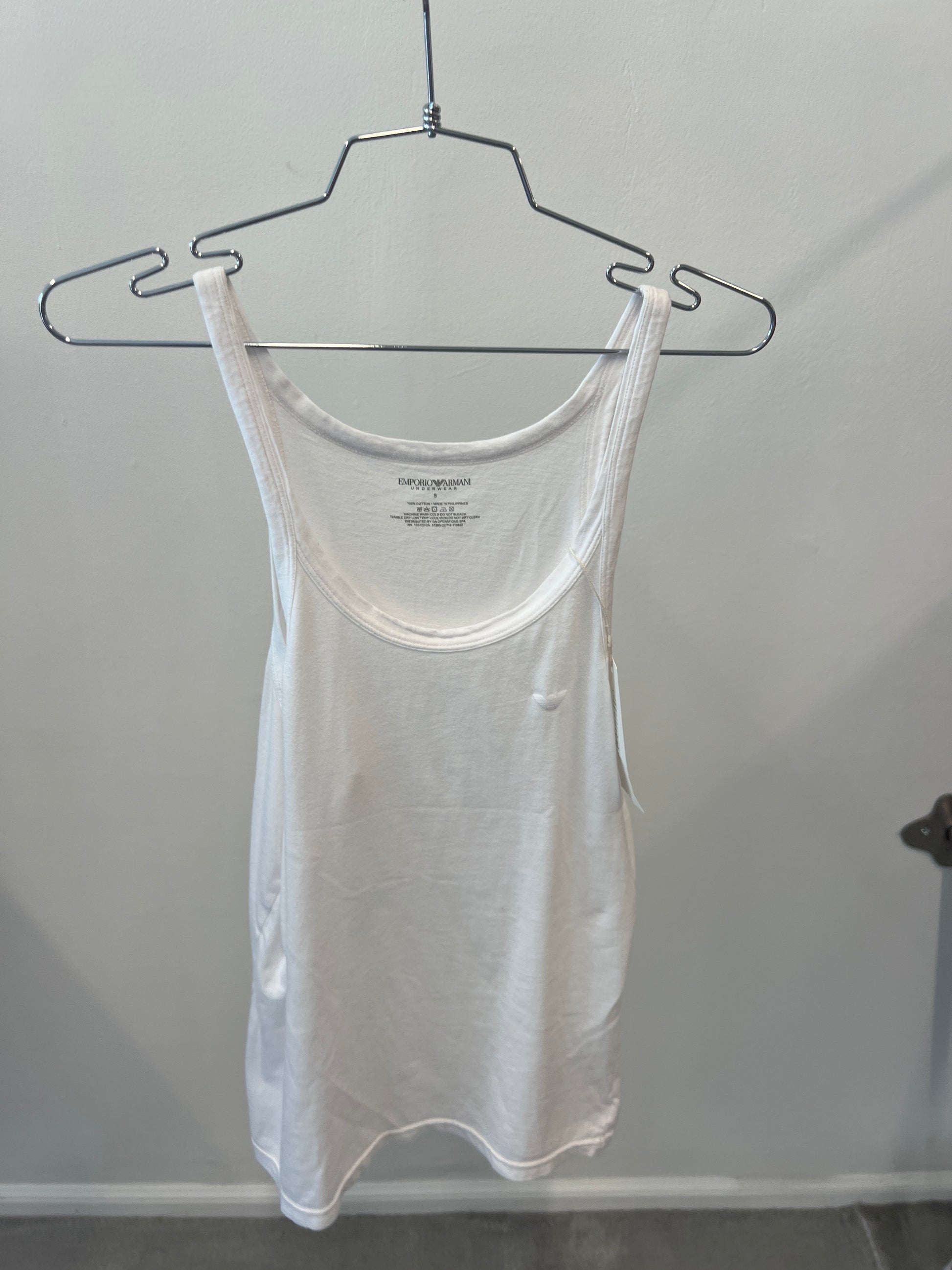 white slim strap “underwear” tank top imbedded with the Armani logo
