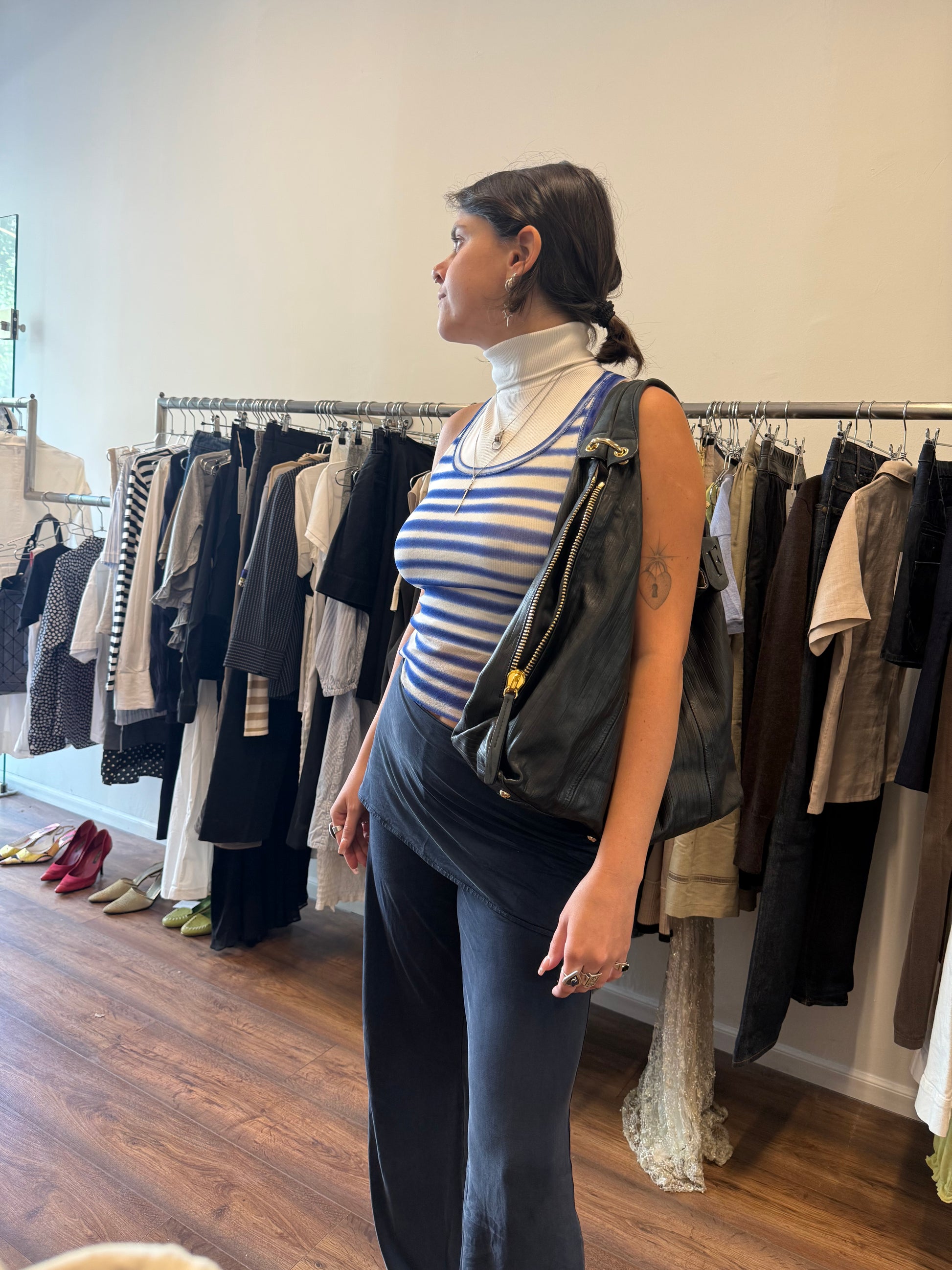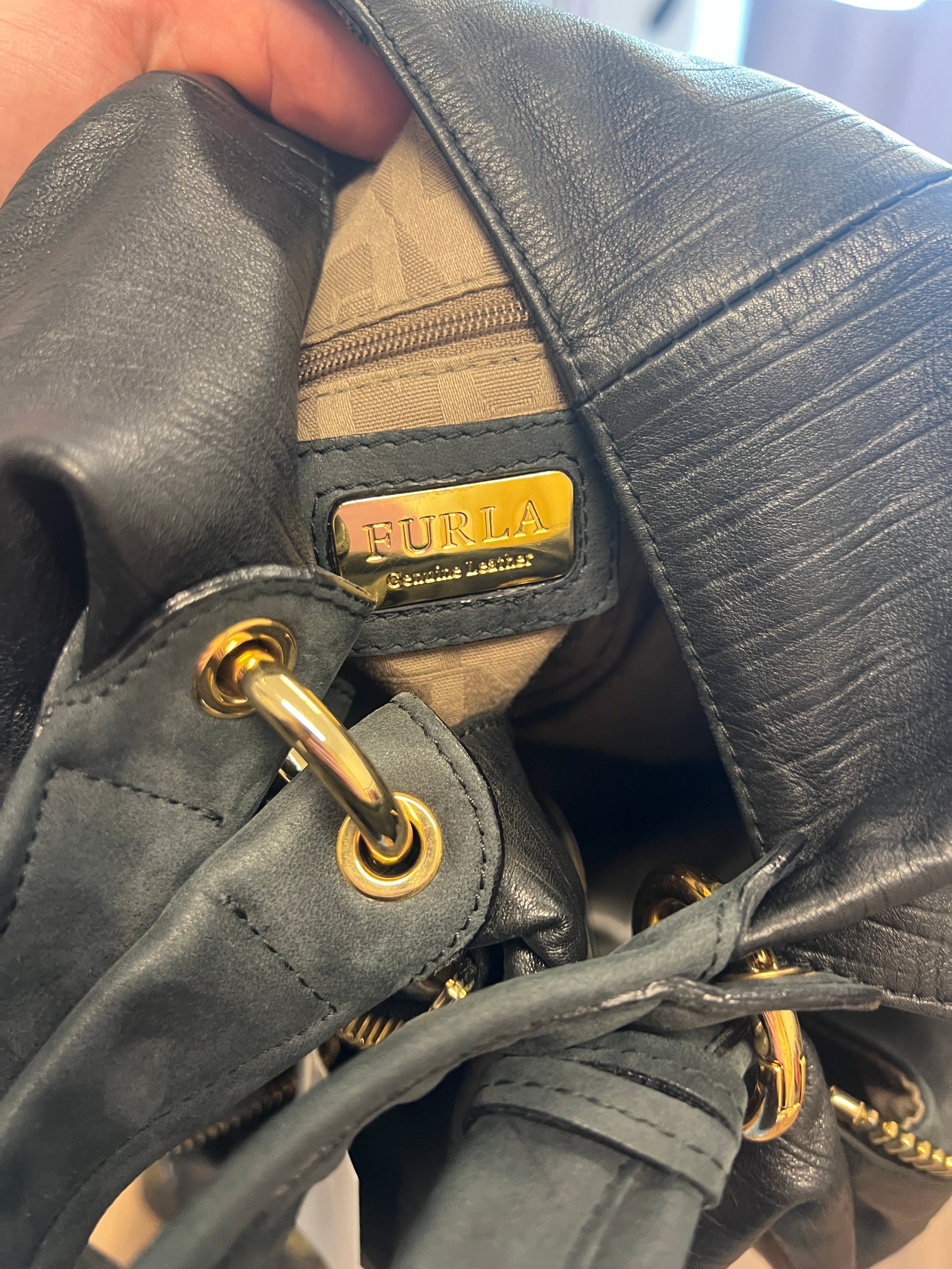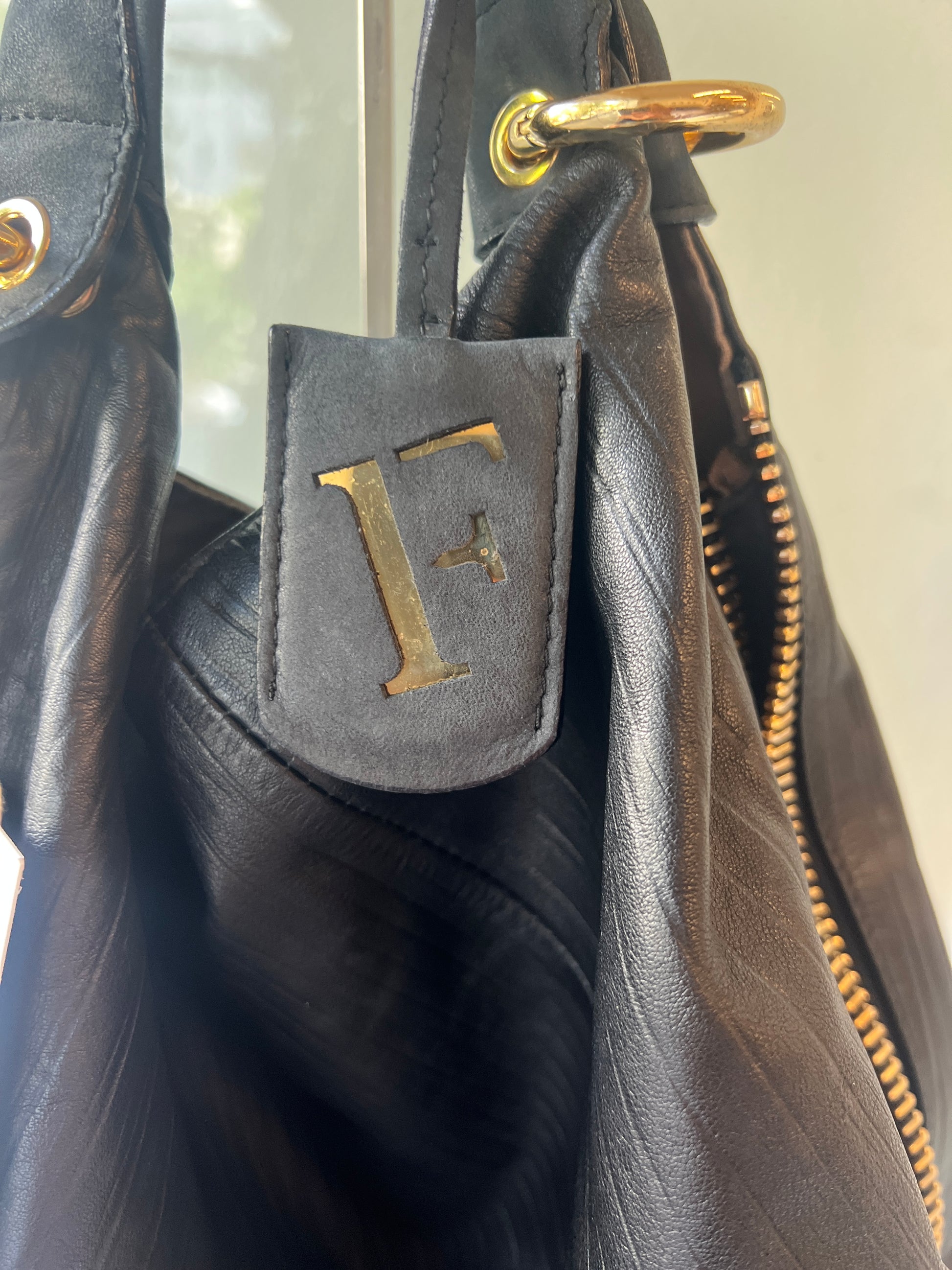 big hobo leather tote bag with dark grey suede handels and gold hardware