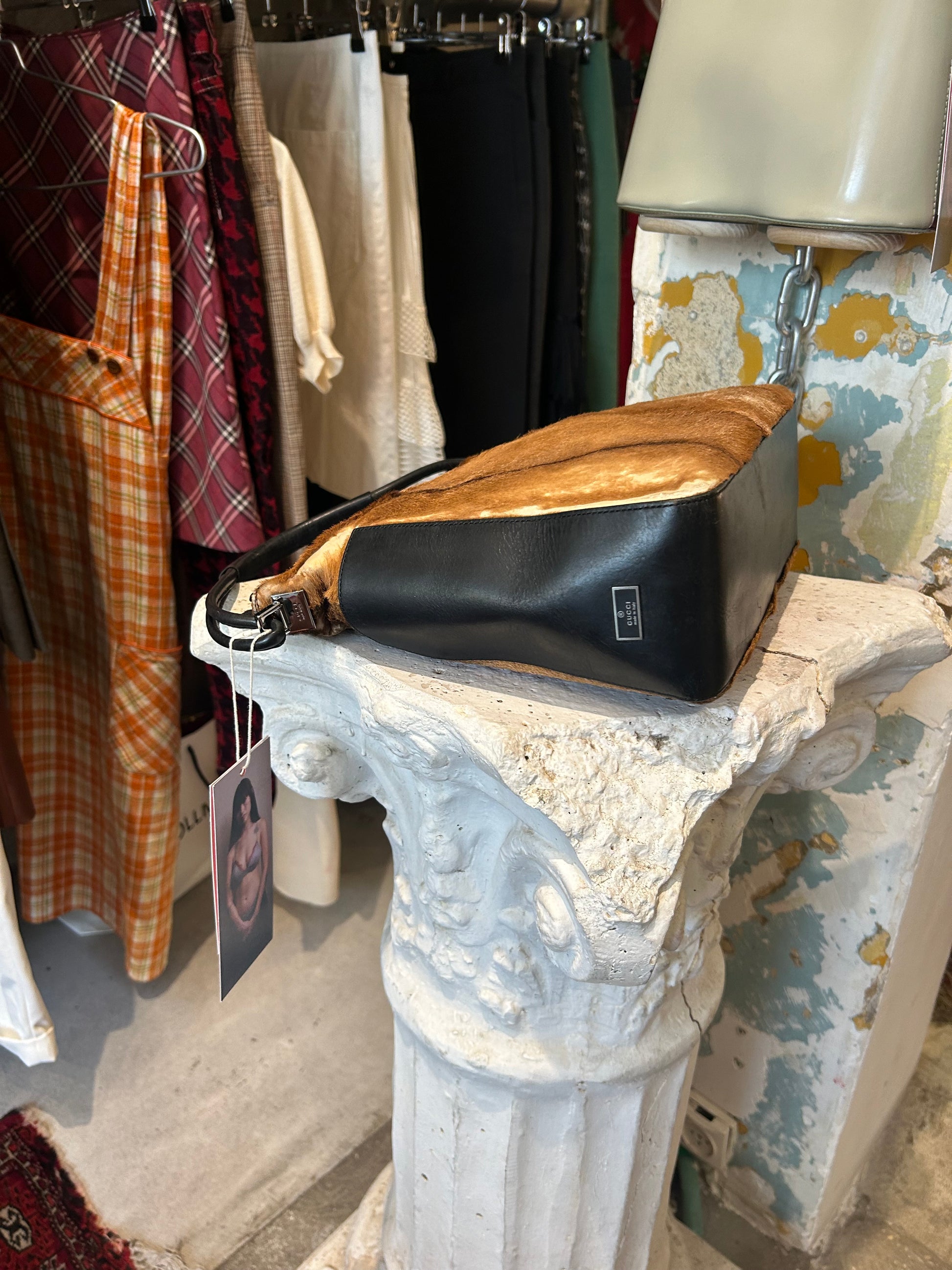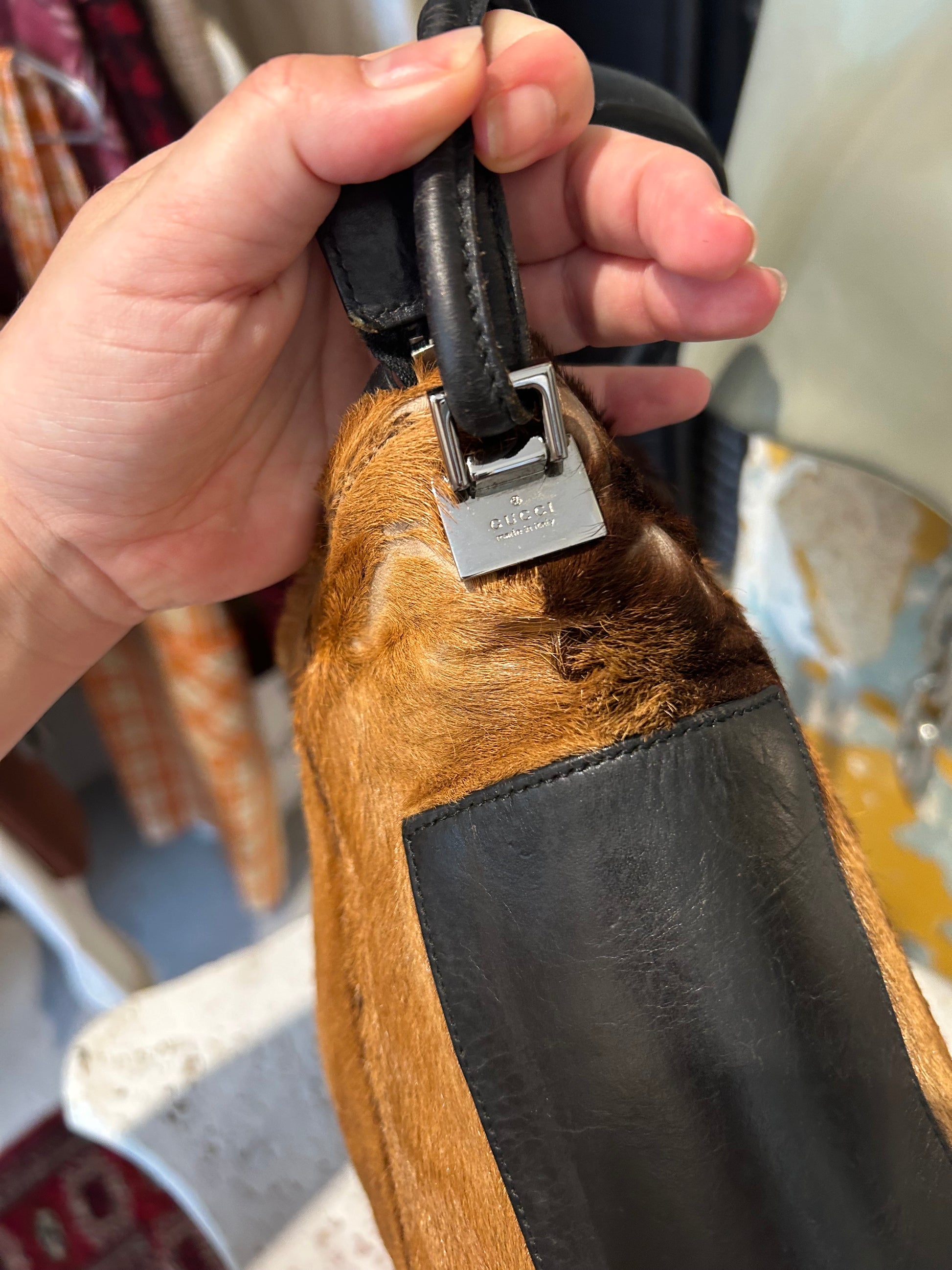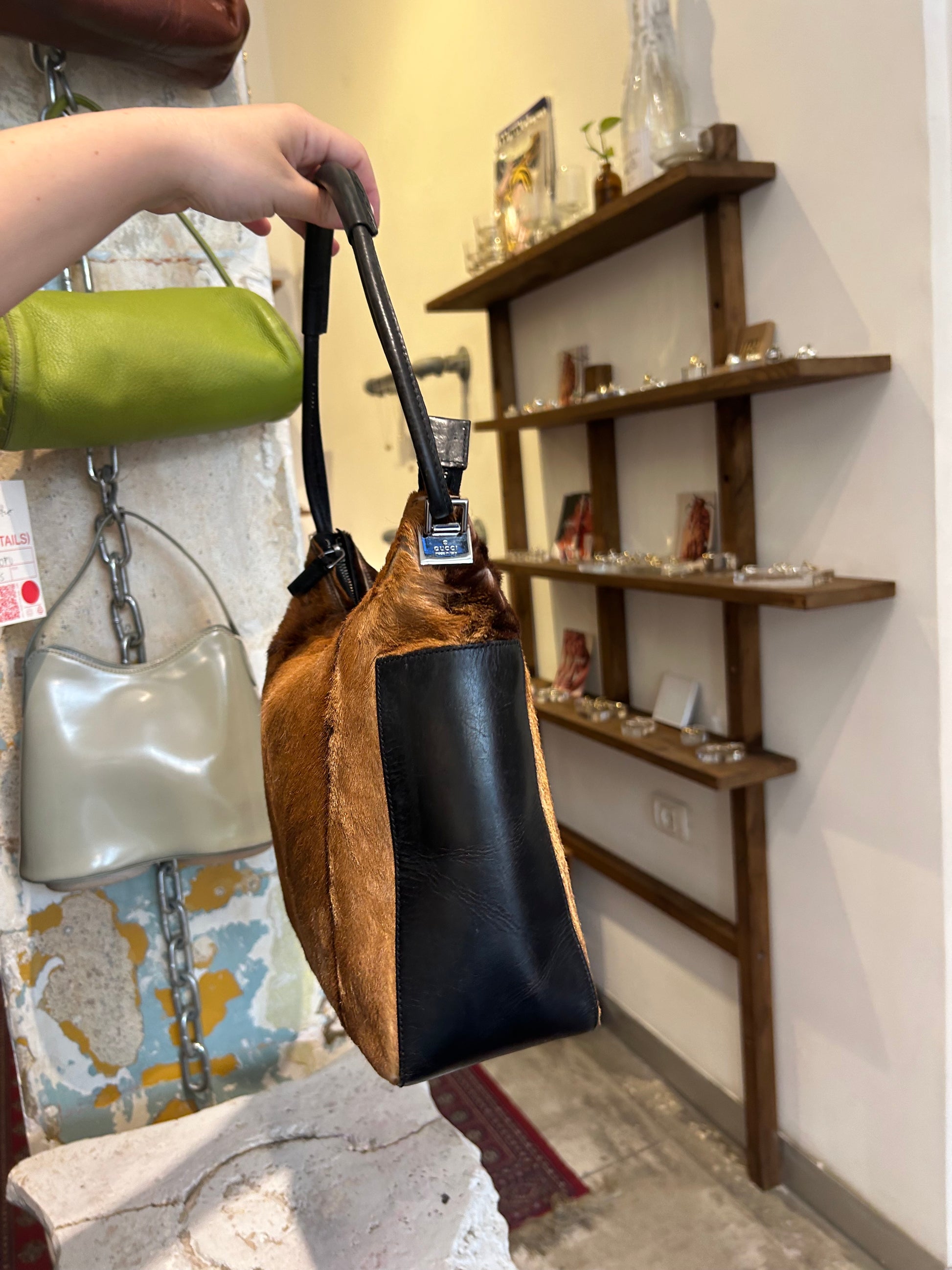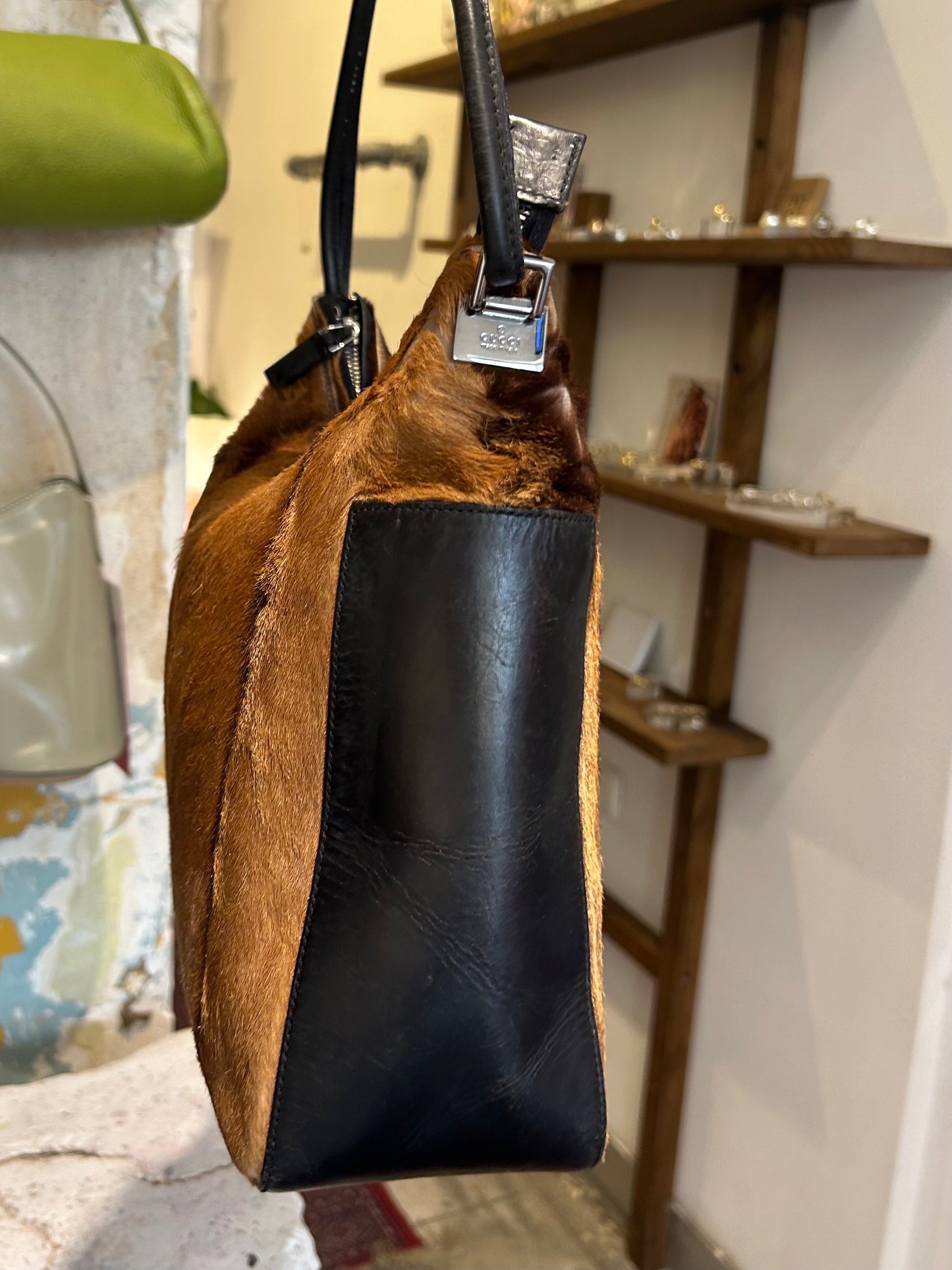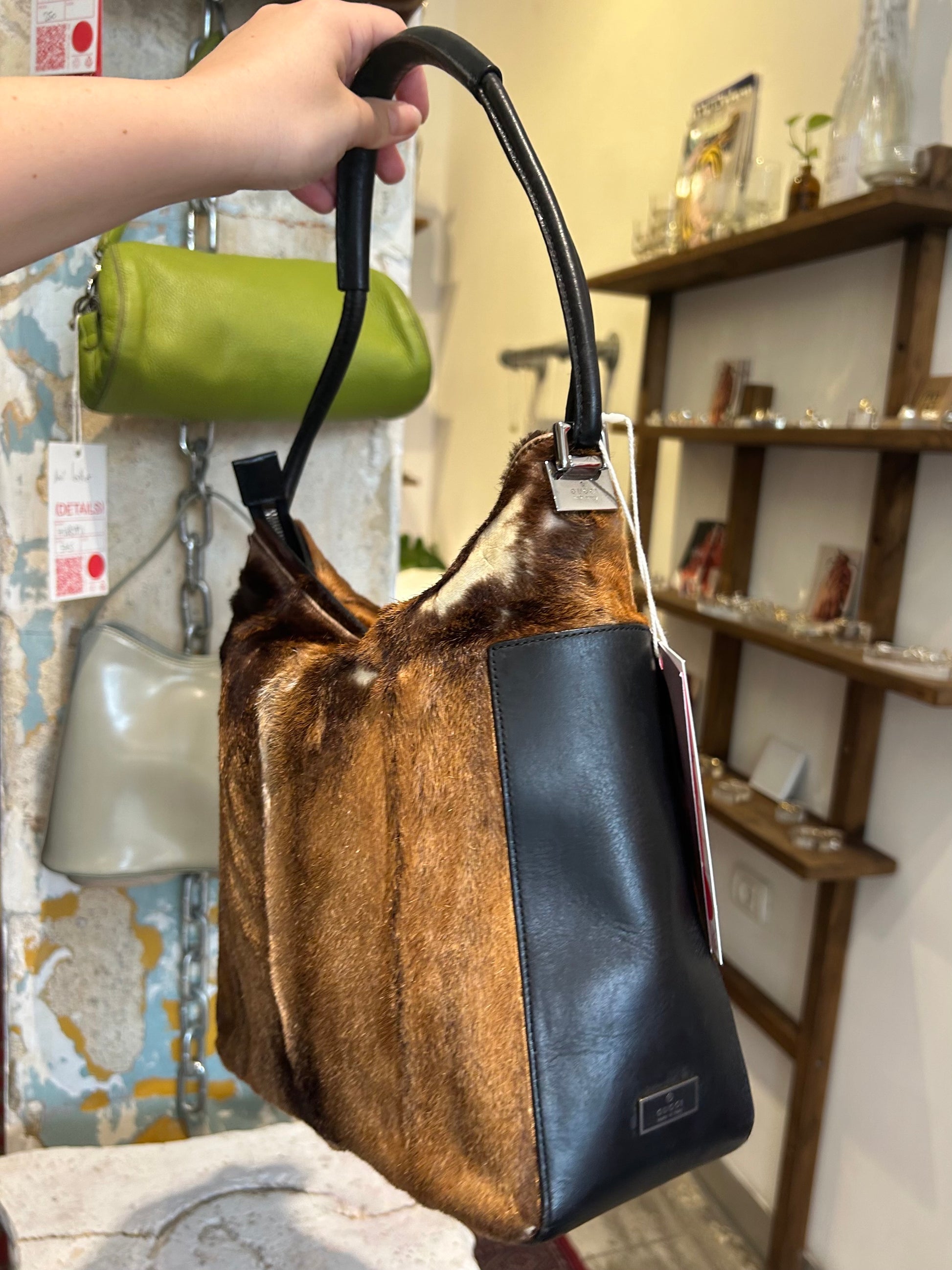 90’s GUCCI black & brown fur cowhide leather shoulder bag