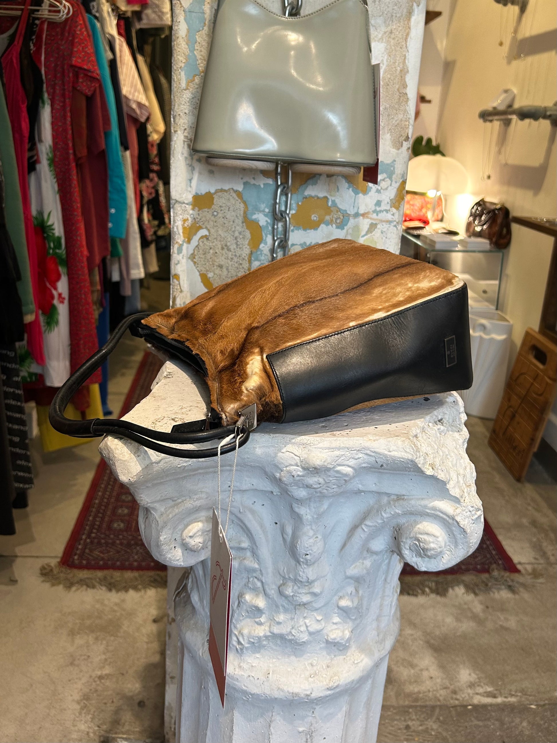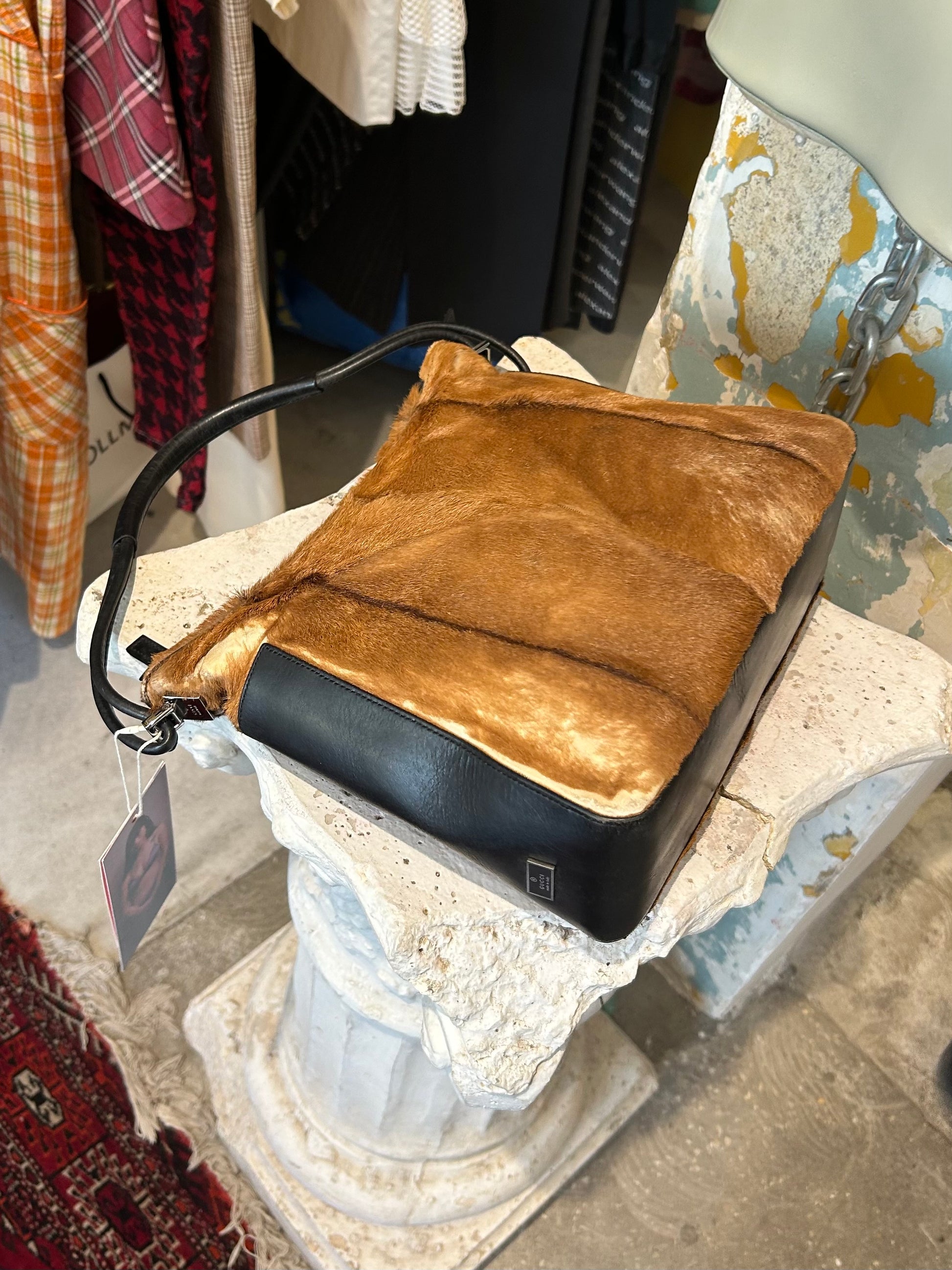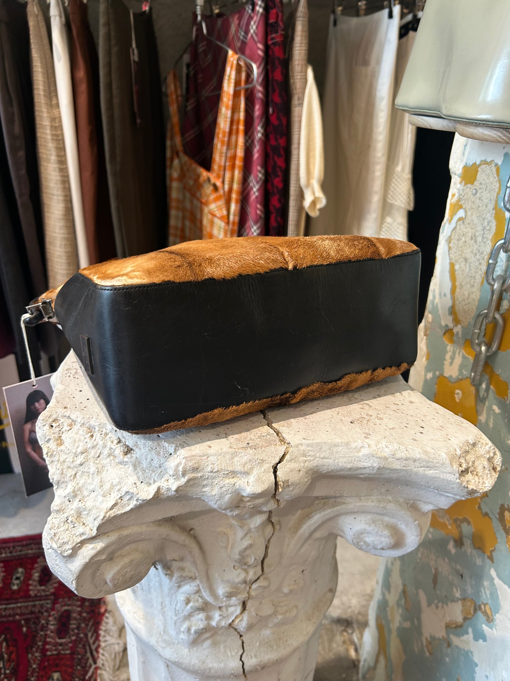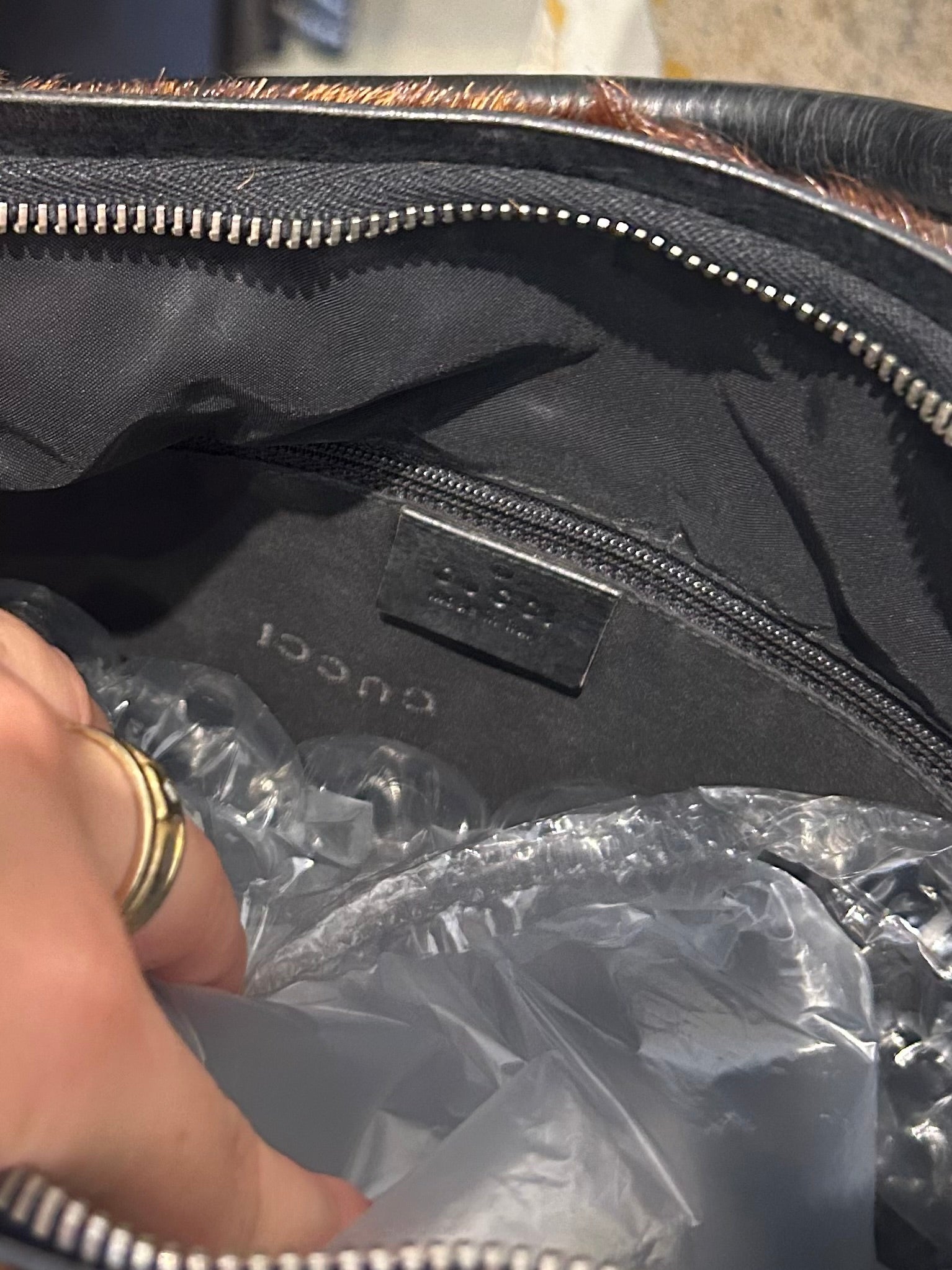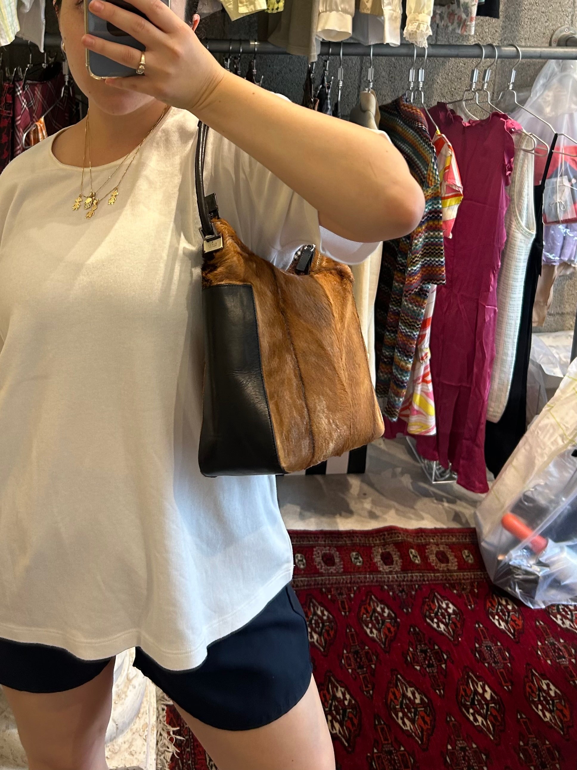 90’s GUCCI black & brown fur cowhide leather shoulder bag