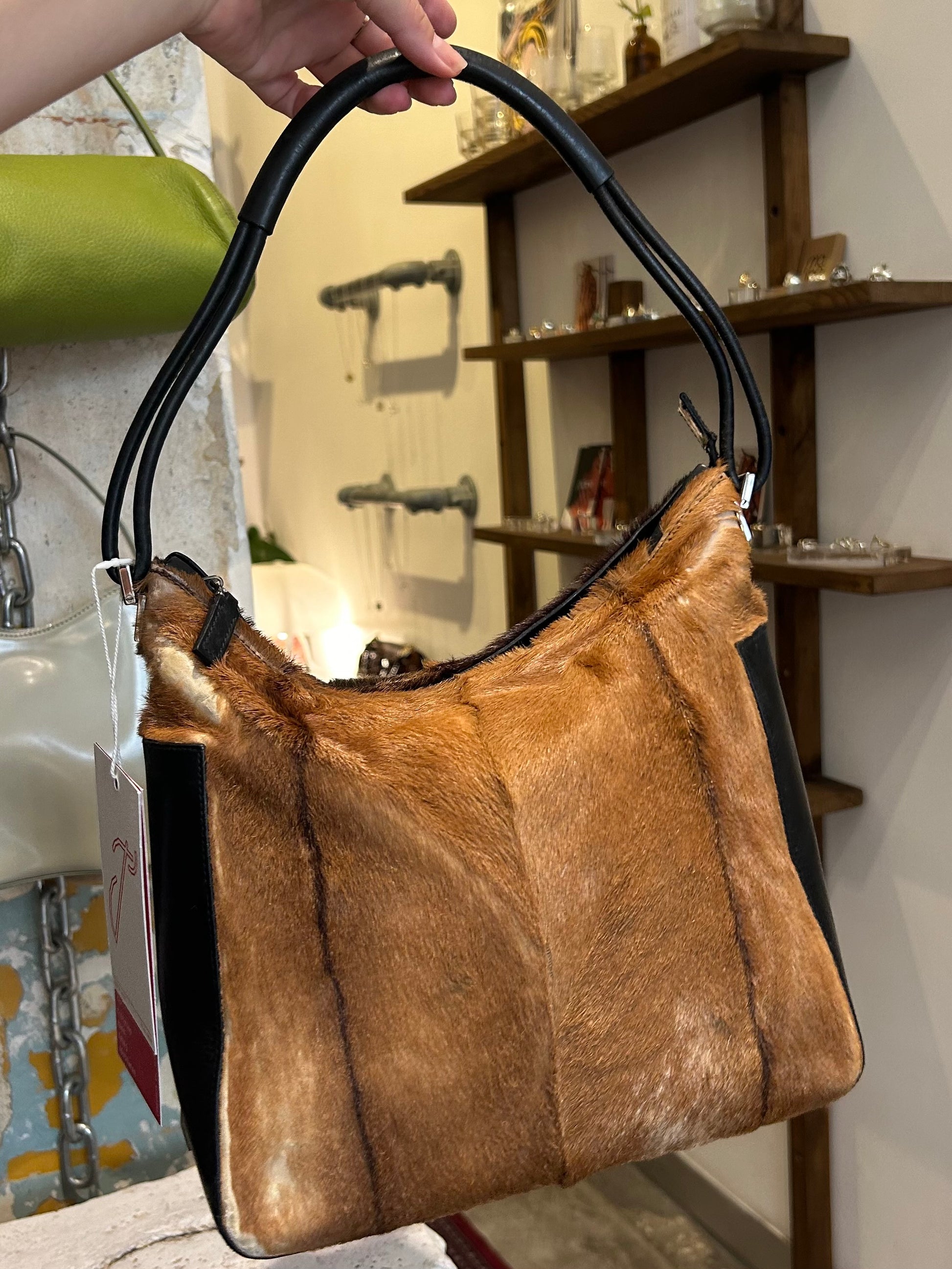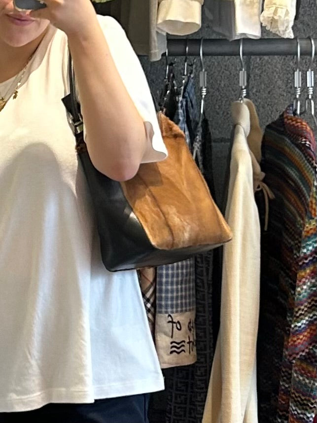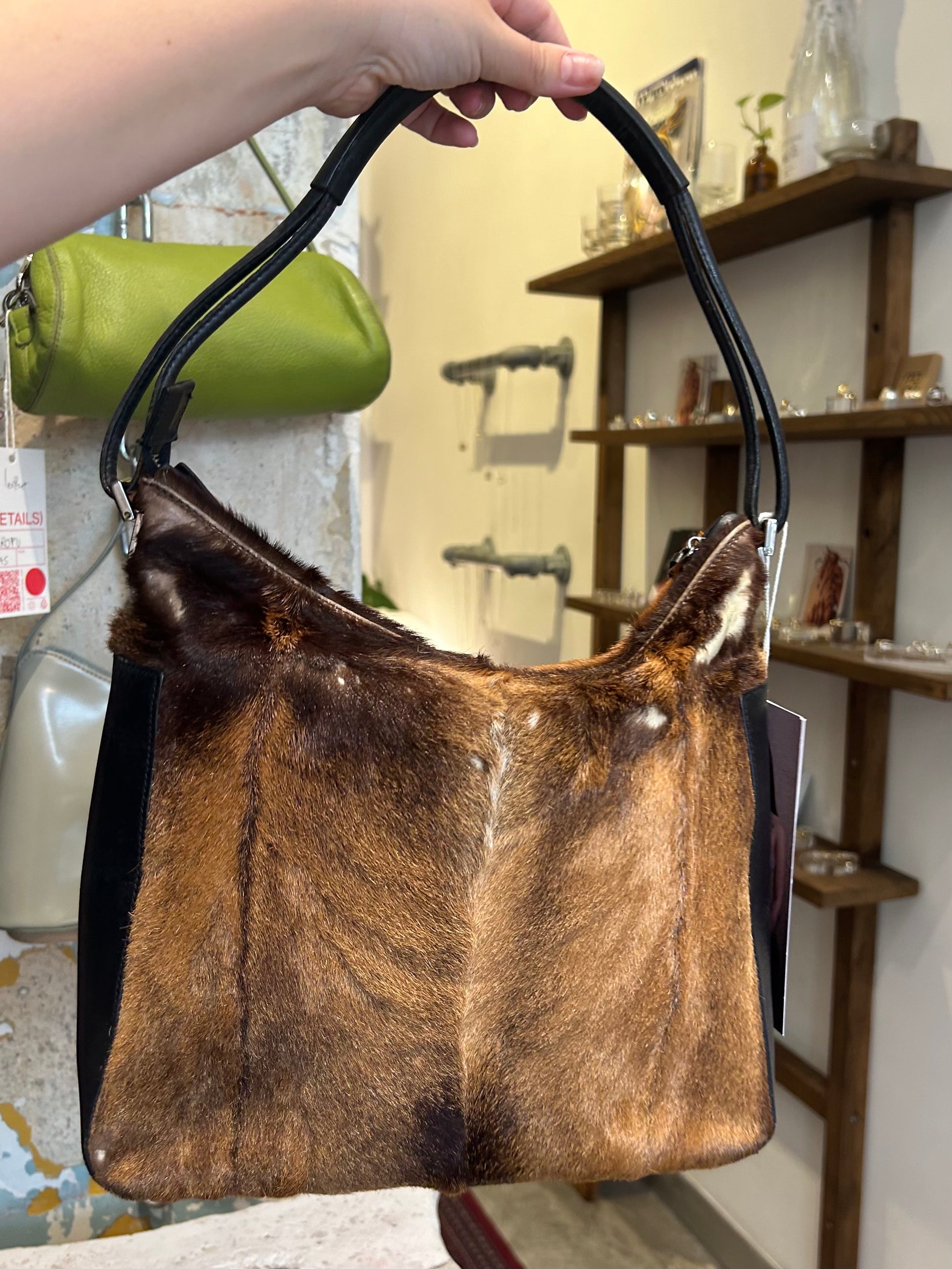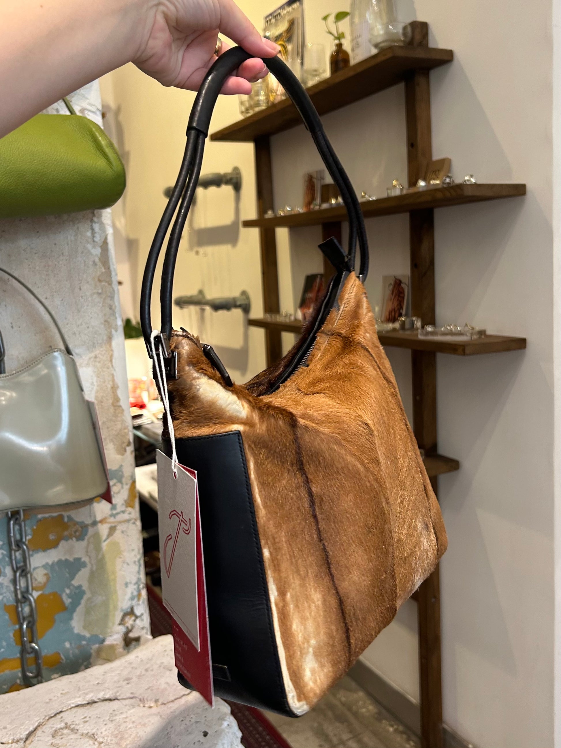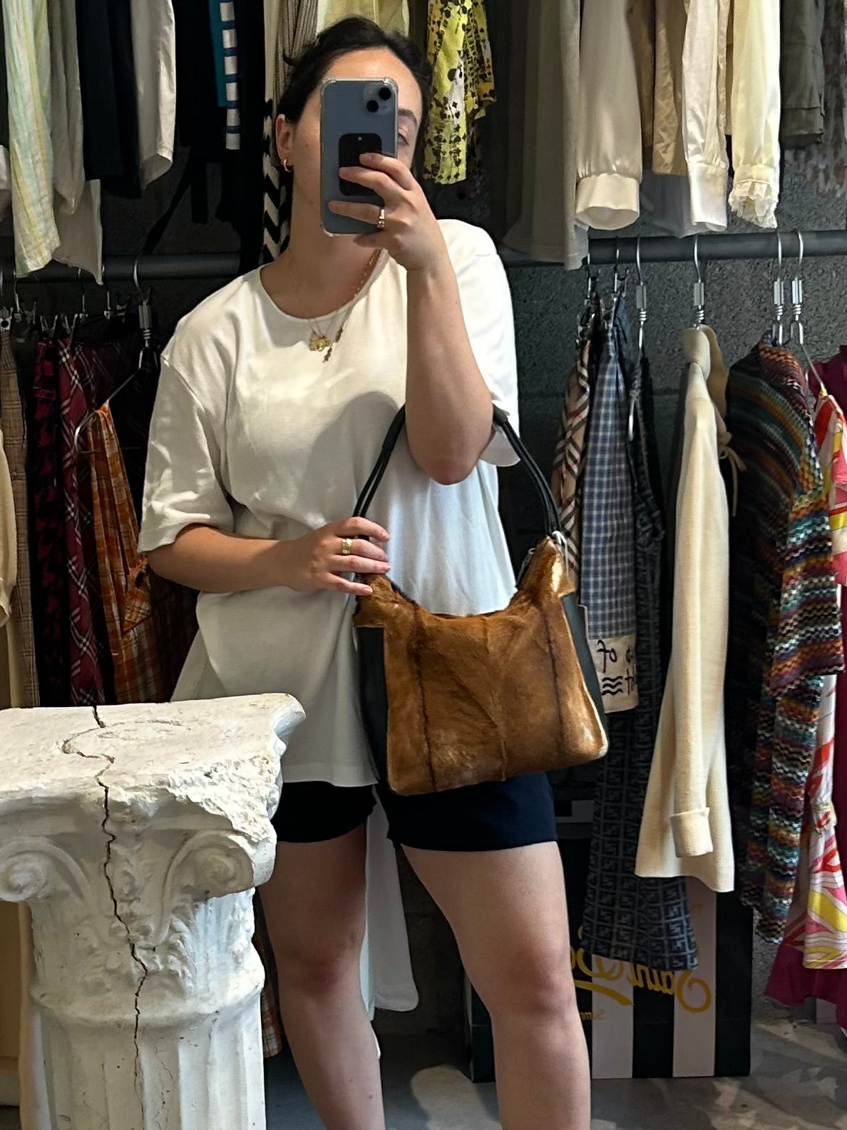 90’s GUCCI black & brown fur cowhide leather shoulder bag