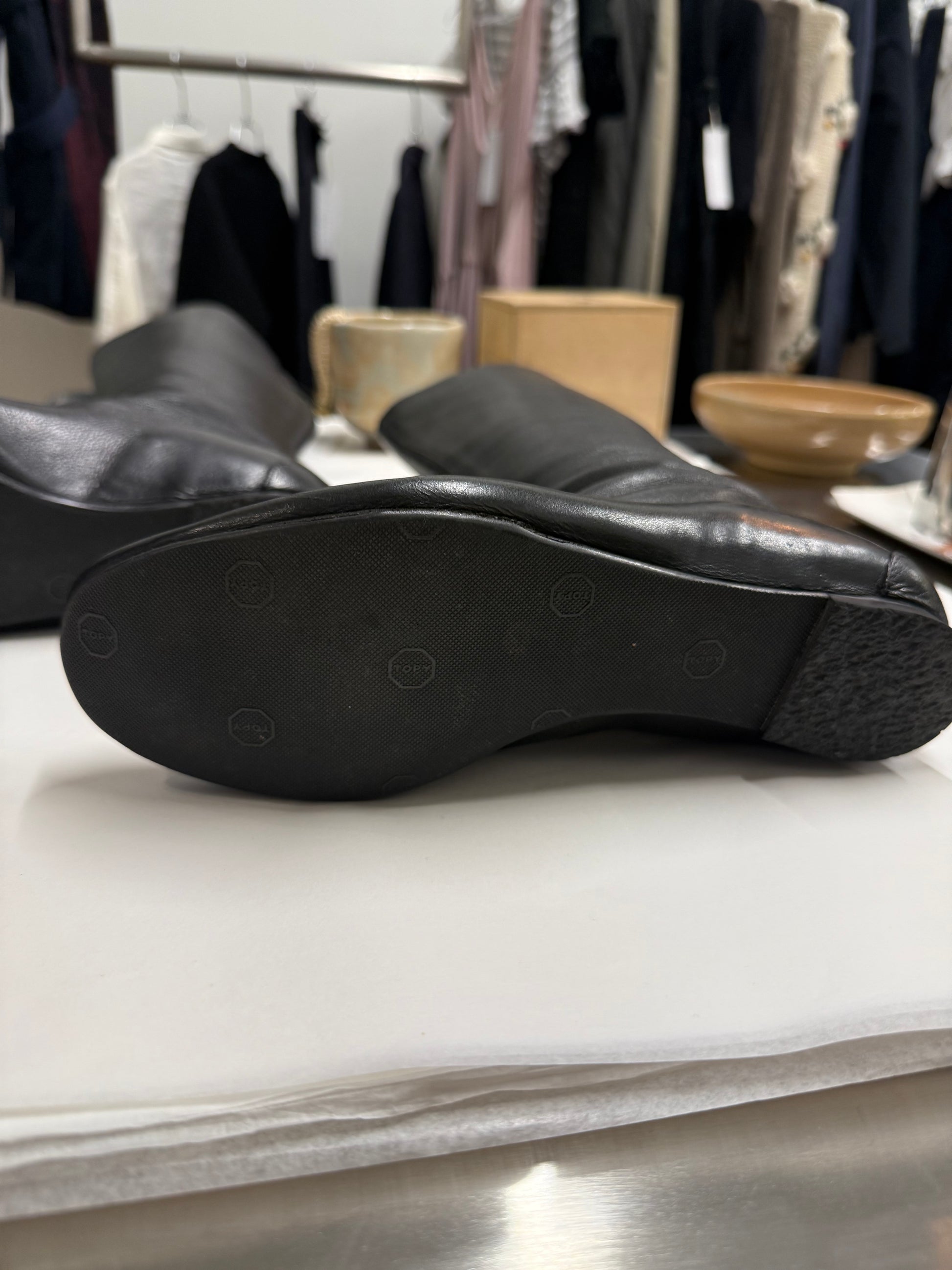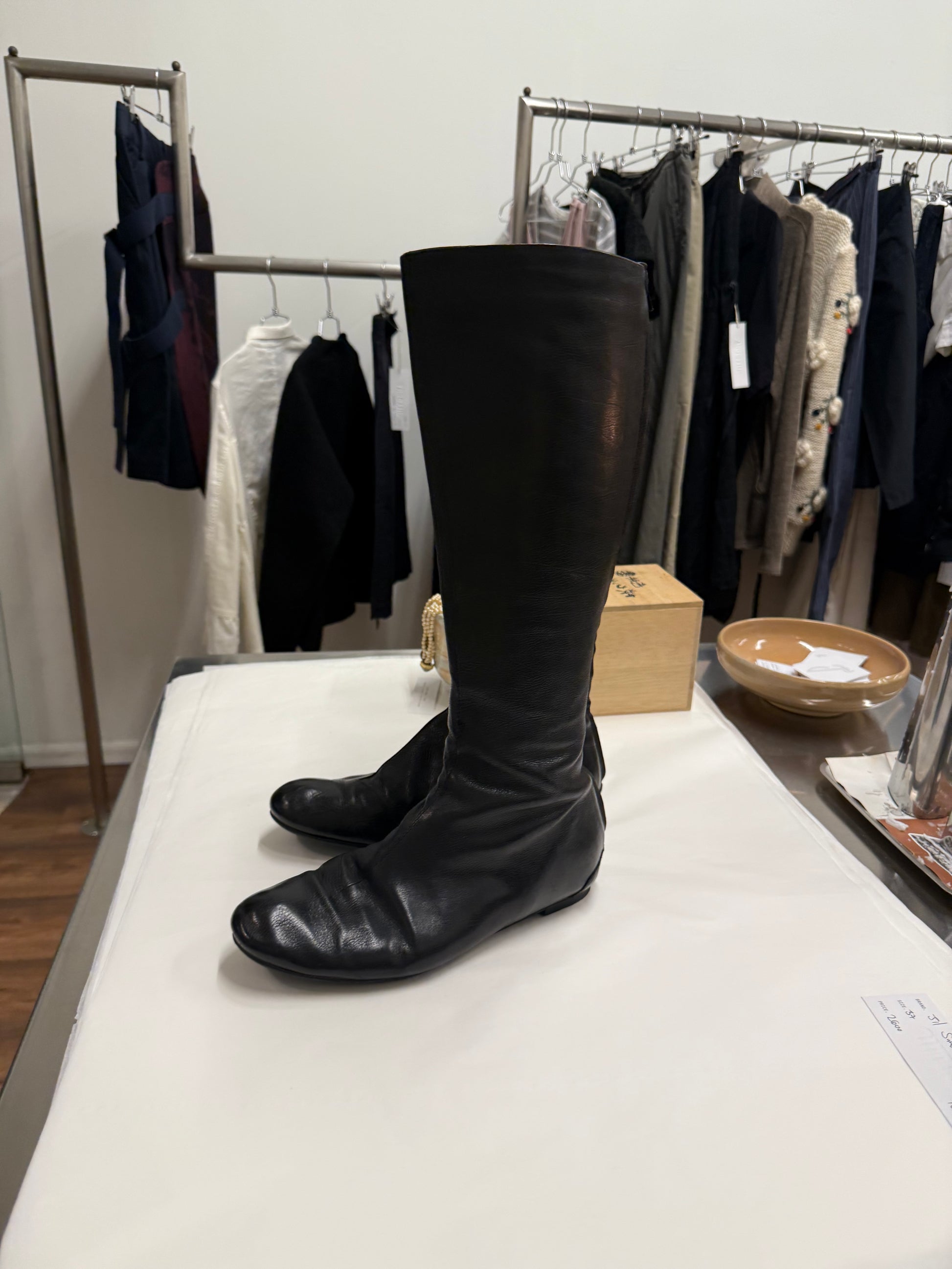 Featuring super-soft leather, tall sculptural shaft + clean round toe