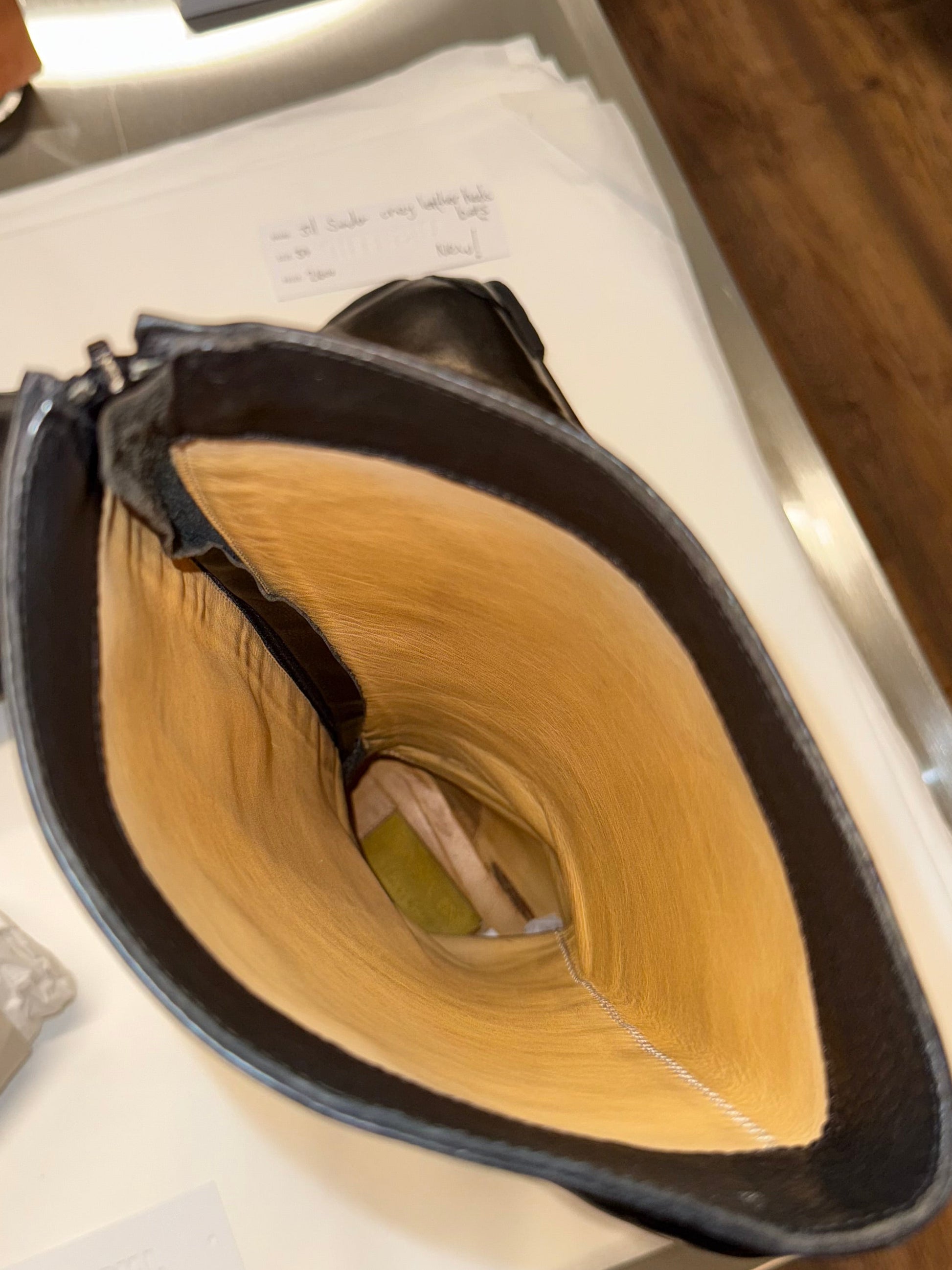 Condition: beautiful vintage wear. leather is soft + fully lined. ready to style.