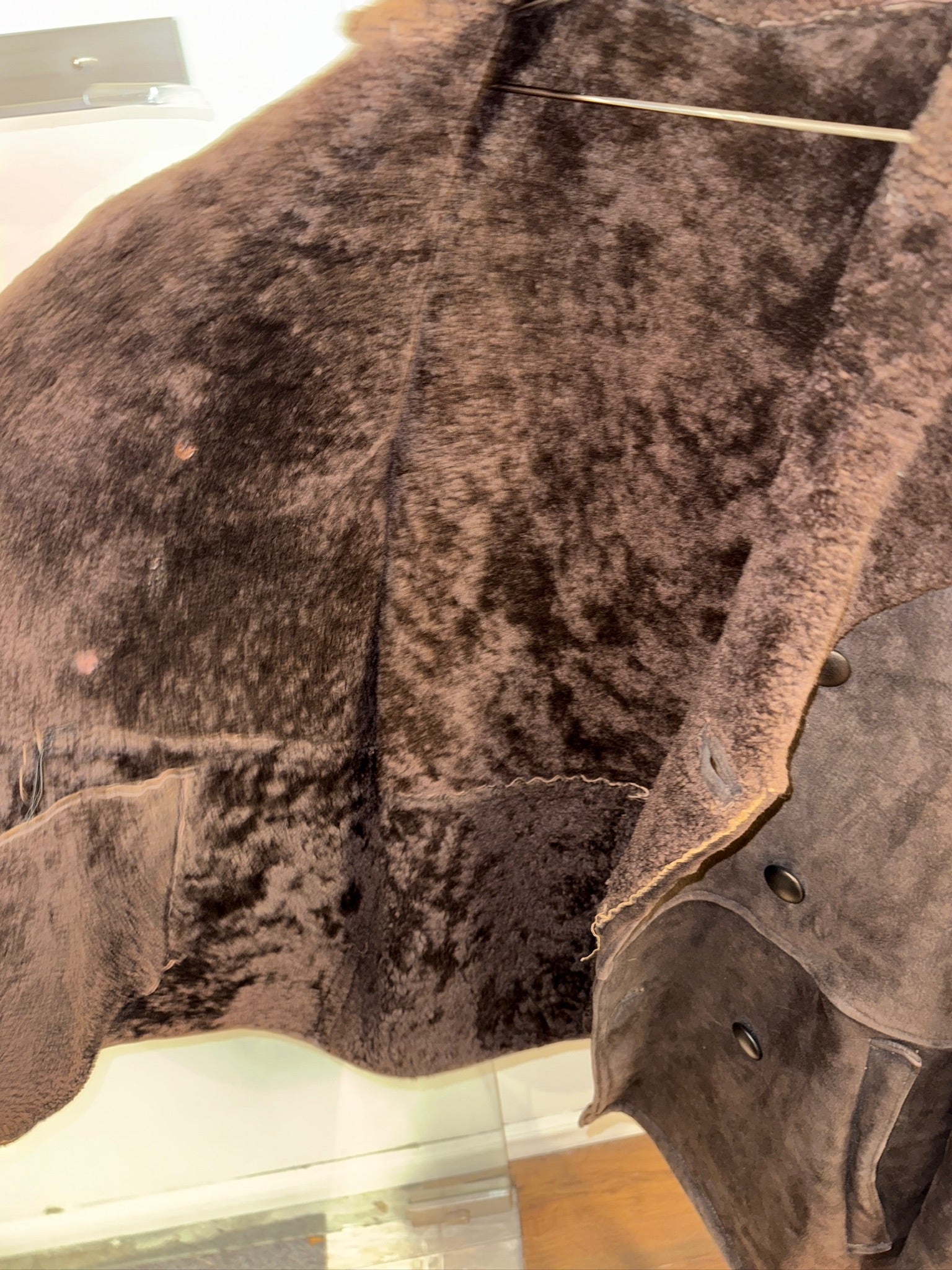 Natural wear and patina consistent with age, including subtle marks to the suede, adding to its character. A true vintage winter coat with presence, warmth, and timeless attitude.