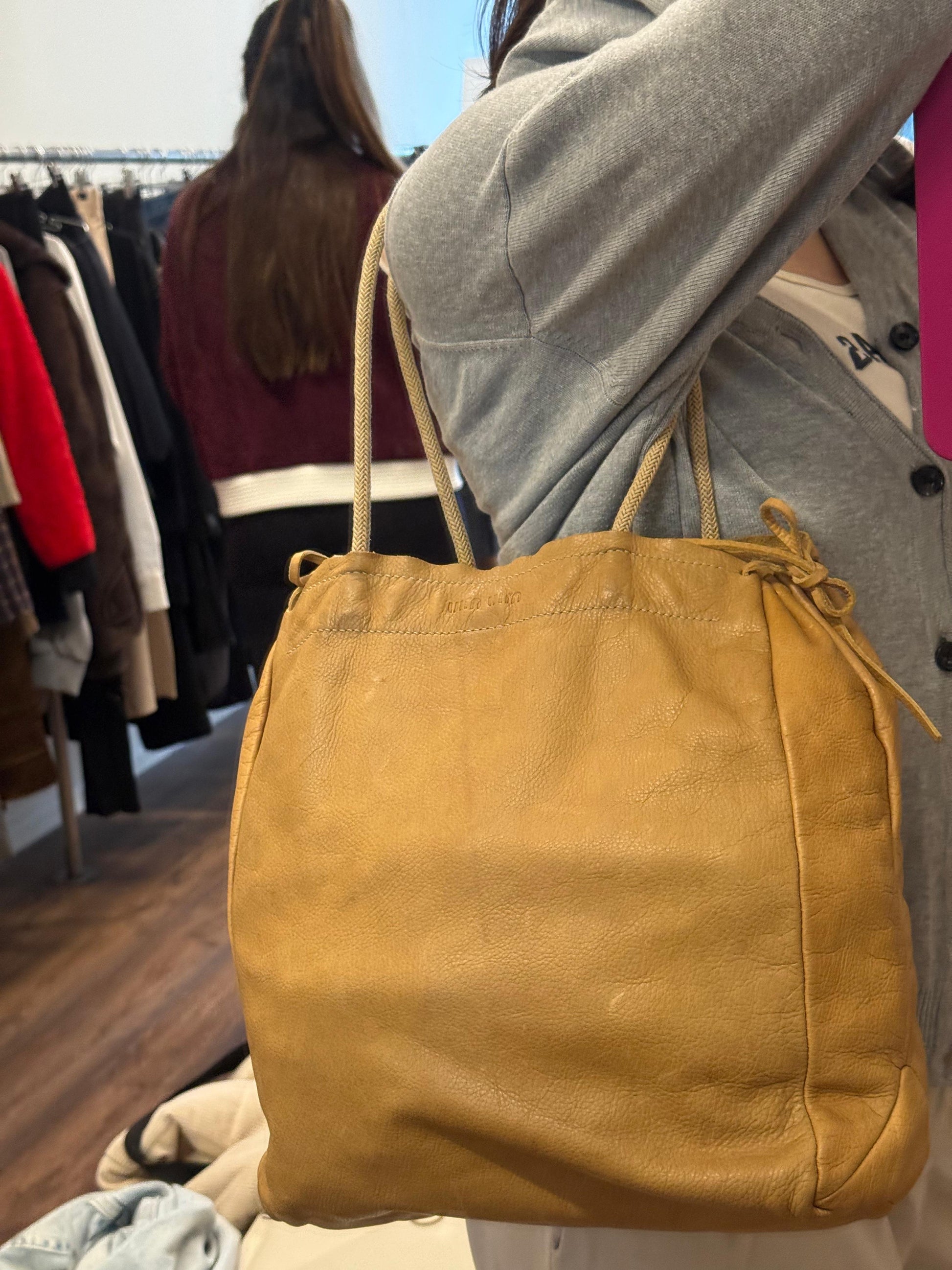 Early-era Miu Miu shoulder bag crafted from soft, naturally aged leather in a warm tan tone.