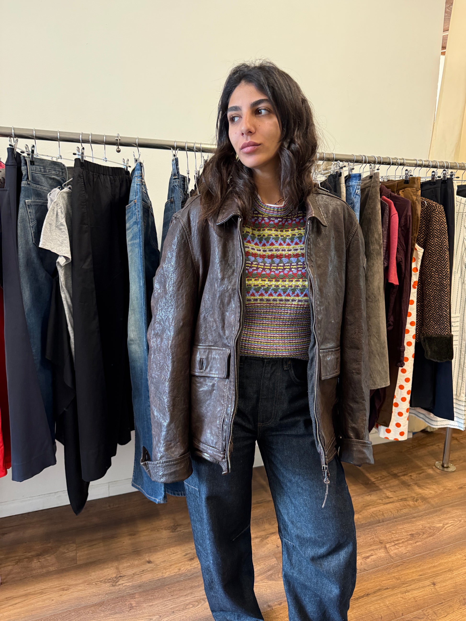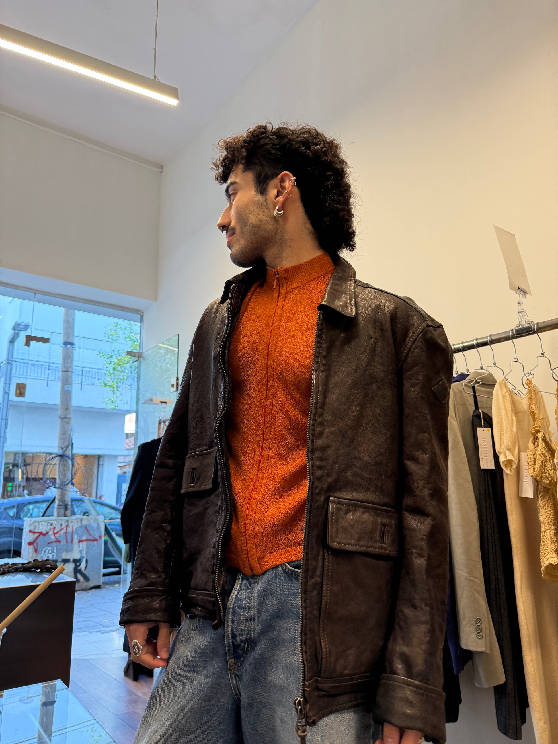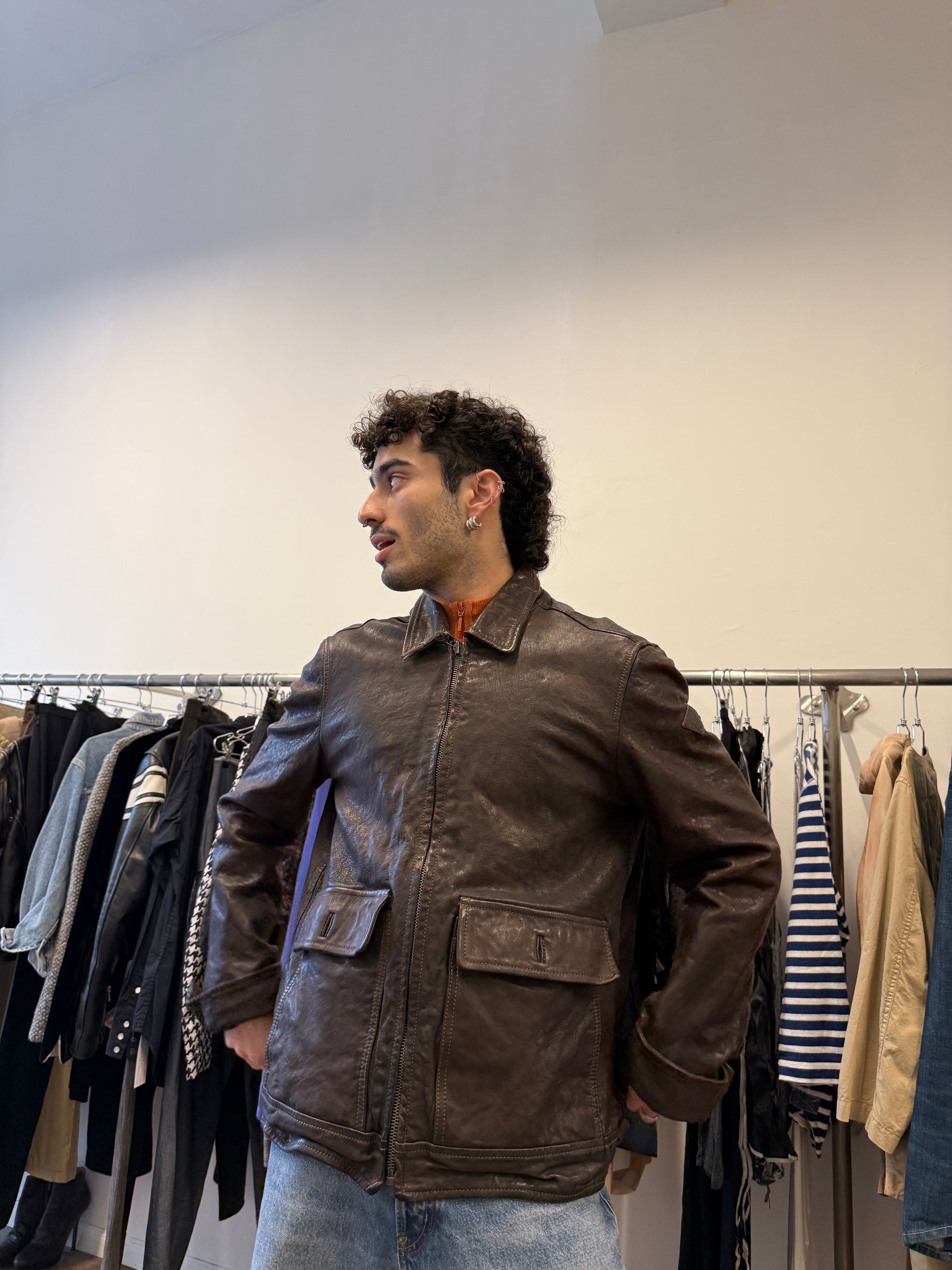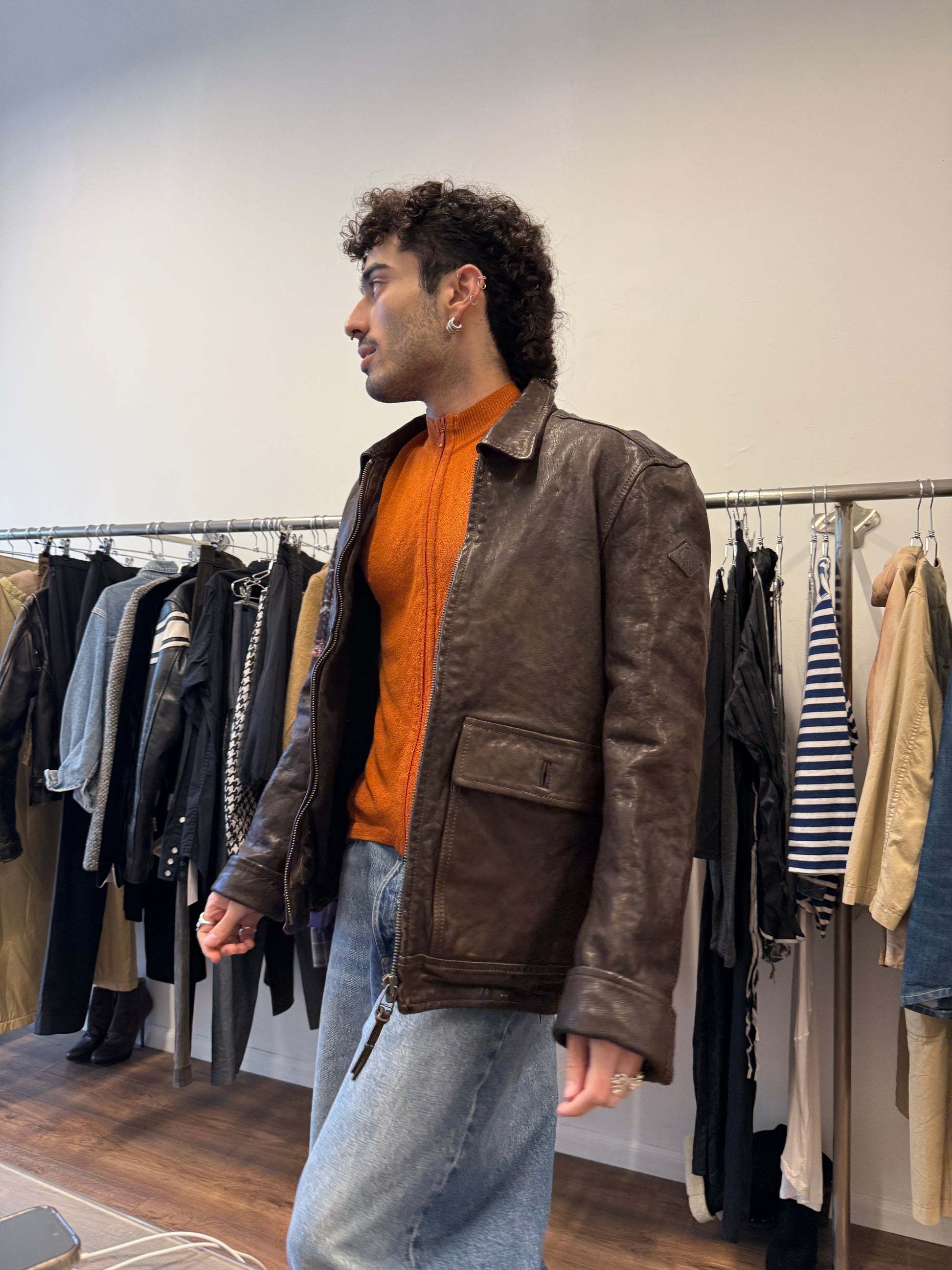 Replay vintage leather jacket in rich dark brown, crafted from thick, high-quality genuine leather with a beautiful natural patina.