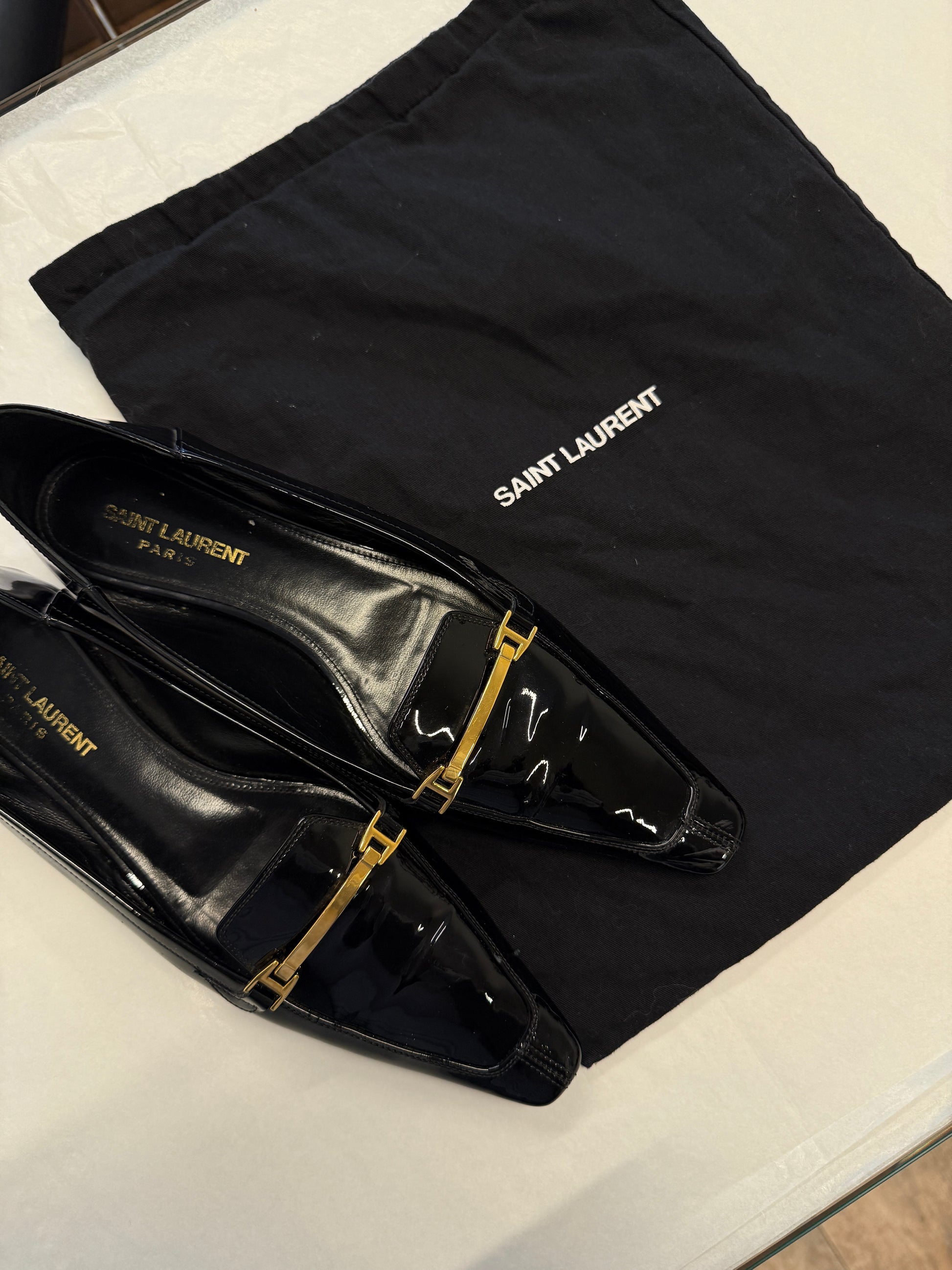 Saint Laurent Paris Patent Horsebit Loafers 37.5 EU