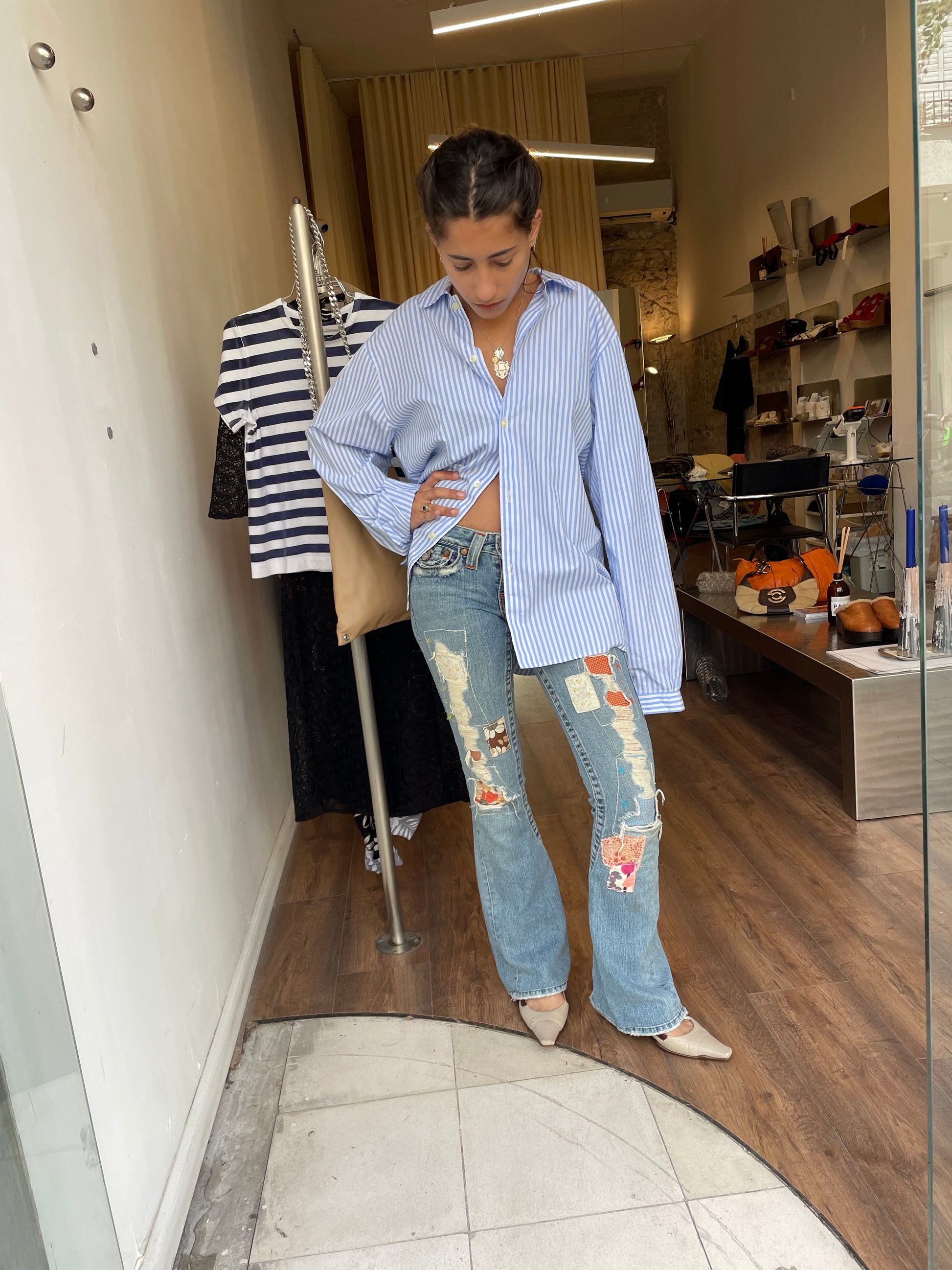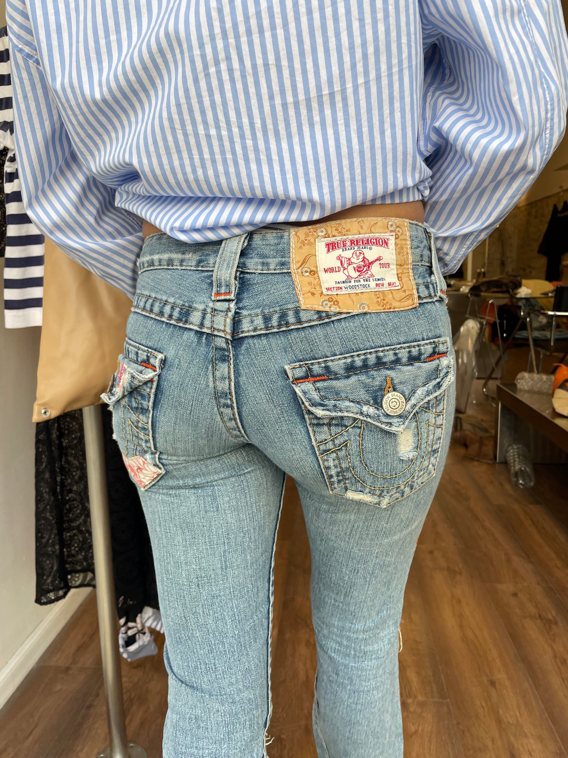 One-off energy — not your basic True Religion, more custom / reconstructed vibe