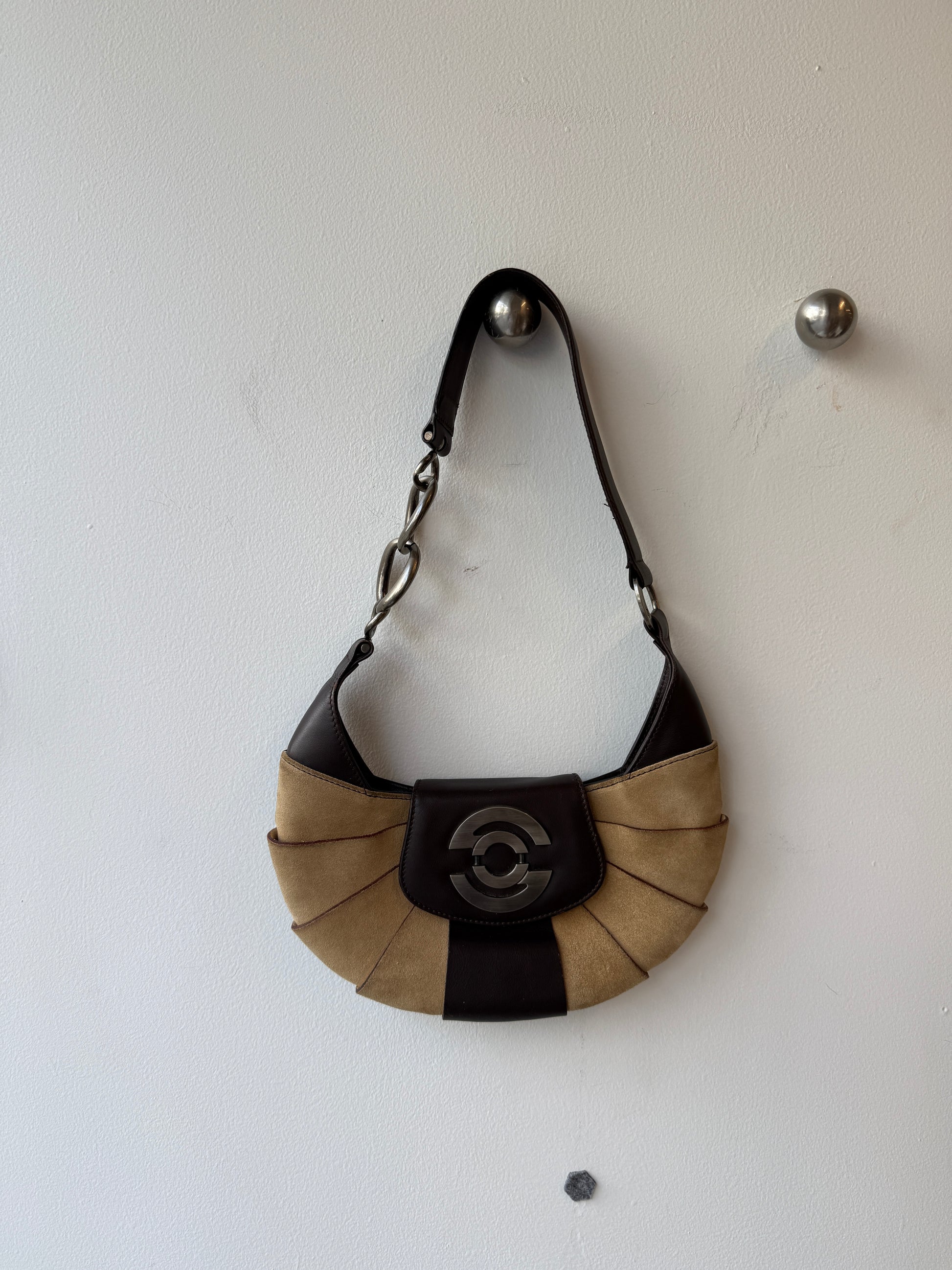 Giorgio Sculptural Suede & Leather Shoulder Bag