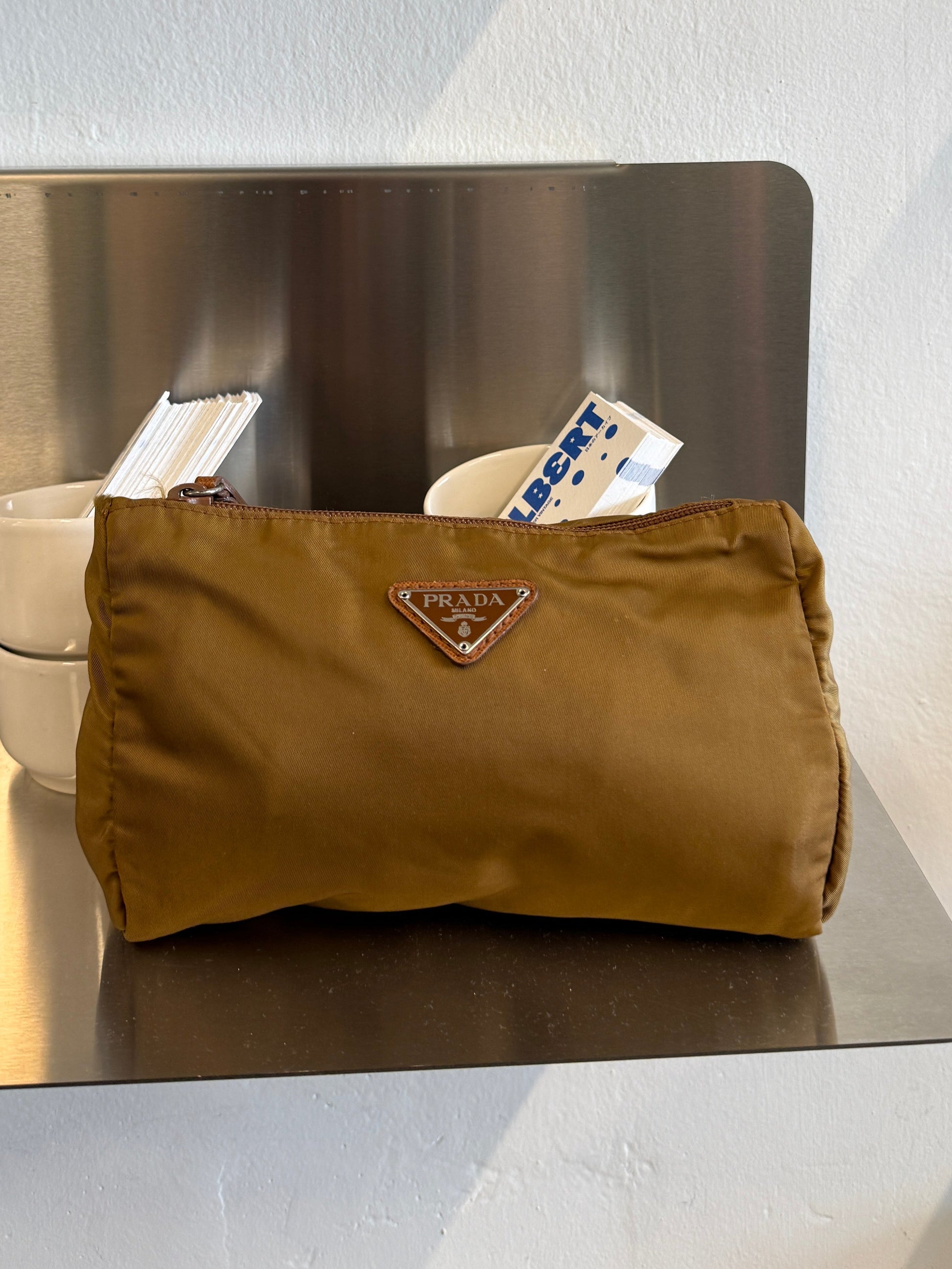 Iconic Prada tessuto nylon mini pouch from the early 2000s — the era that defined the brand’s “ugly chic” minimalism.