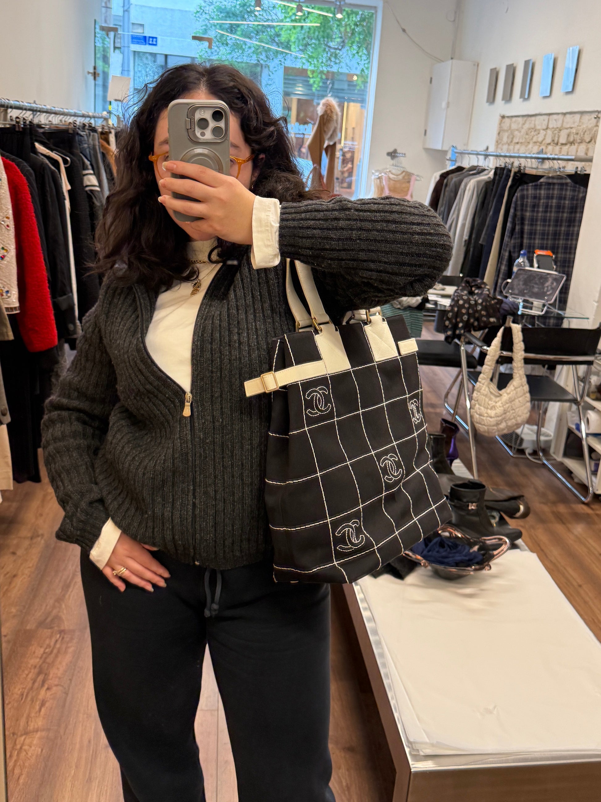 A utilitarian yet iconic Chanel piece from the era when canvas entered the house’s luxury vocabulary.