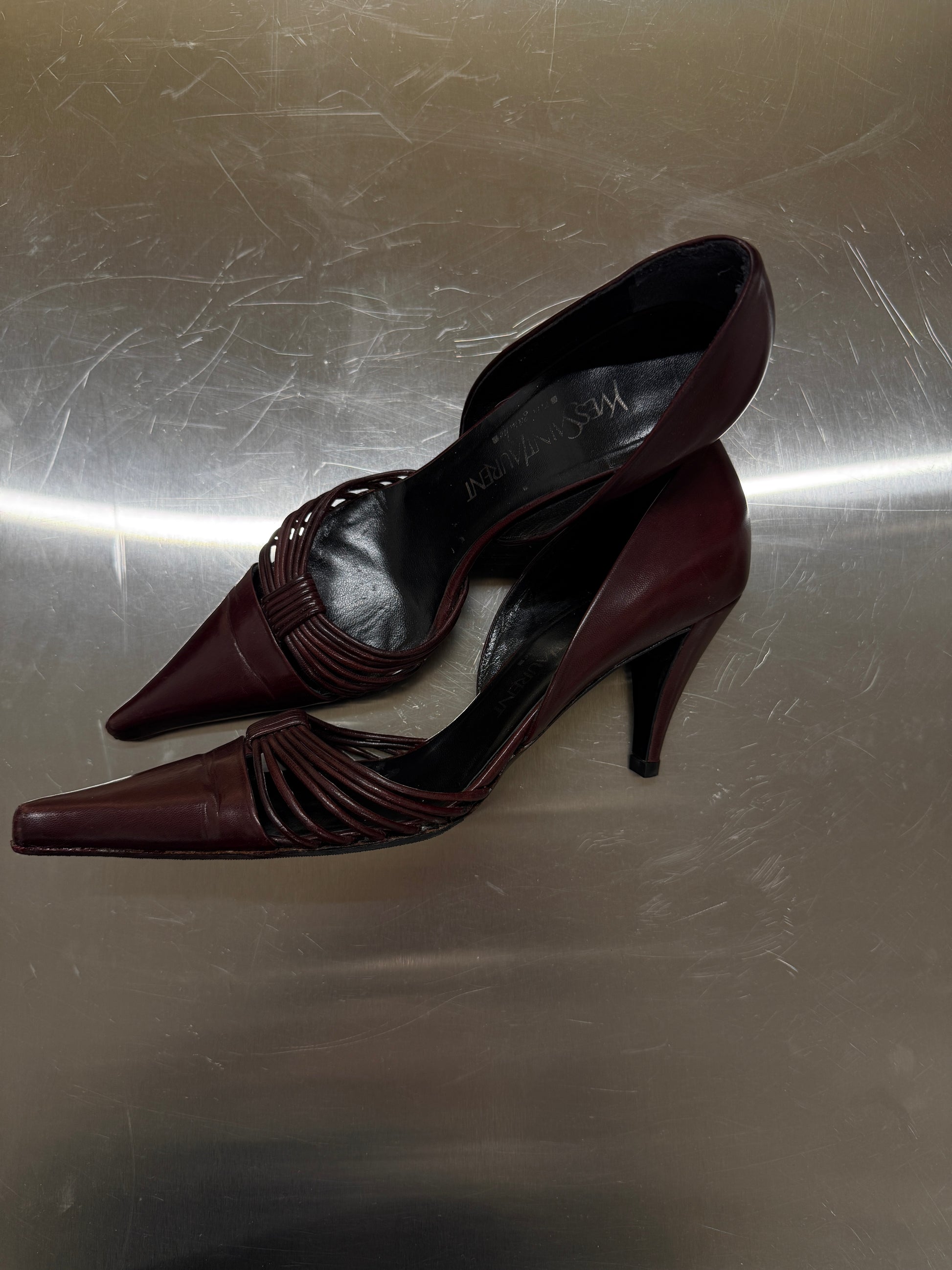 Yves Saint Laurent Oxblood Strappy Pointed Heels 38.5 EU
