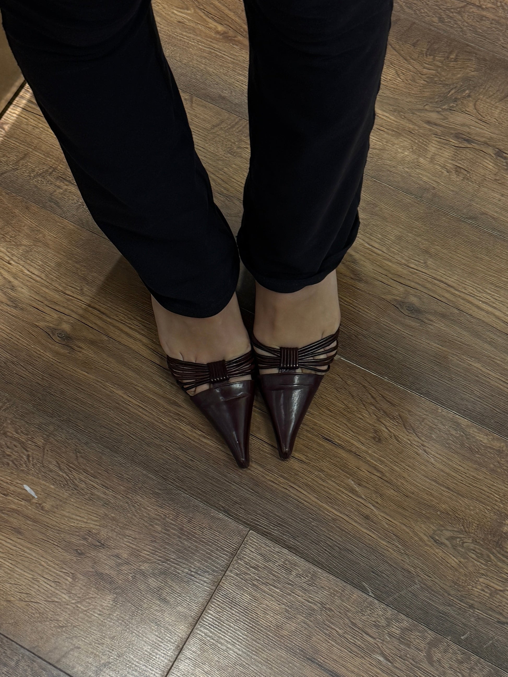 Early 2000s sharp silhouette. Long toe, narrow attitude.