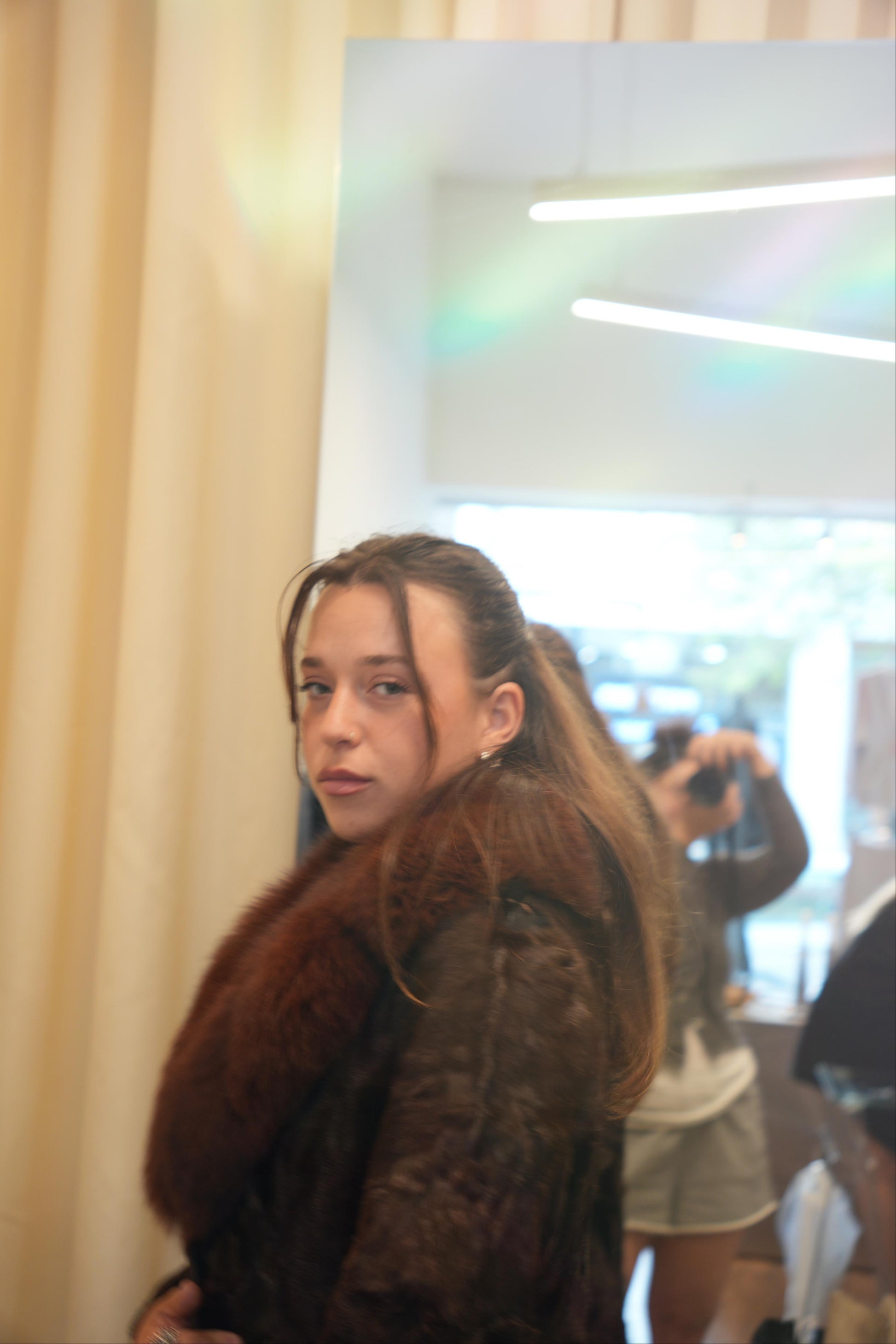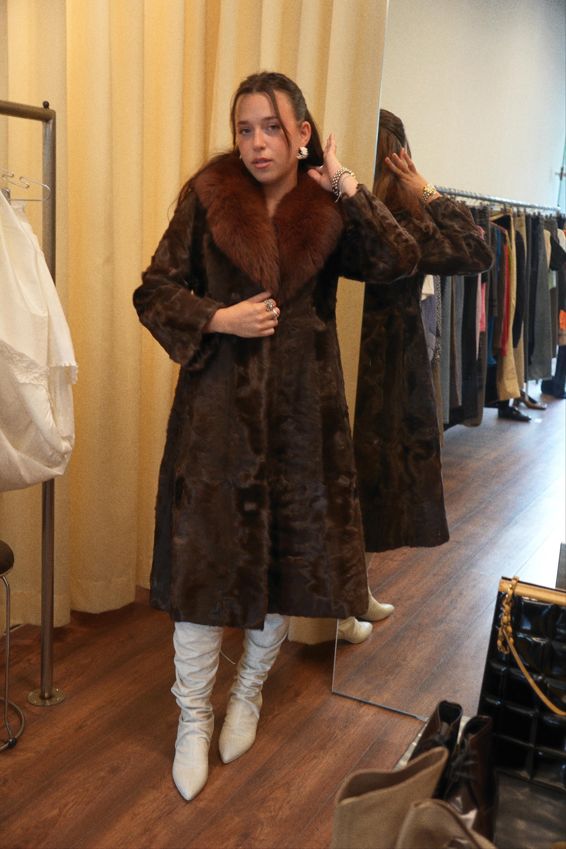 Vintage real Fur Coat — Brown Body with Red Fox Collar