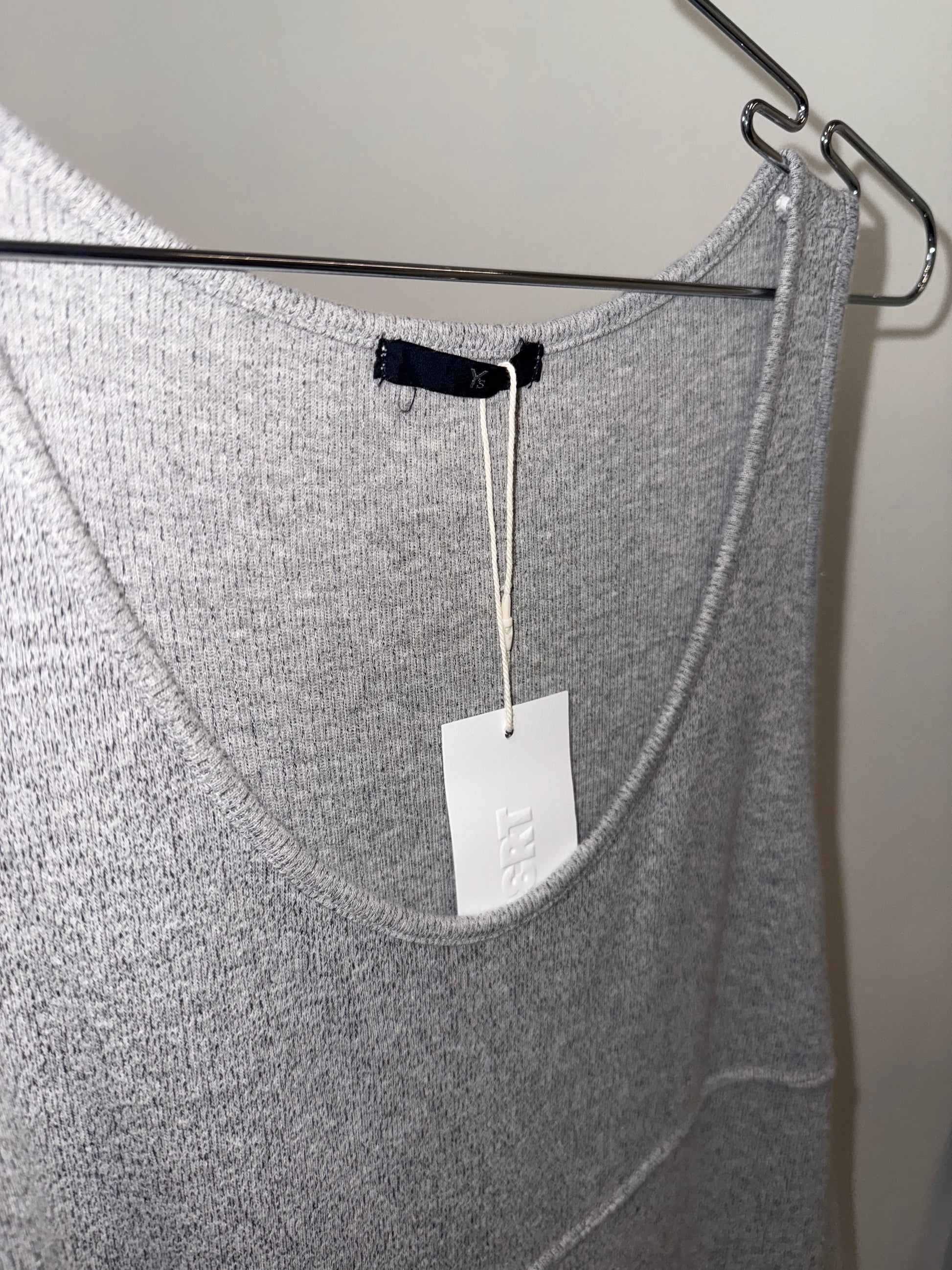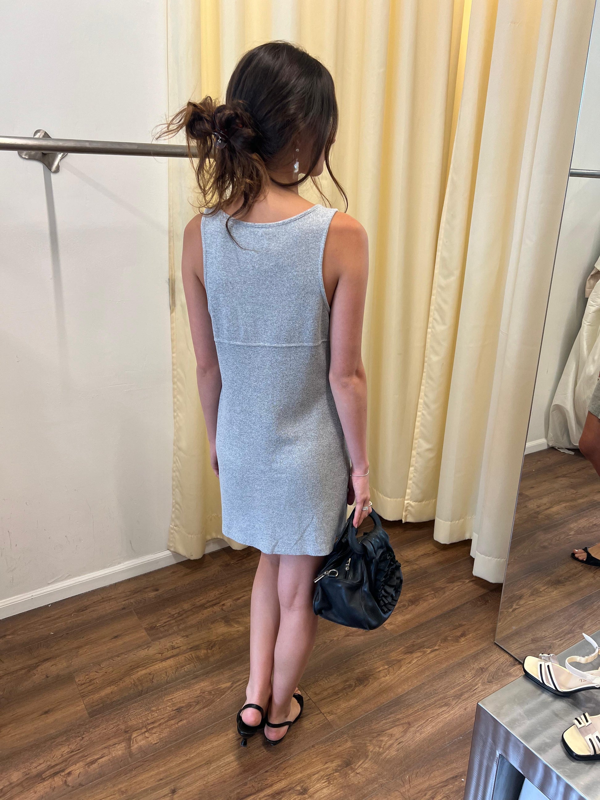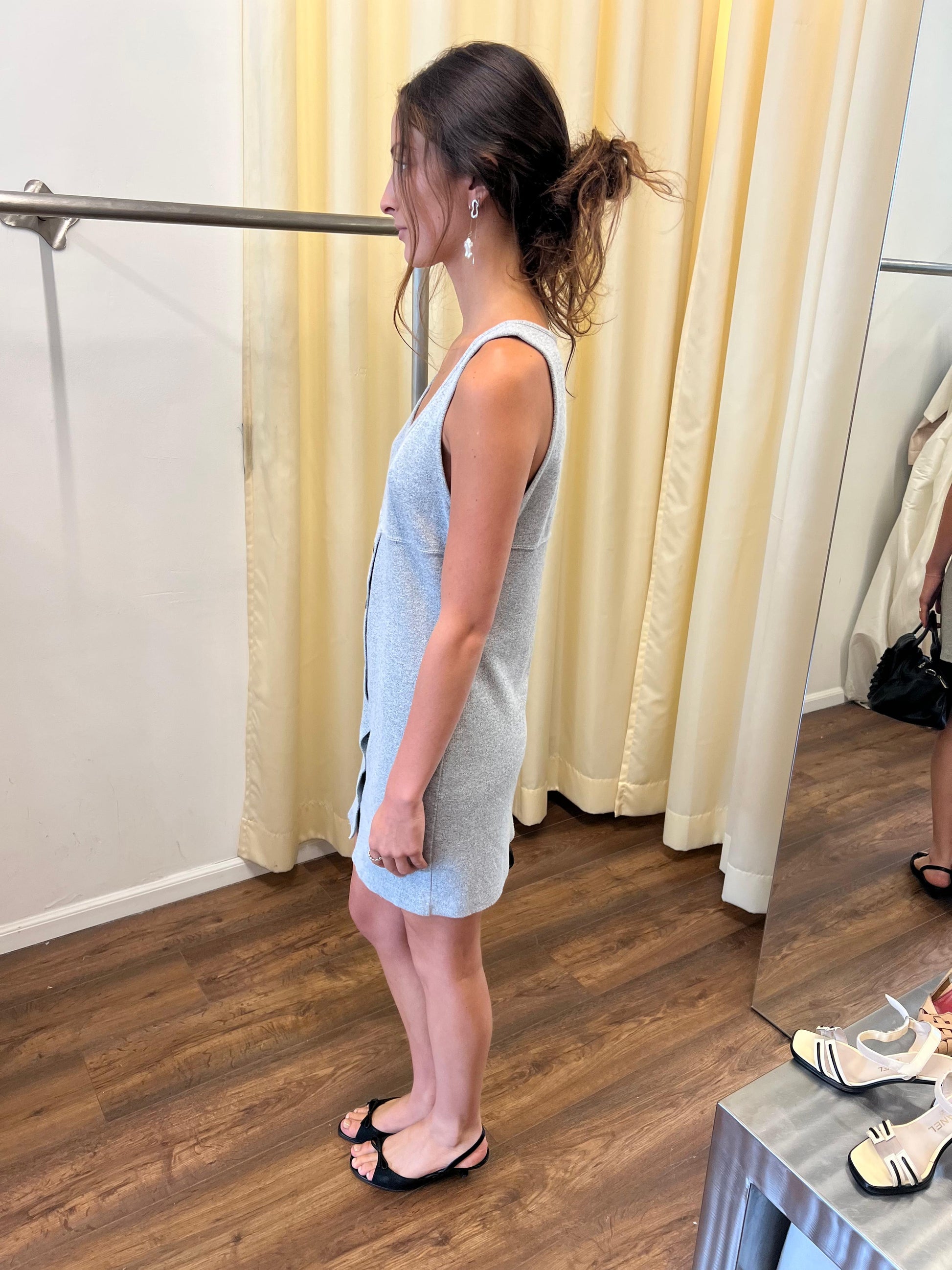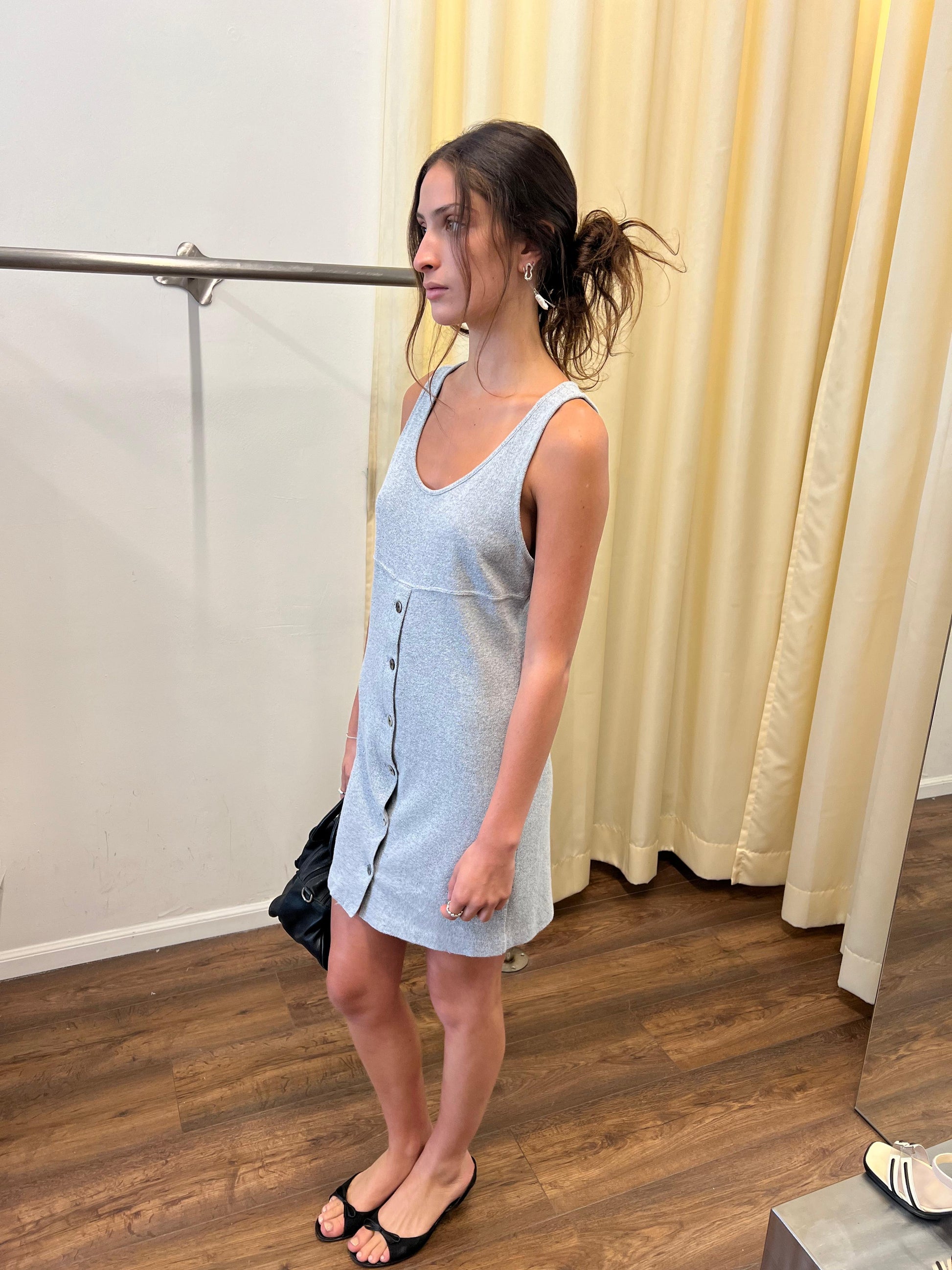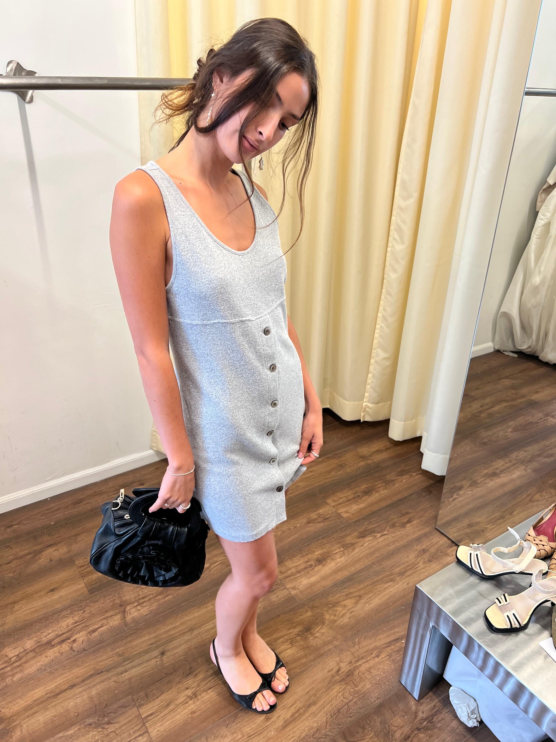 grey melange sleeveless cami dress featuring simple buttons and a line above the waist