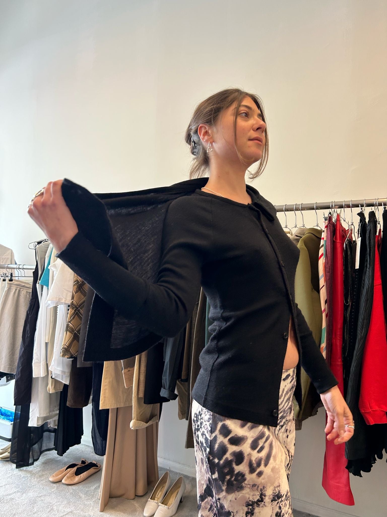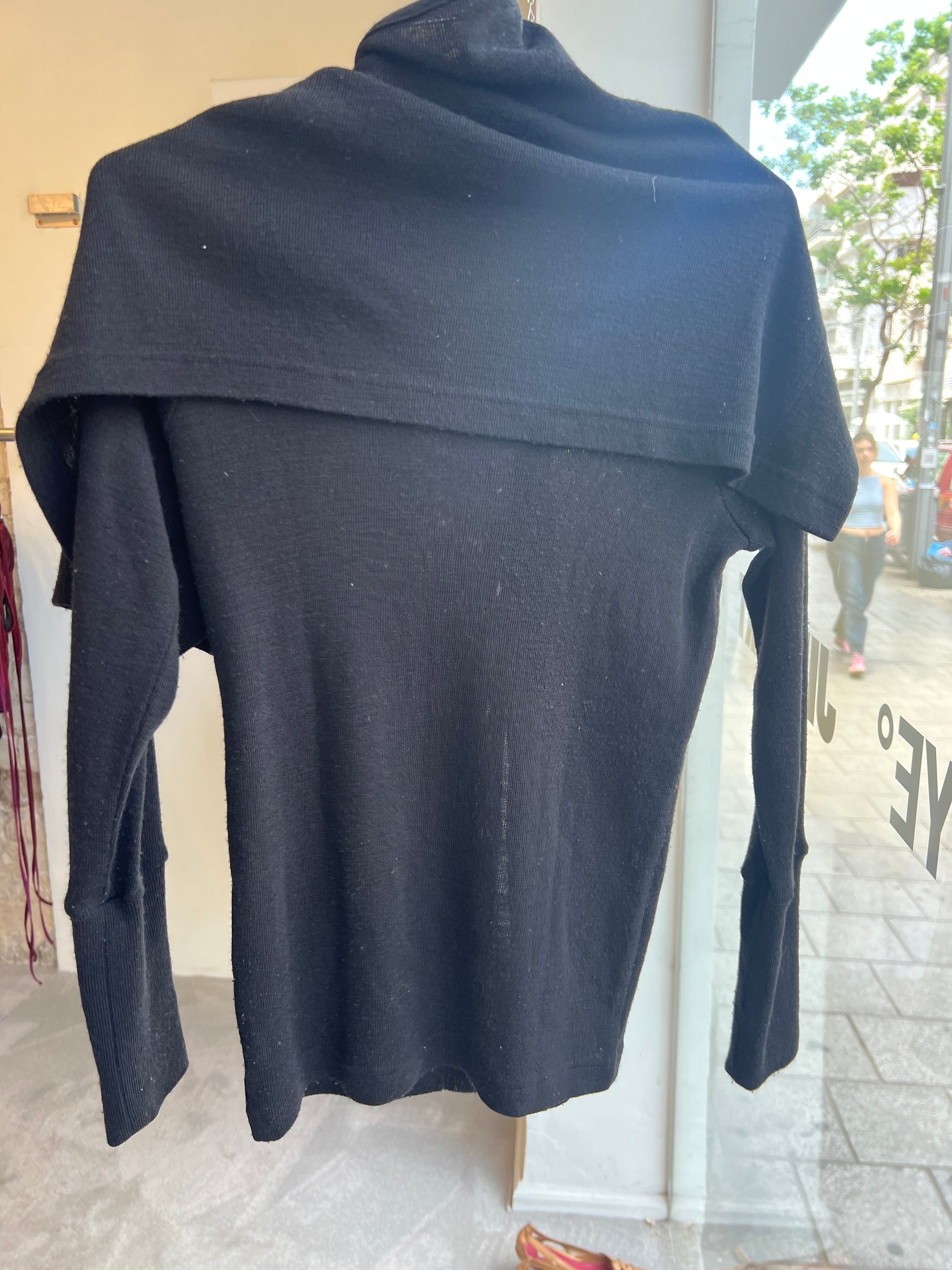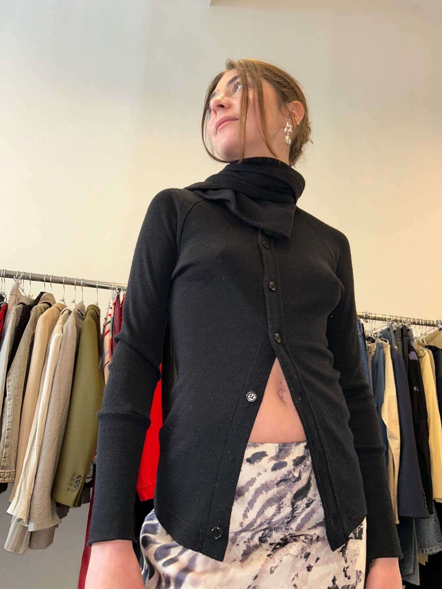 black cardigan with attached scard