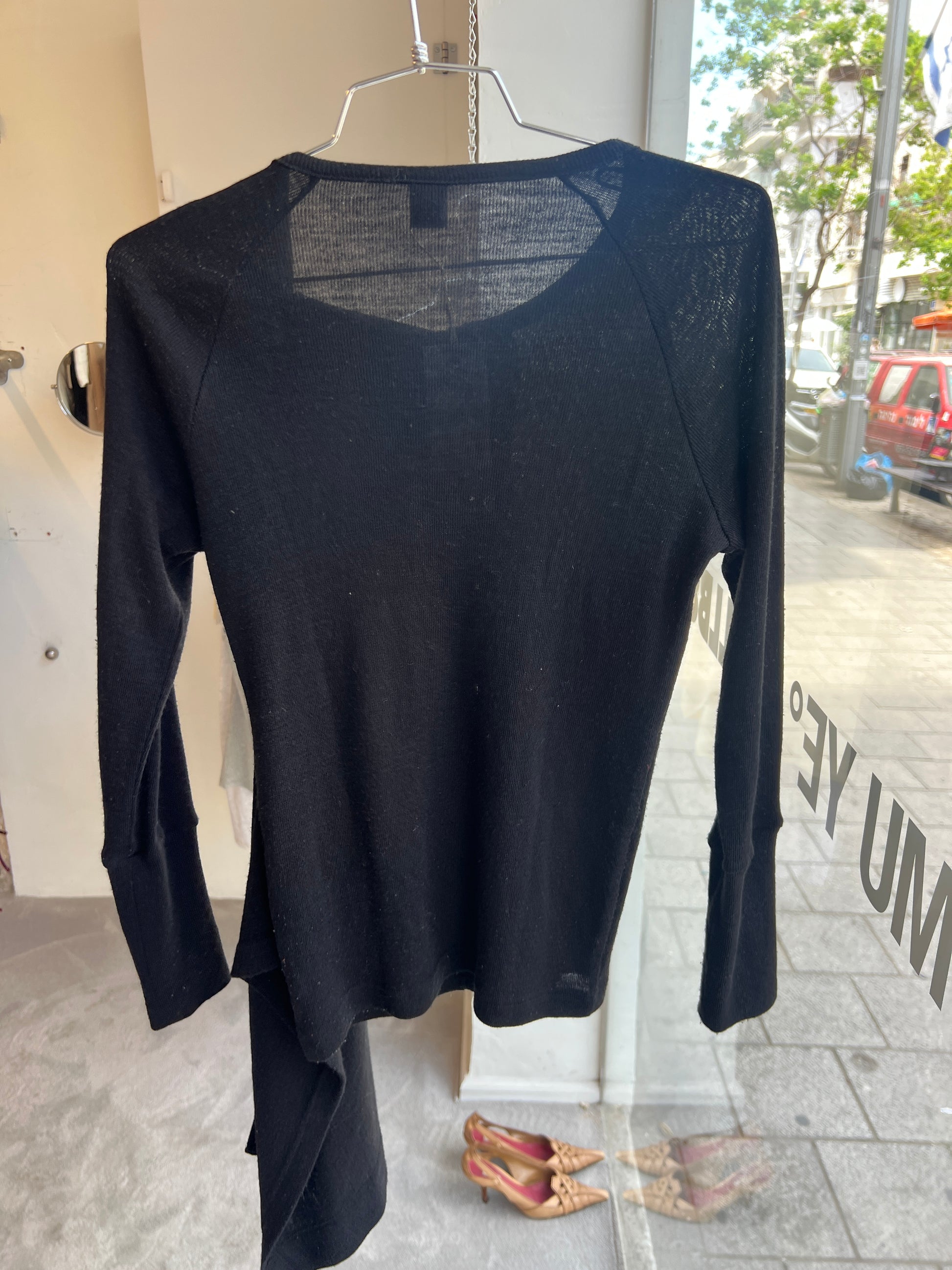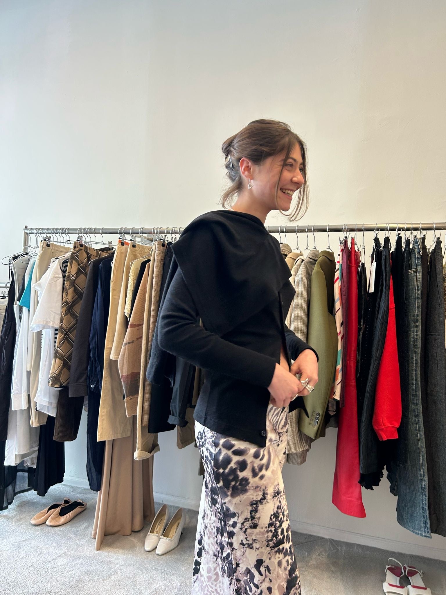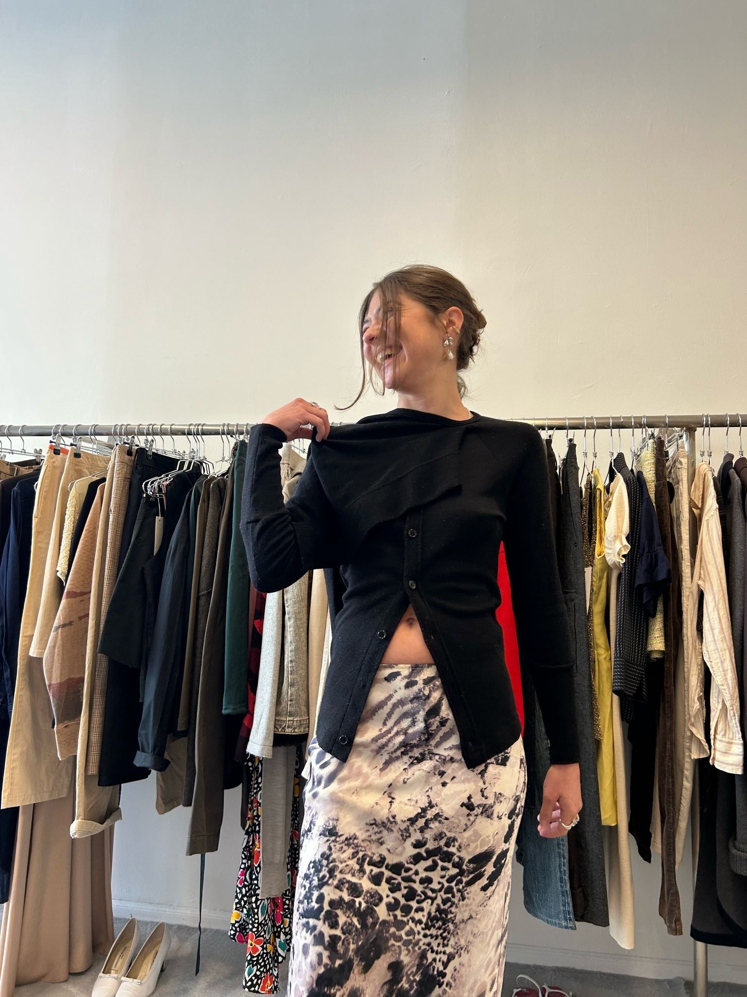 black cardigan with attached scard